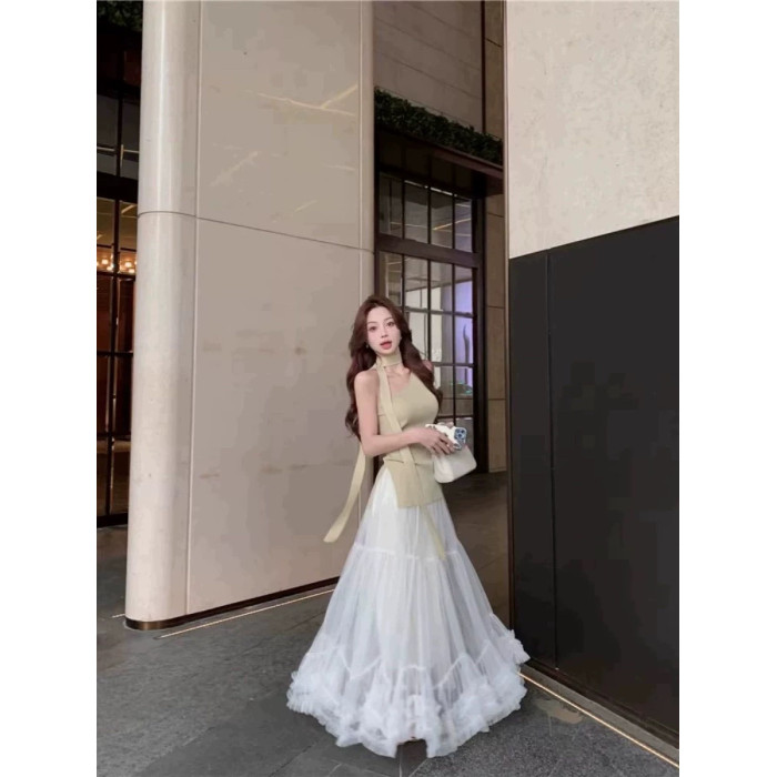 超大擺設計感時尚網紗半身裙甜美木耳花邊a字大擺蓬蓬裙8023