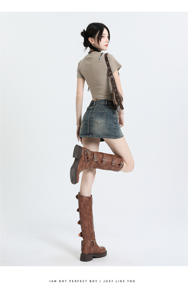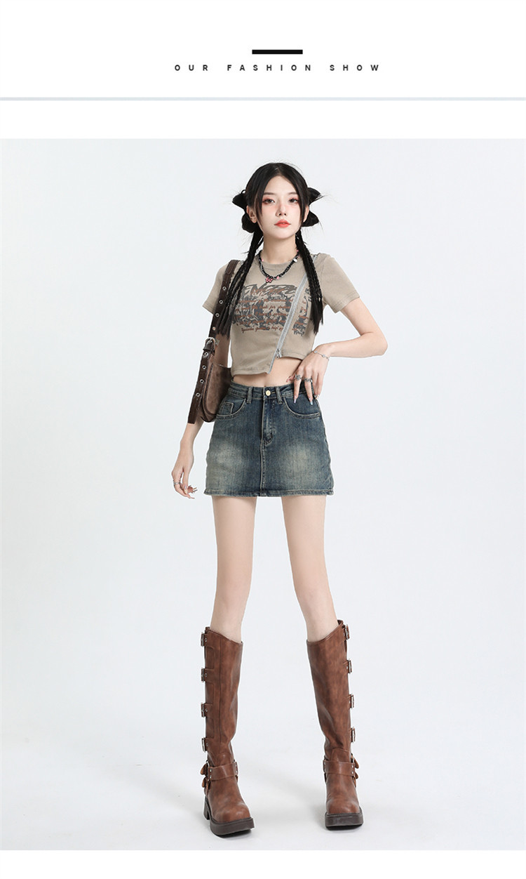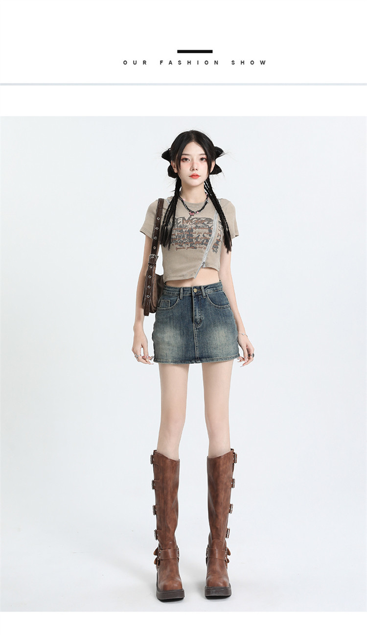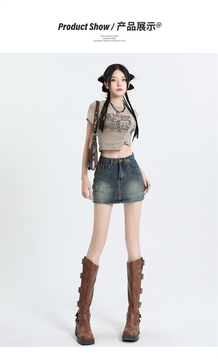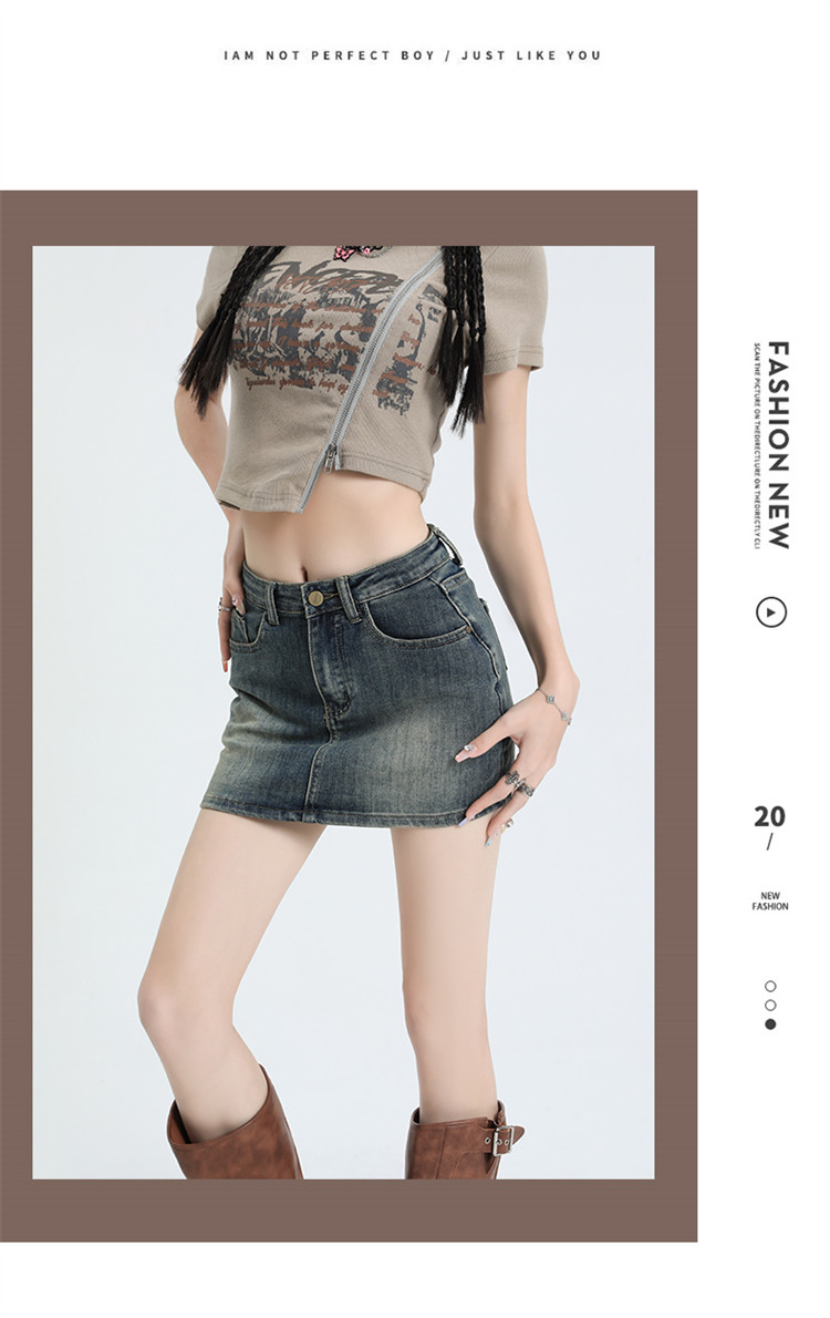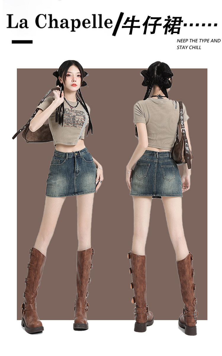 拉夏貝爾復古牛仔半身裙女2025新款夏季高腰a字顯瘦辣妹包臀短裙