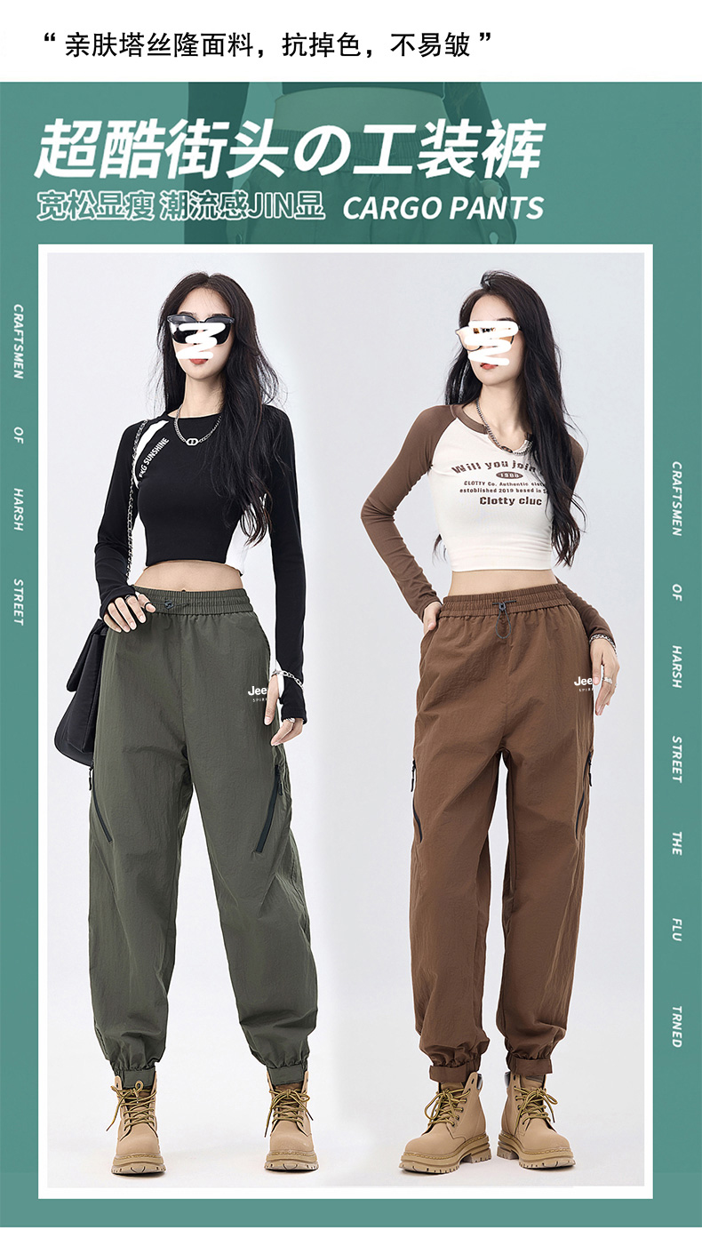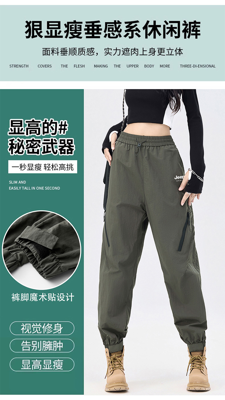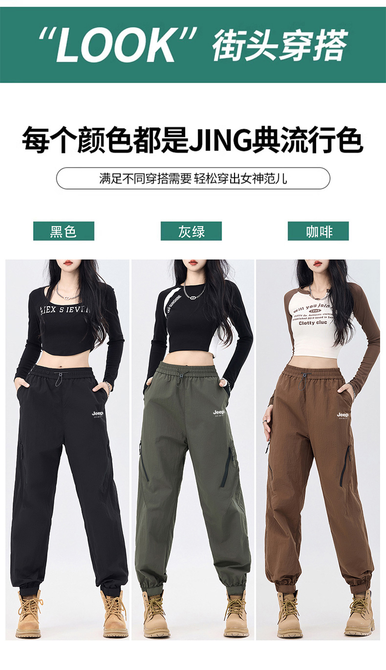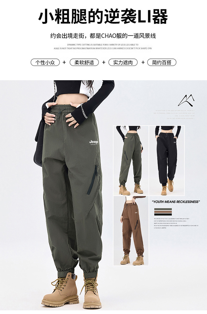 JEEP沖鋒褲女款2025新款春秋季加絨戶外徒步束腳速乾工裝登山褲子