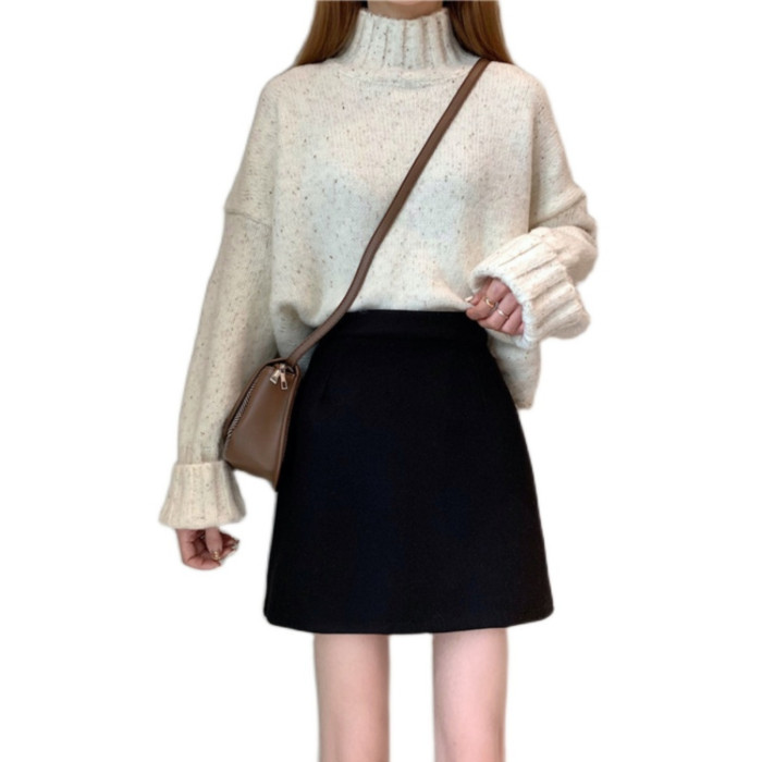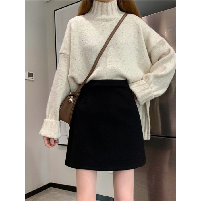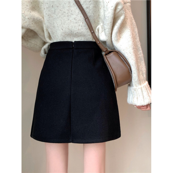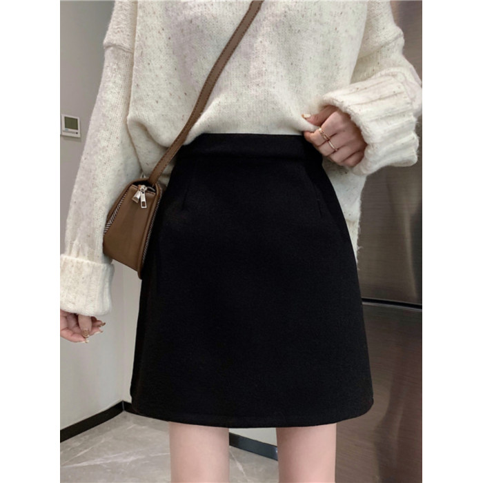 胖MM大碼高腰顯瘦毛呢半身裙女秋冬韓版百搭A字裙小個子黑色短裙