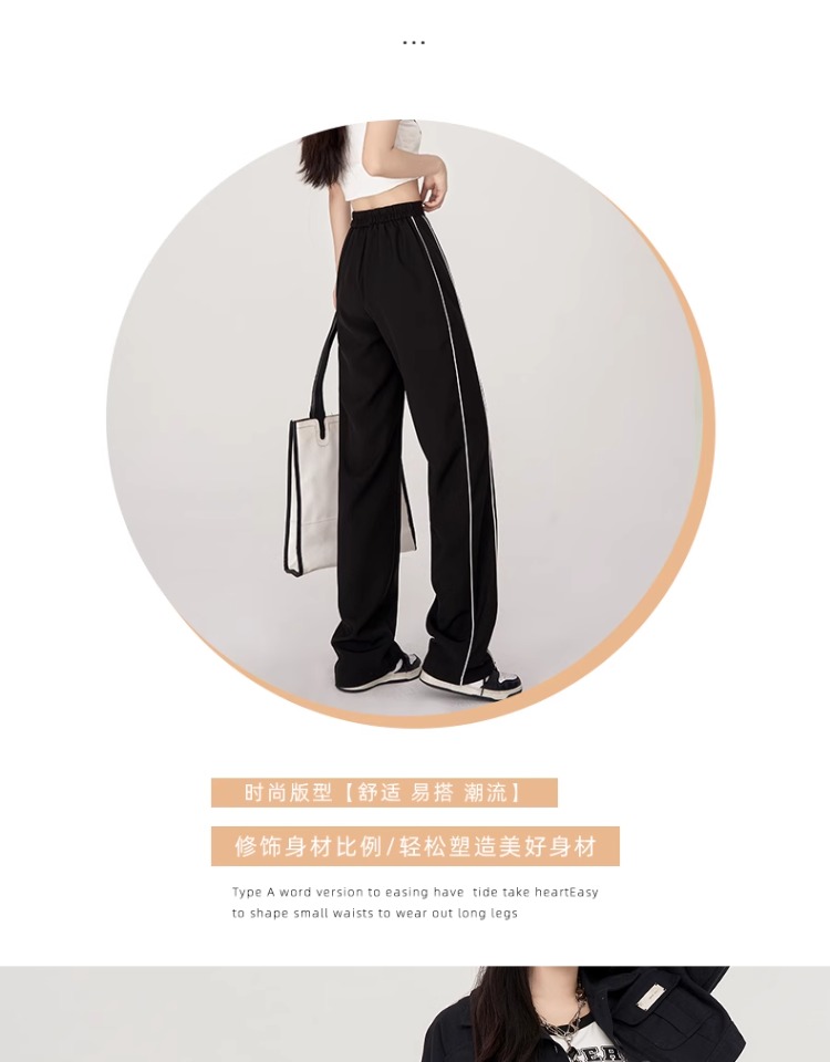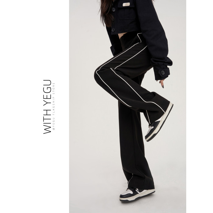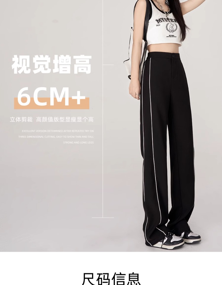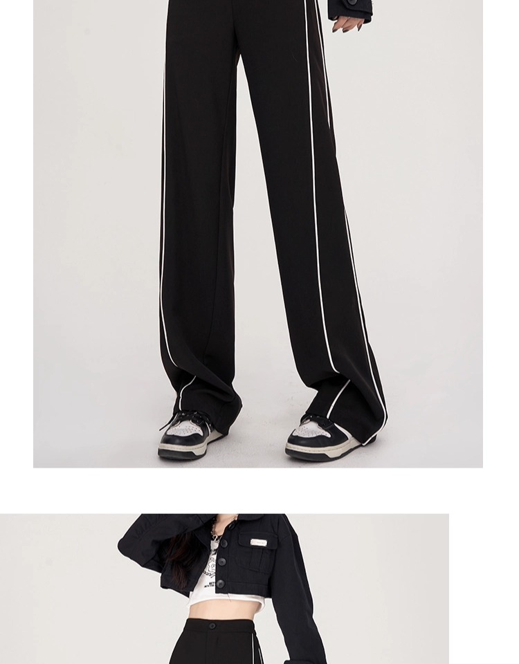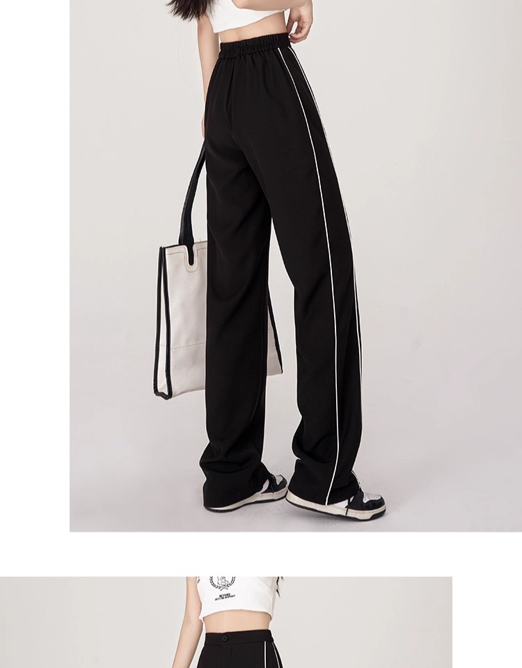 美式運動褲子女春夏秋季2025垂感高腰休閒褲拼接西裝細條紋濶腿褲
