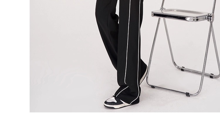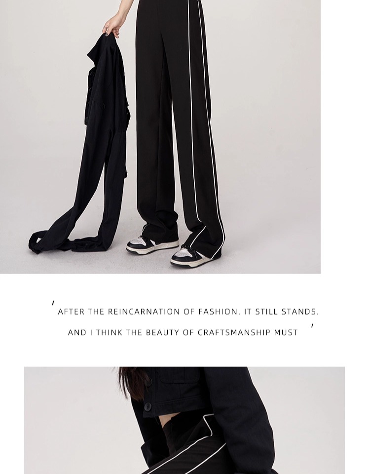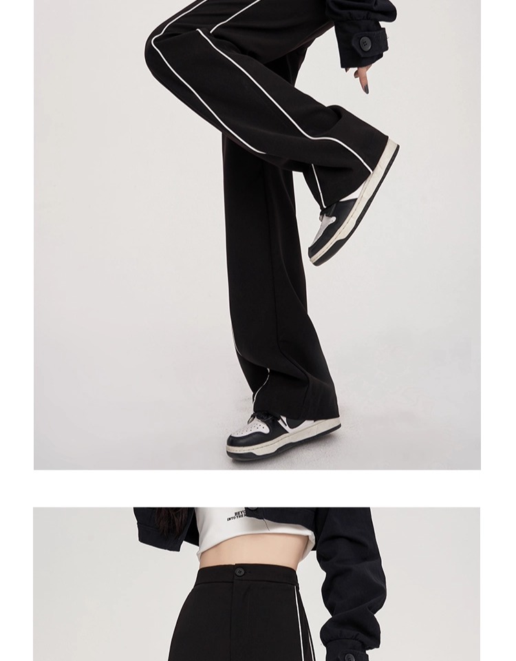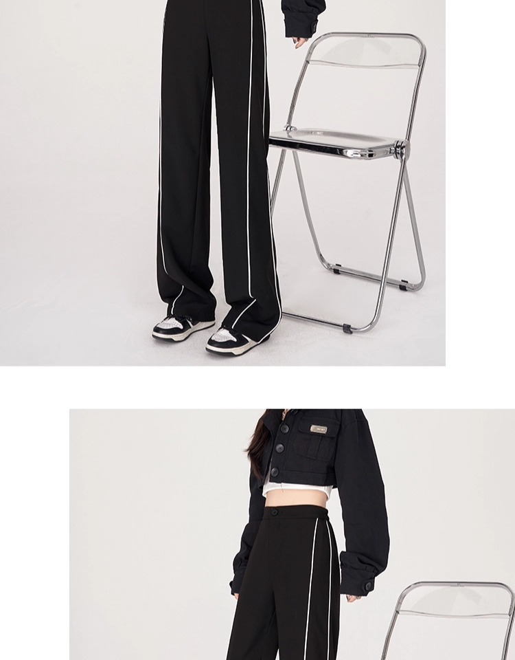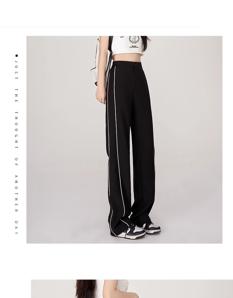 美式運動褲子女春夏秋季2025垂感高腰休閒褲拼接西裝細條紋濶腿褲