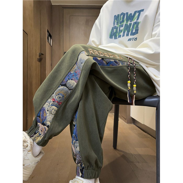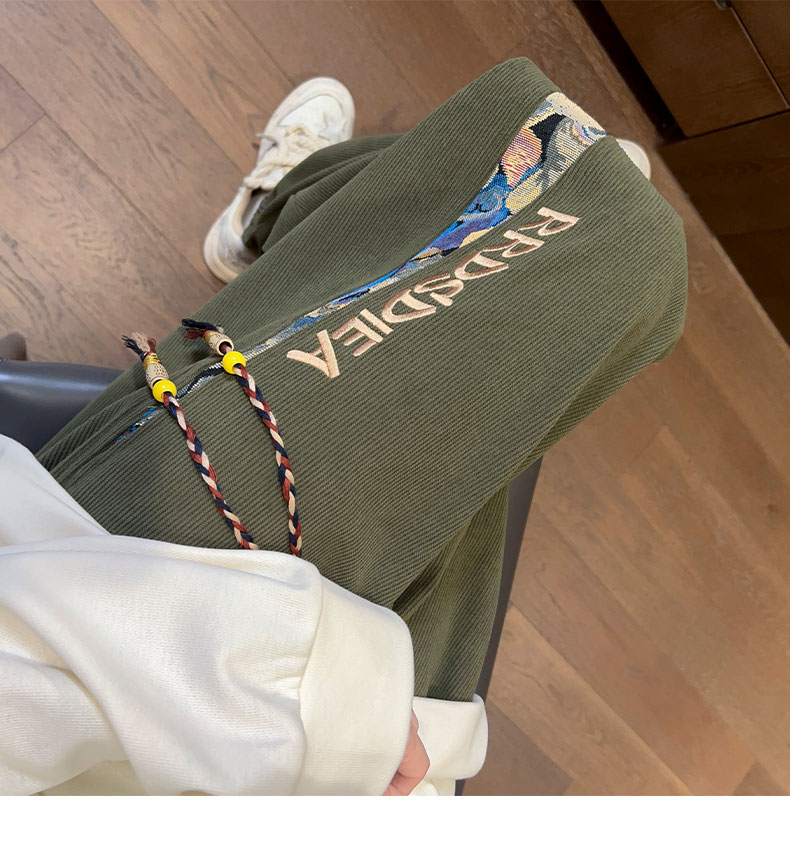 初中生燈芯絨秋冬褲子女大碼寬松束腳衛褲2025新款休閒運動加絨褲