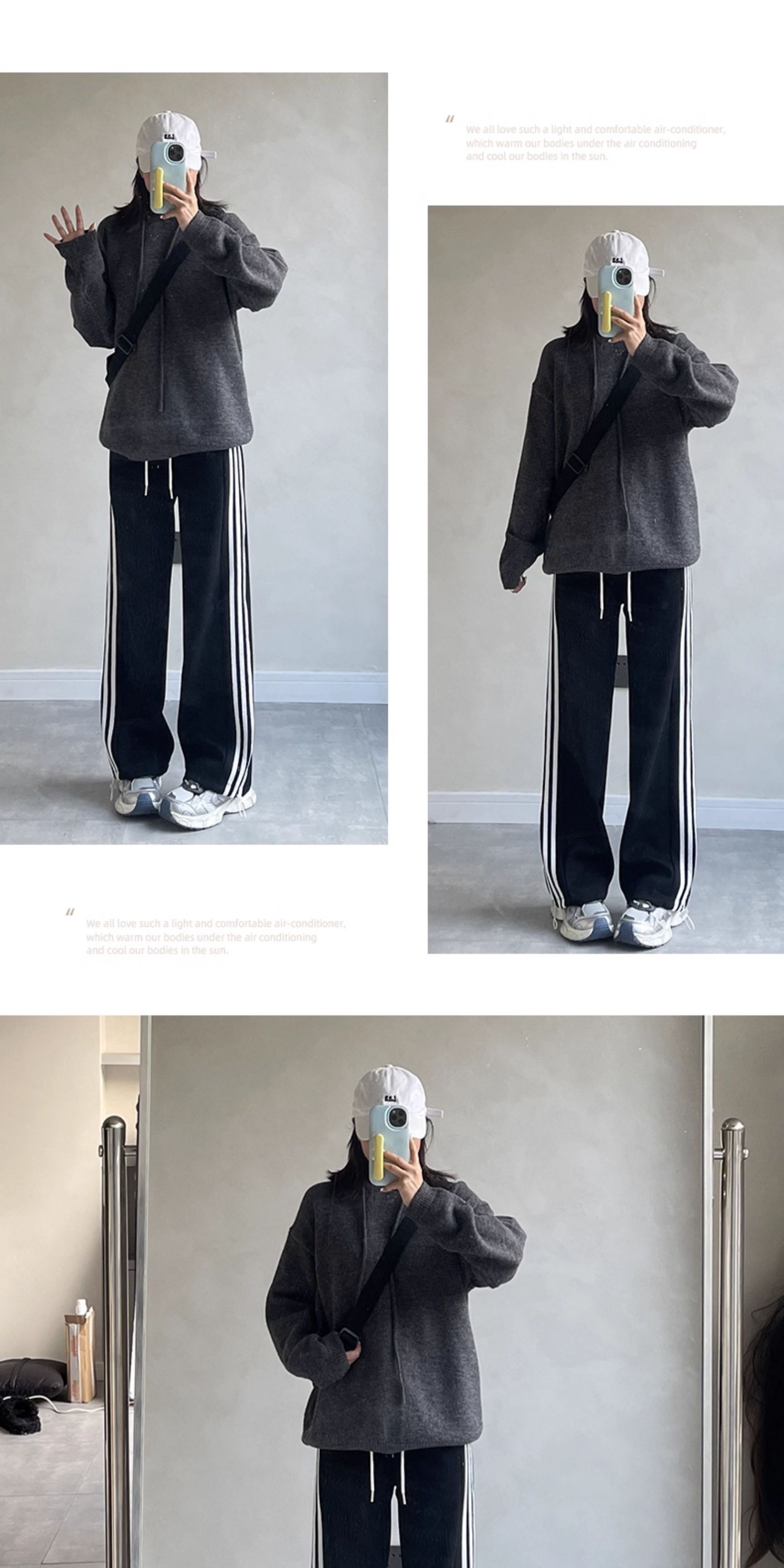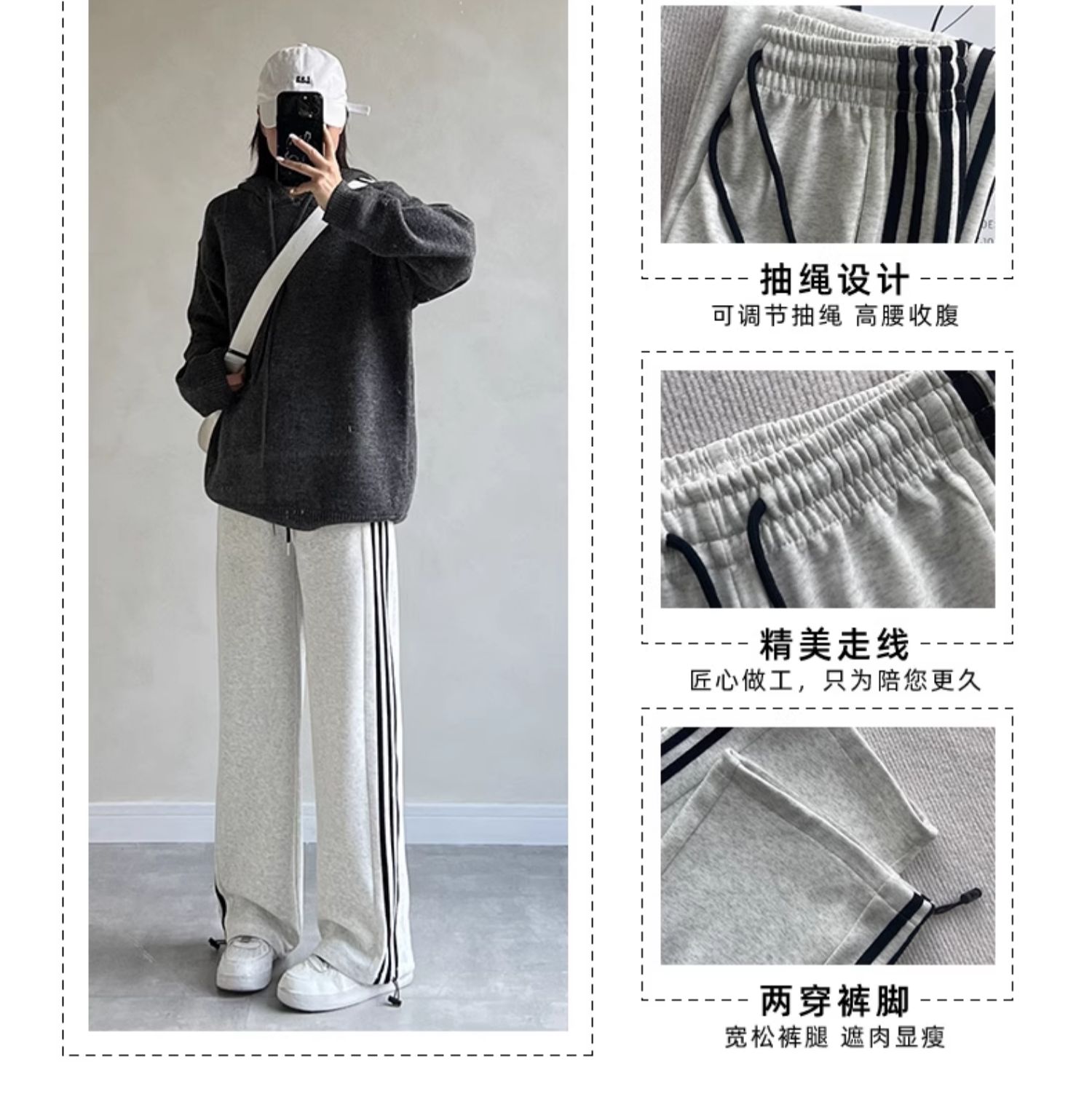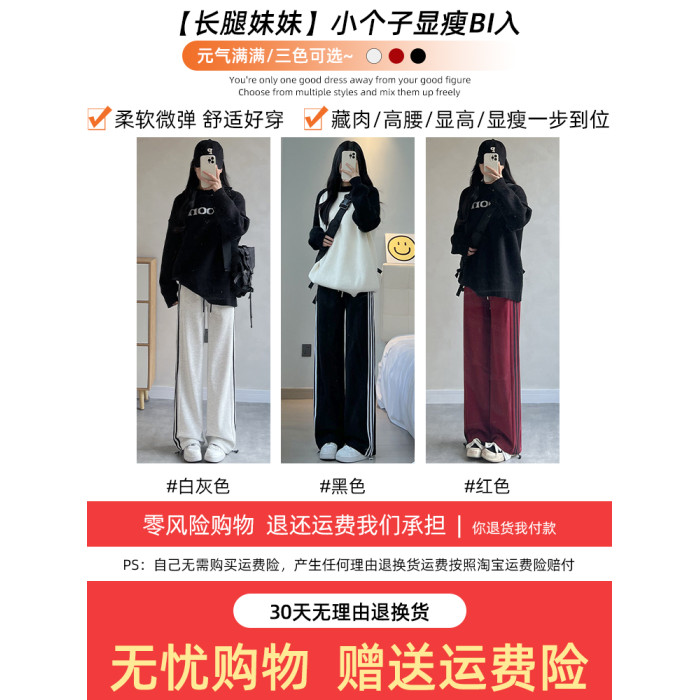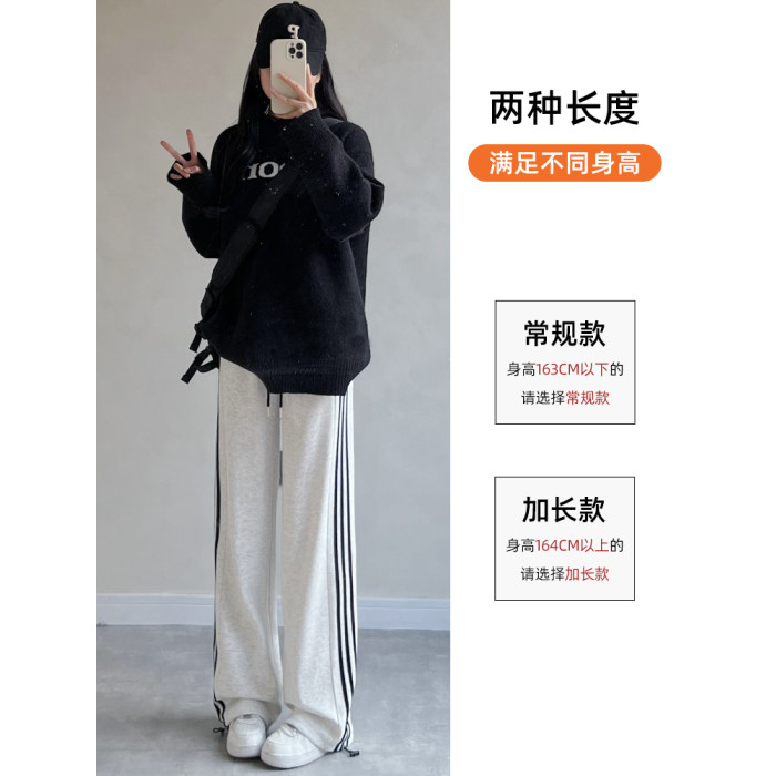 灰色運動褲女秋季2025新款寬松復古休閒冬季加絨衛褲小個子濶腿褲