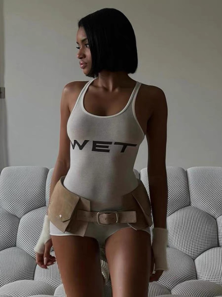 YZY!MOWALOLA WET字母背心美式高彈緊身上衣Bianca同款kenye