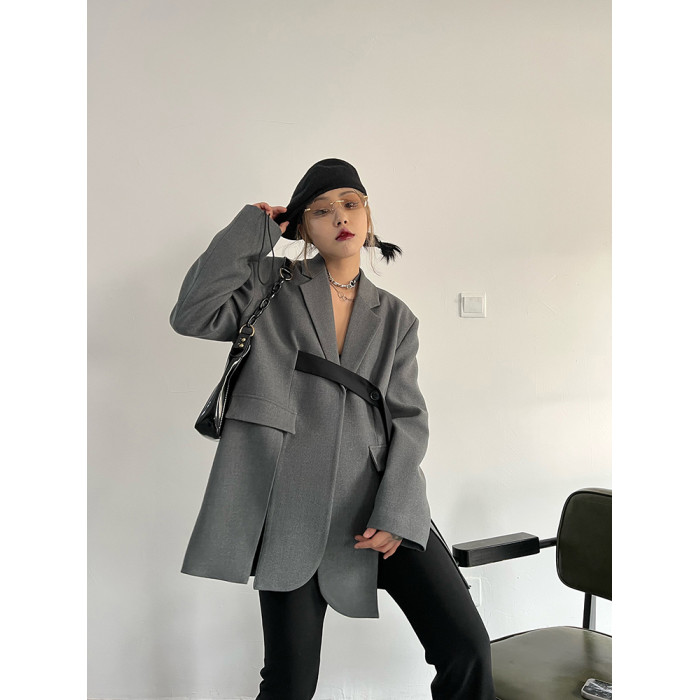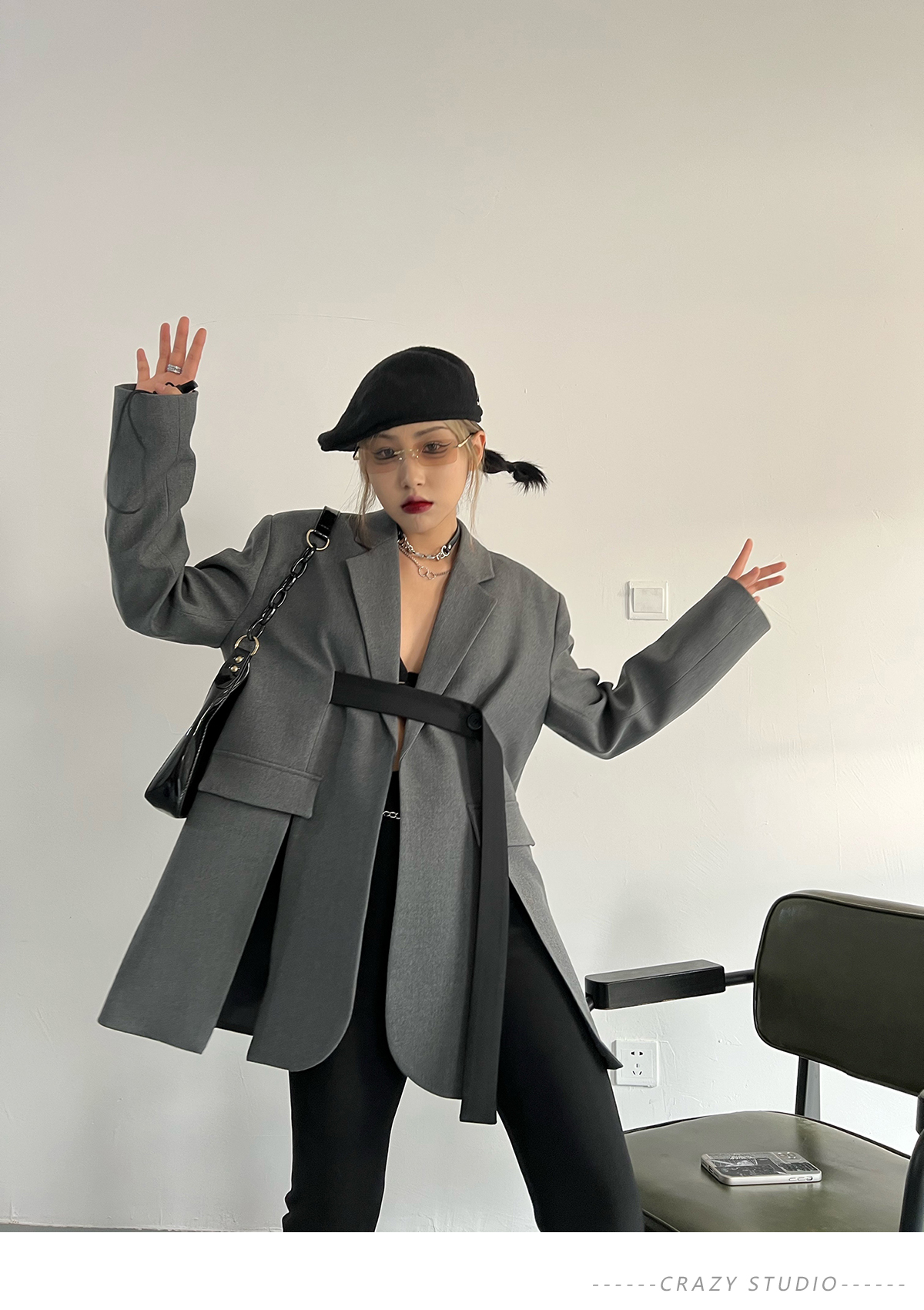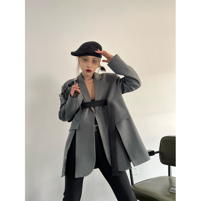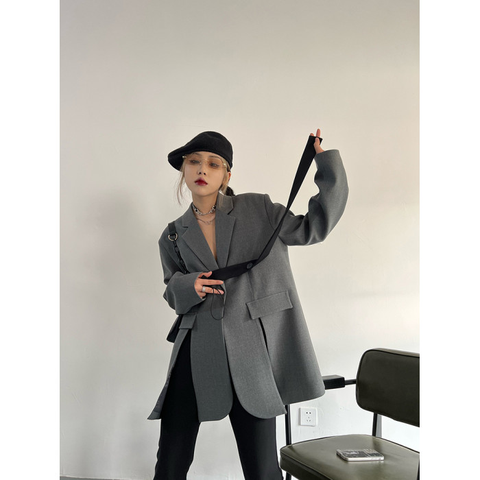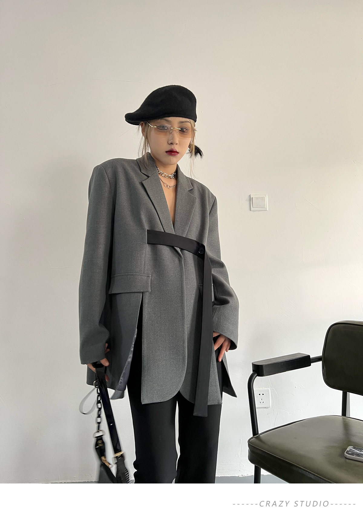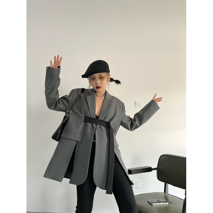 2025年春夏新款設計感小衆灰色韓版顯瘦氣質女神範高級西裝上衣女