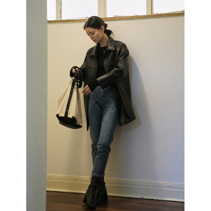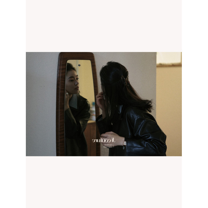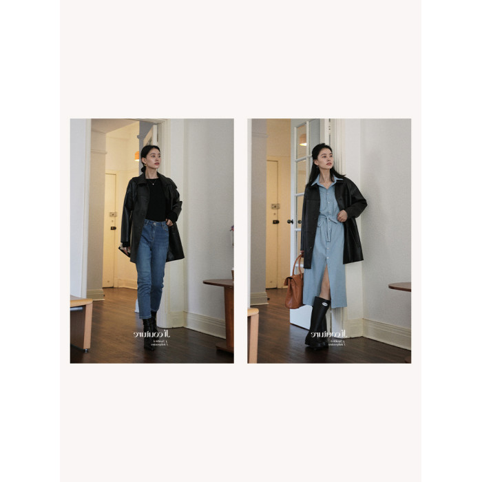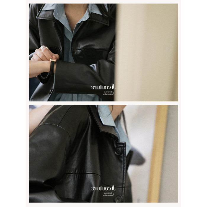 法式復古黑色拼接皮衣外套女2025春秋季新款寬松氣質中長款夾克女