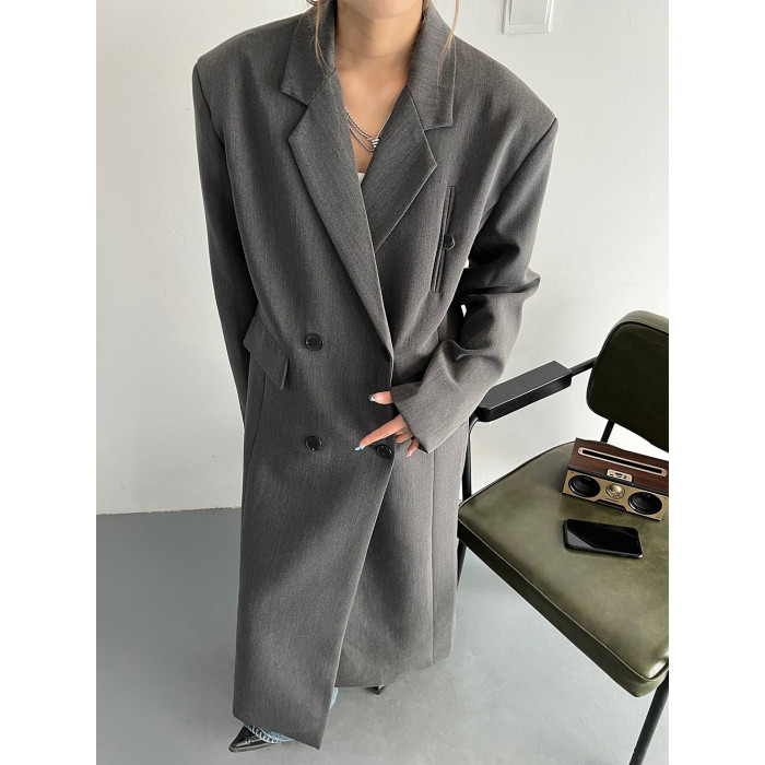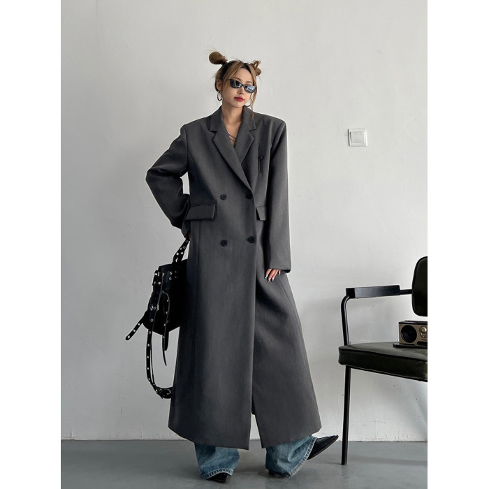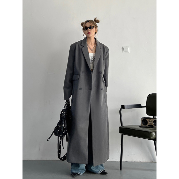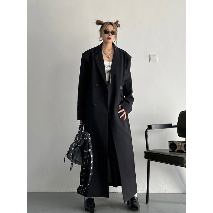 ins春秋新款氣場強大廓形垂墜感寬松顯瘦韓版長款西裝風衣外套女