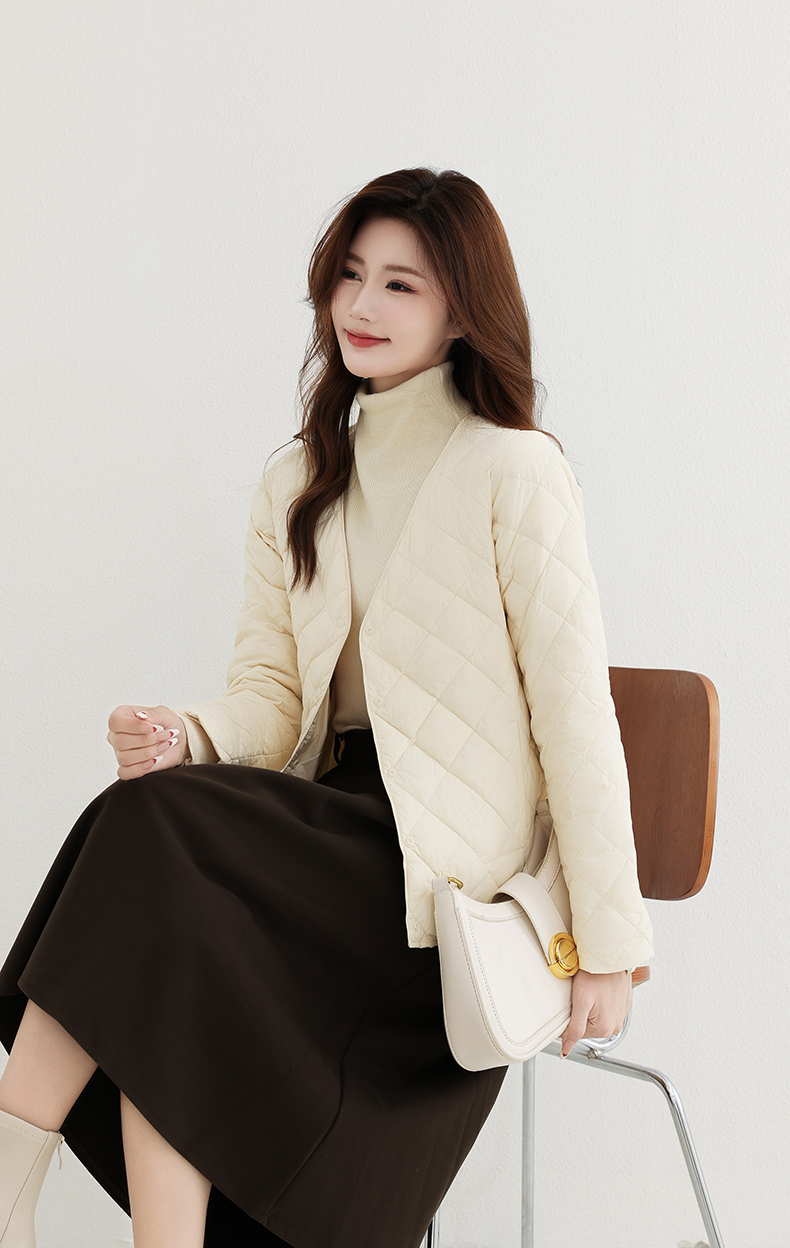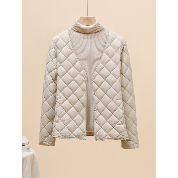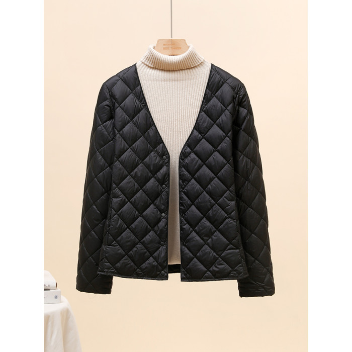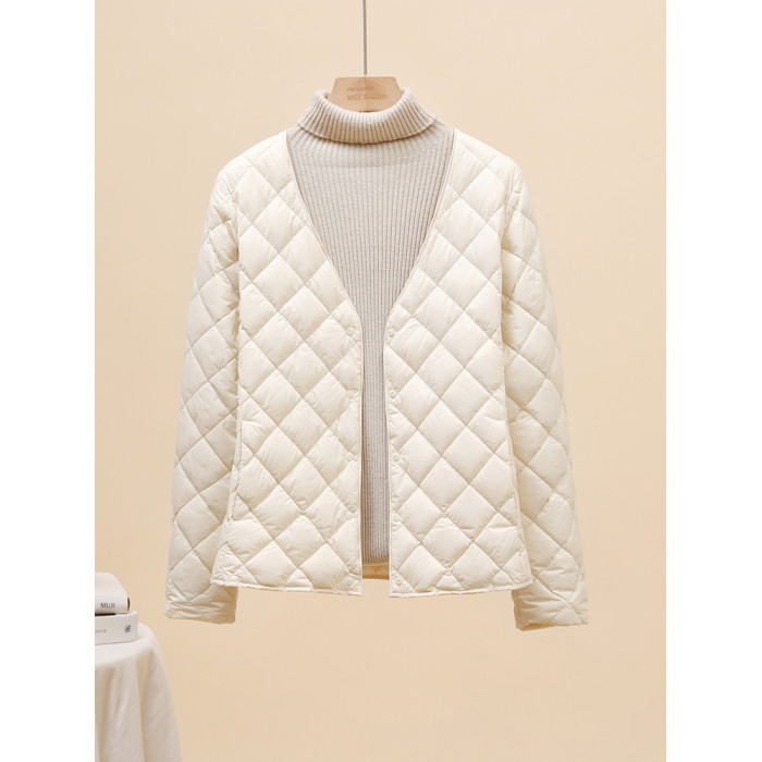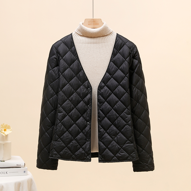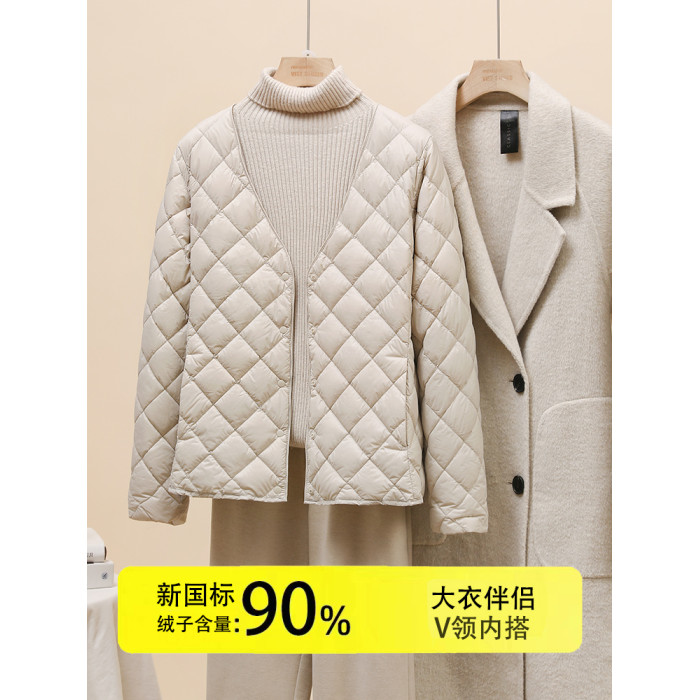 輕薄羽絨服女V領羽絨內膽2025新款大衣伴侶內搭打底菱格無領外套