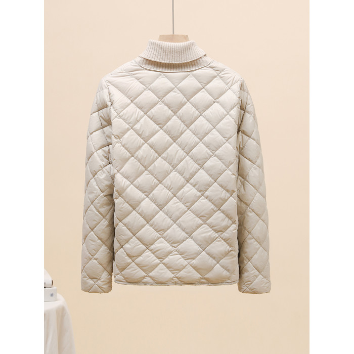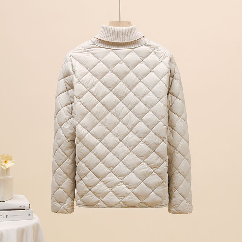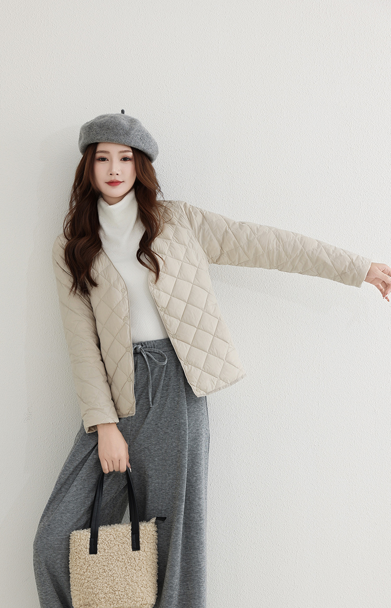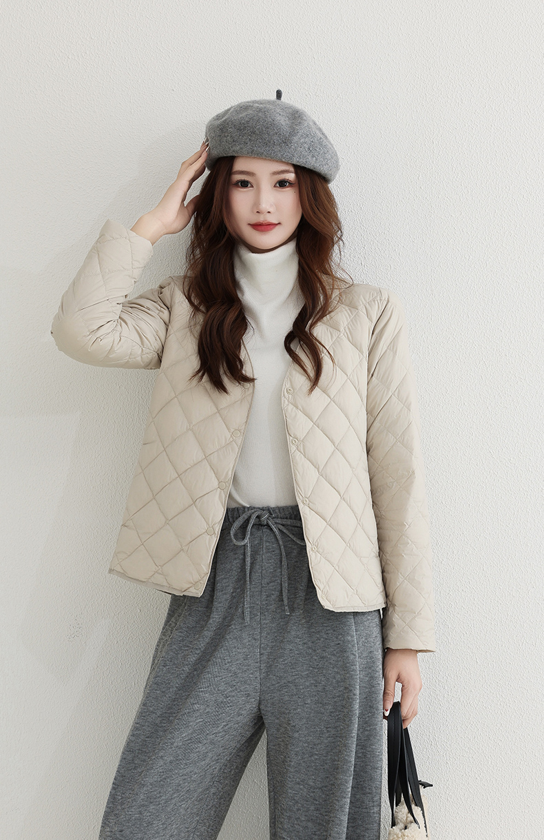 輕薄羽絨服女V領羽絨內膽2025新款大衣伴侶內搭打底菱格無領外套
