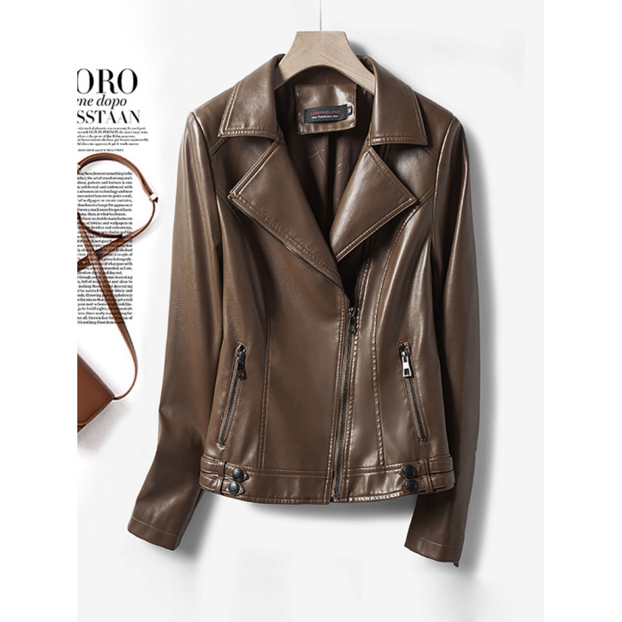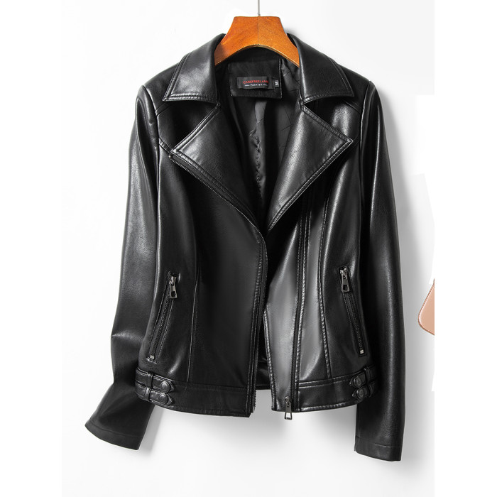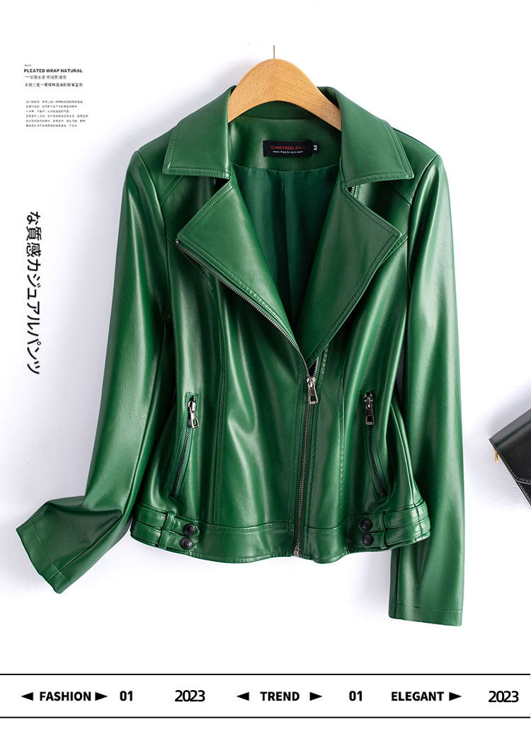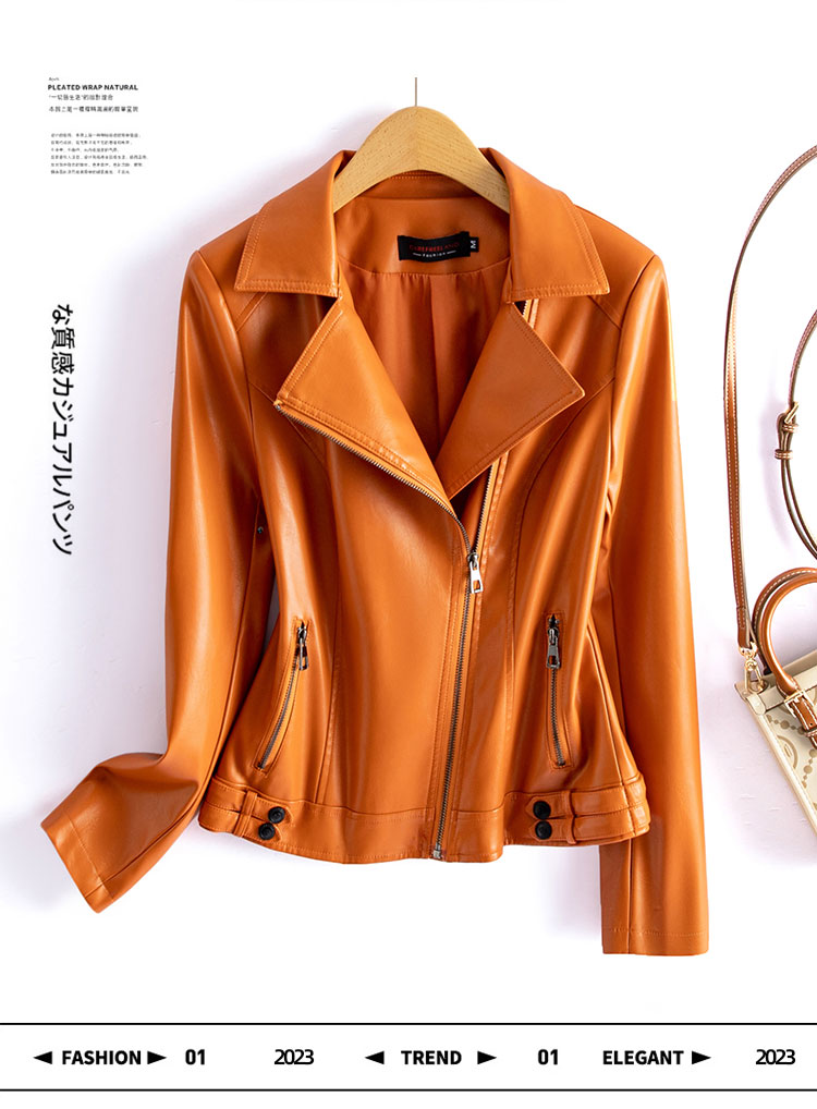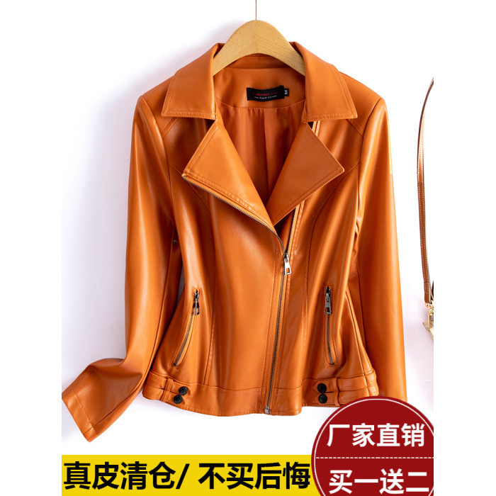 海甯真皮皮衣女短款2025春秋季新款皮夾克氣質修身綿羊皮機車外套