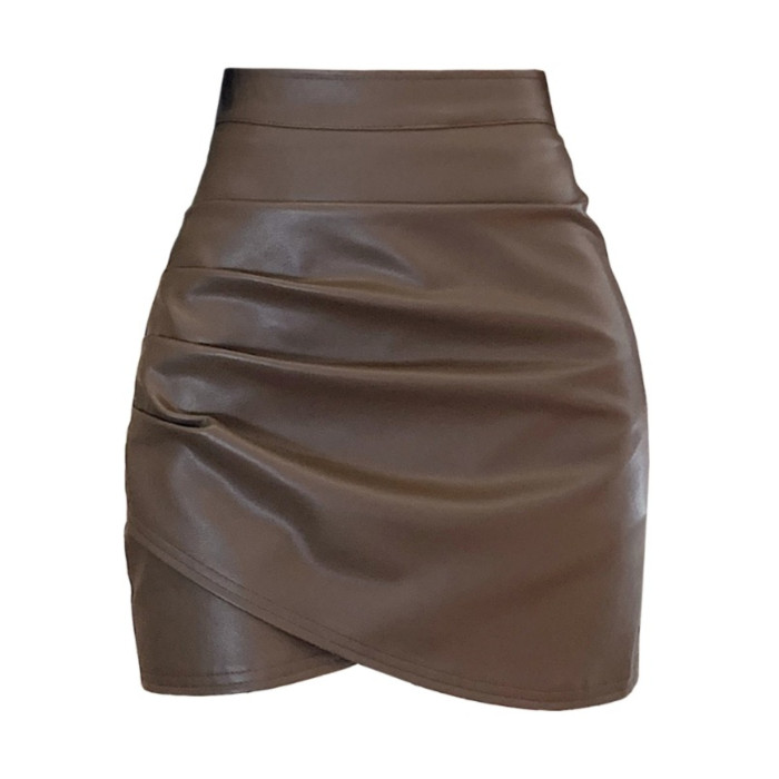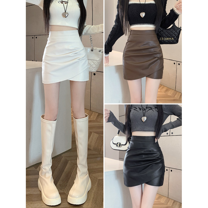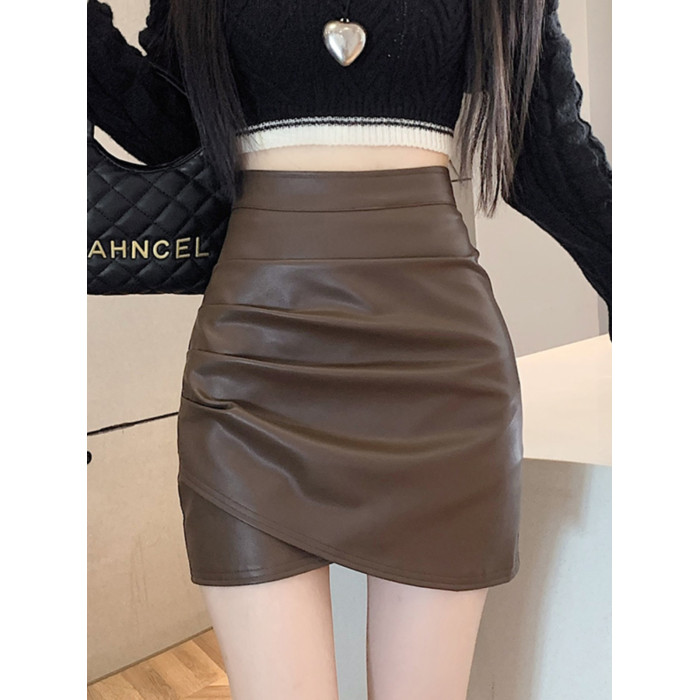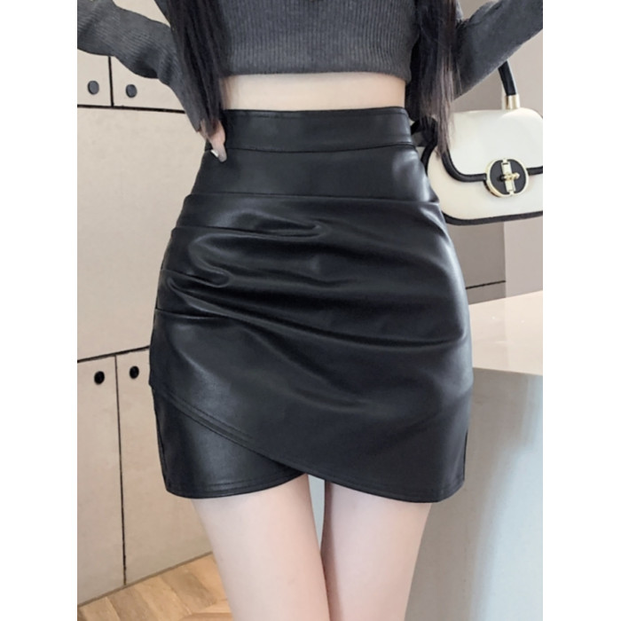 不規則PU皮半身裙女2025新款高腰褶皺短裙顯瘦氣質秋冬A字包臀裙