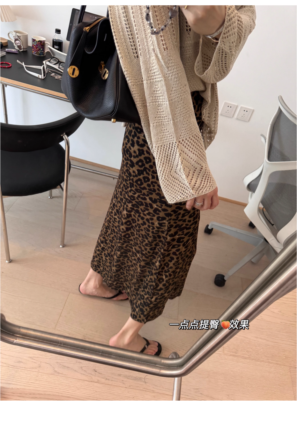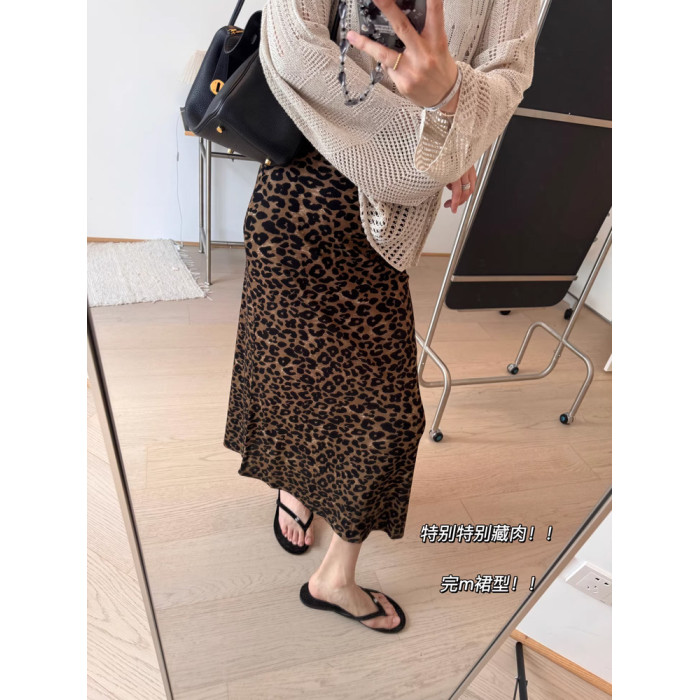 豹紋半身裙女秋季新款超好看a字松緊高腰長裙高級感顯瘦休閒裙子