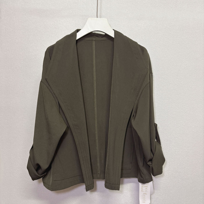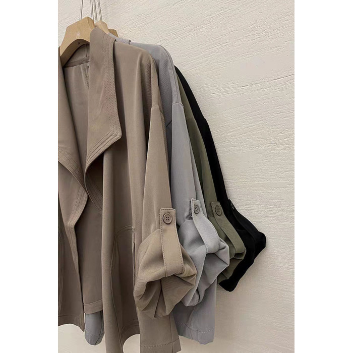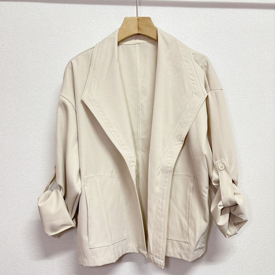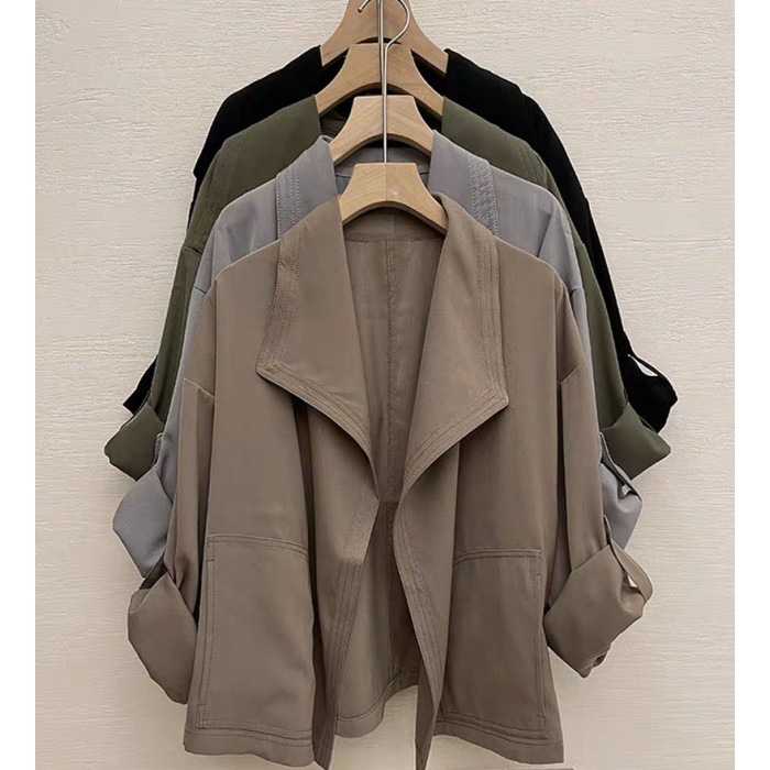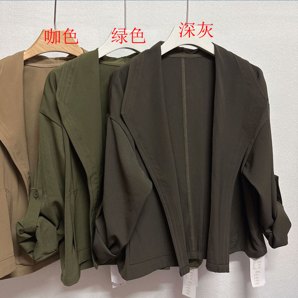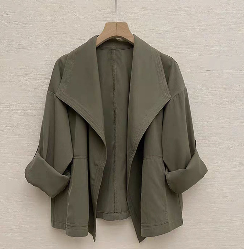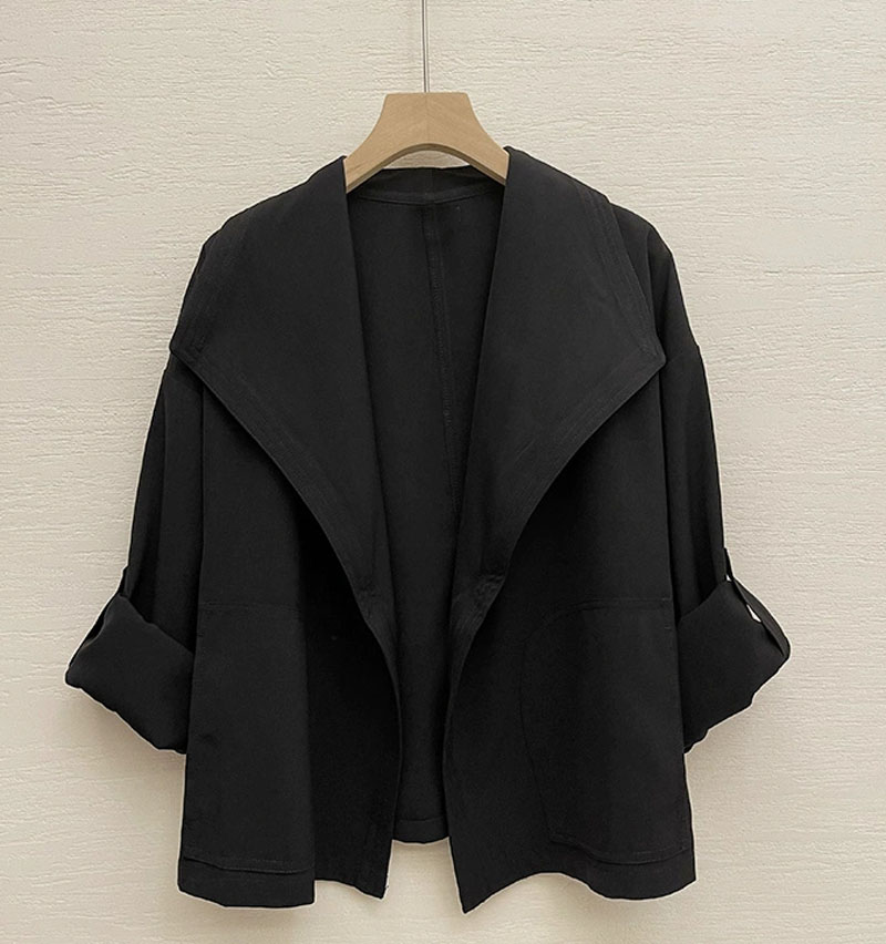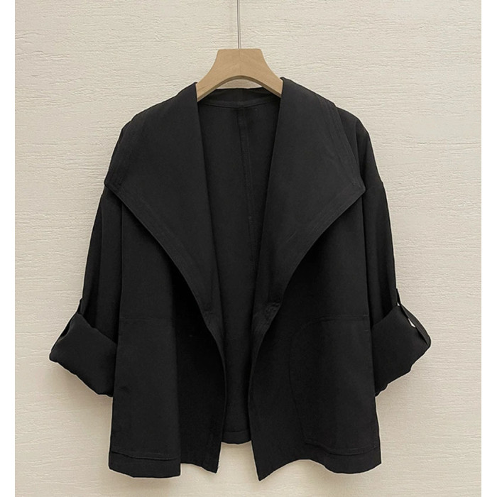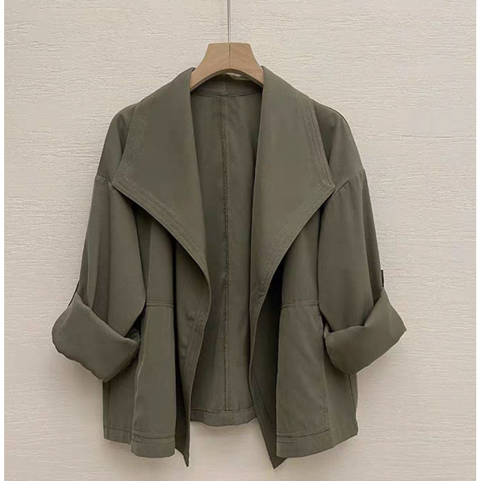 港風短外套小衆設計感帥氣復古大翻領無釦短款風衣休閒薄外套女