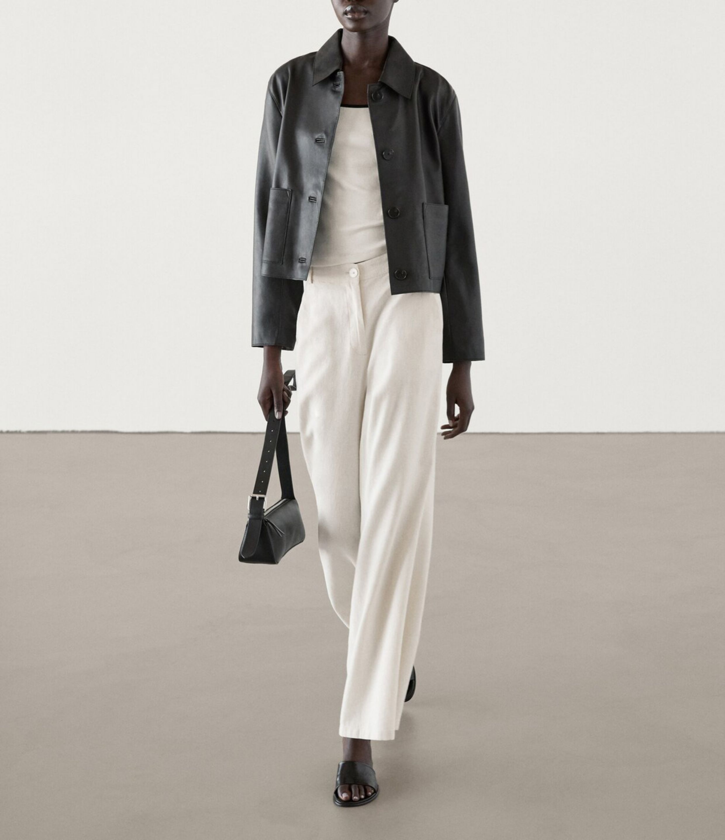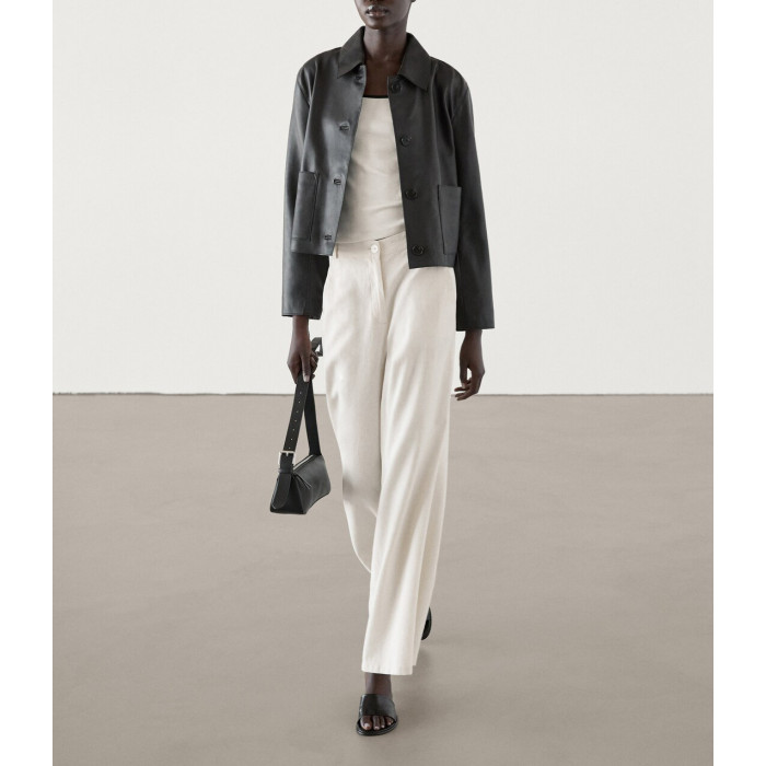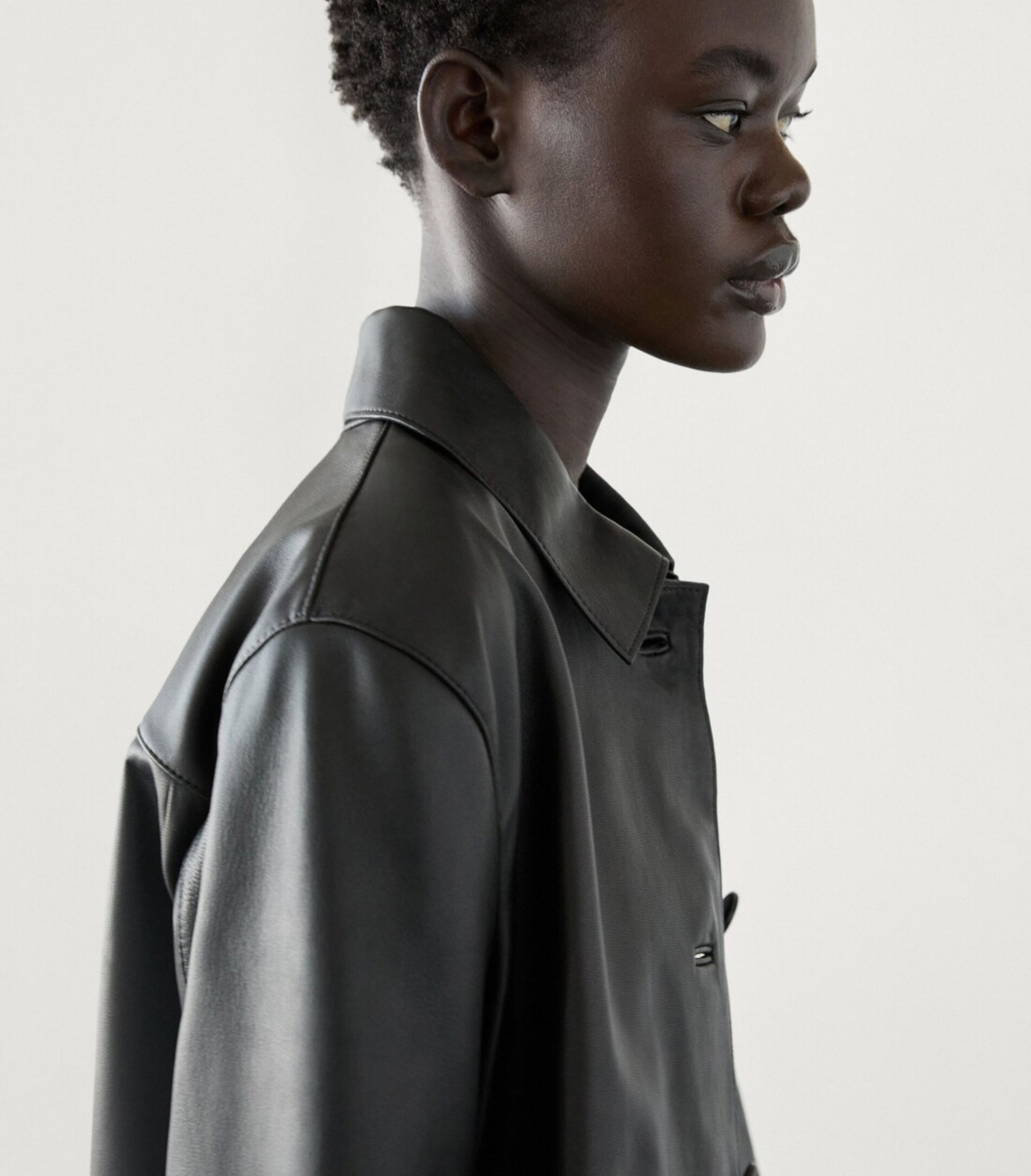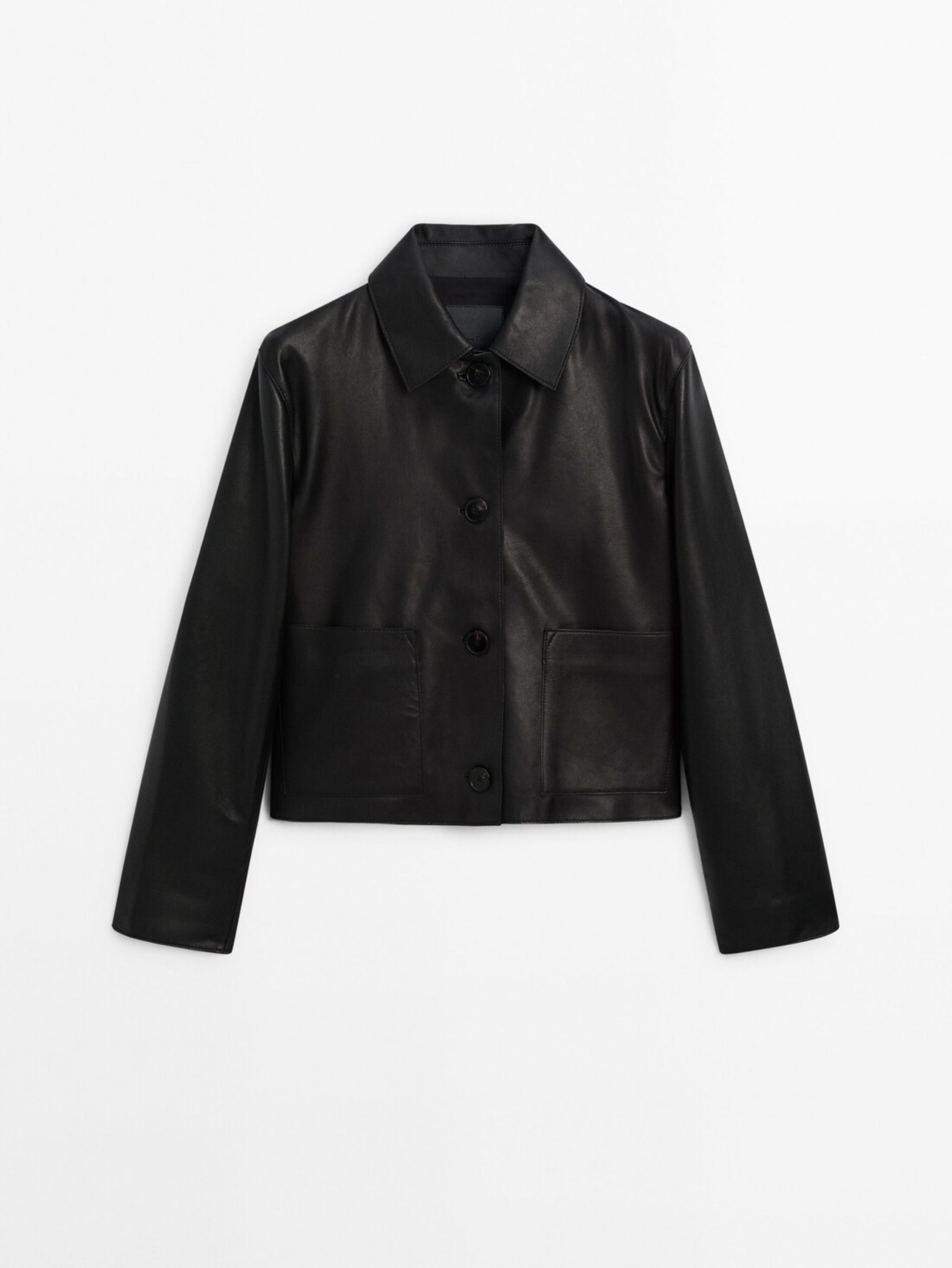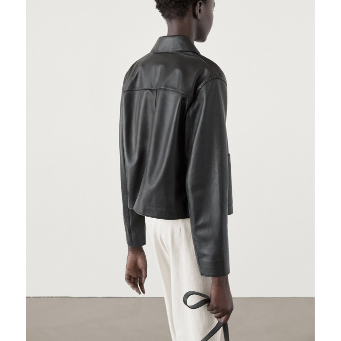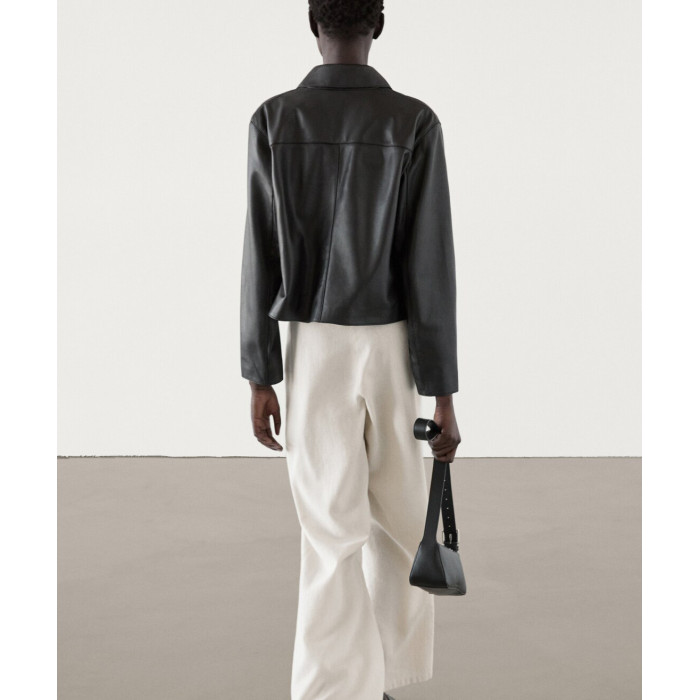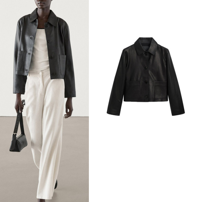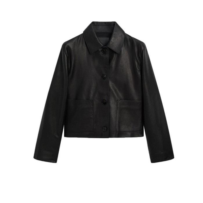 春季新品女高級感優雅氣質法式黑色翻領PU皮衣短外套 4703813