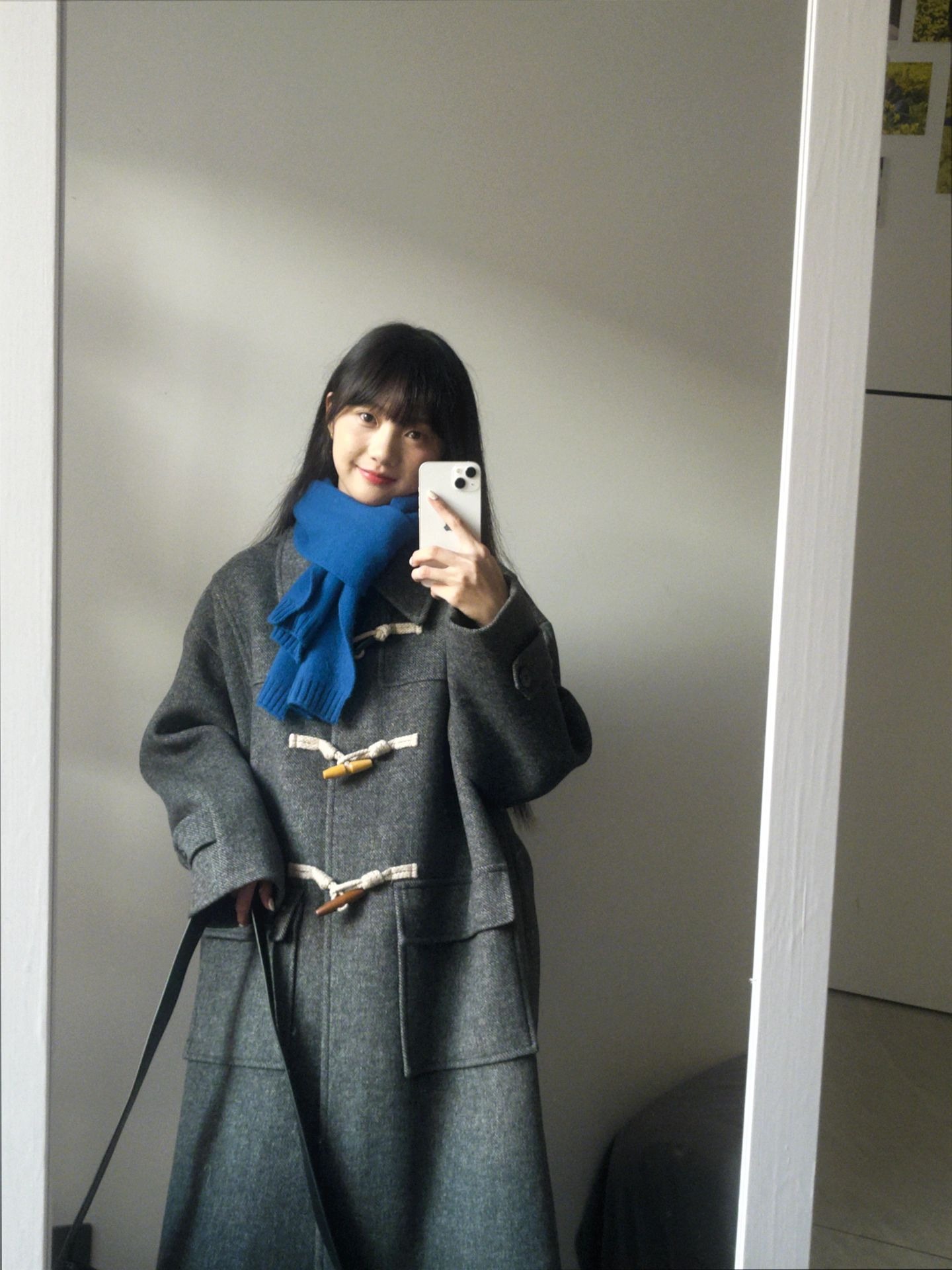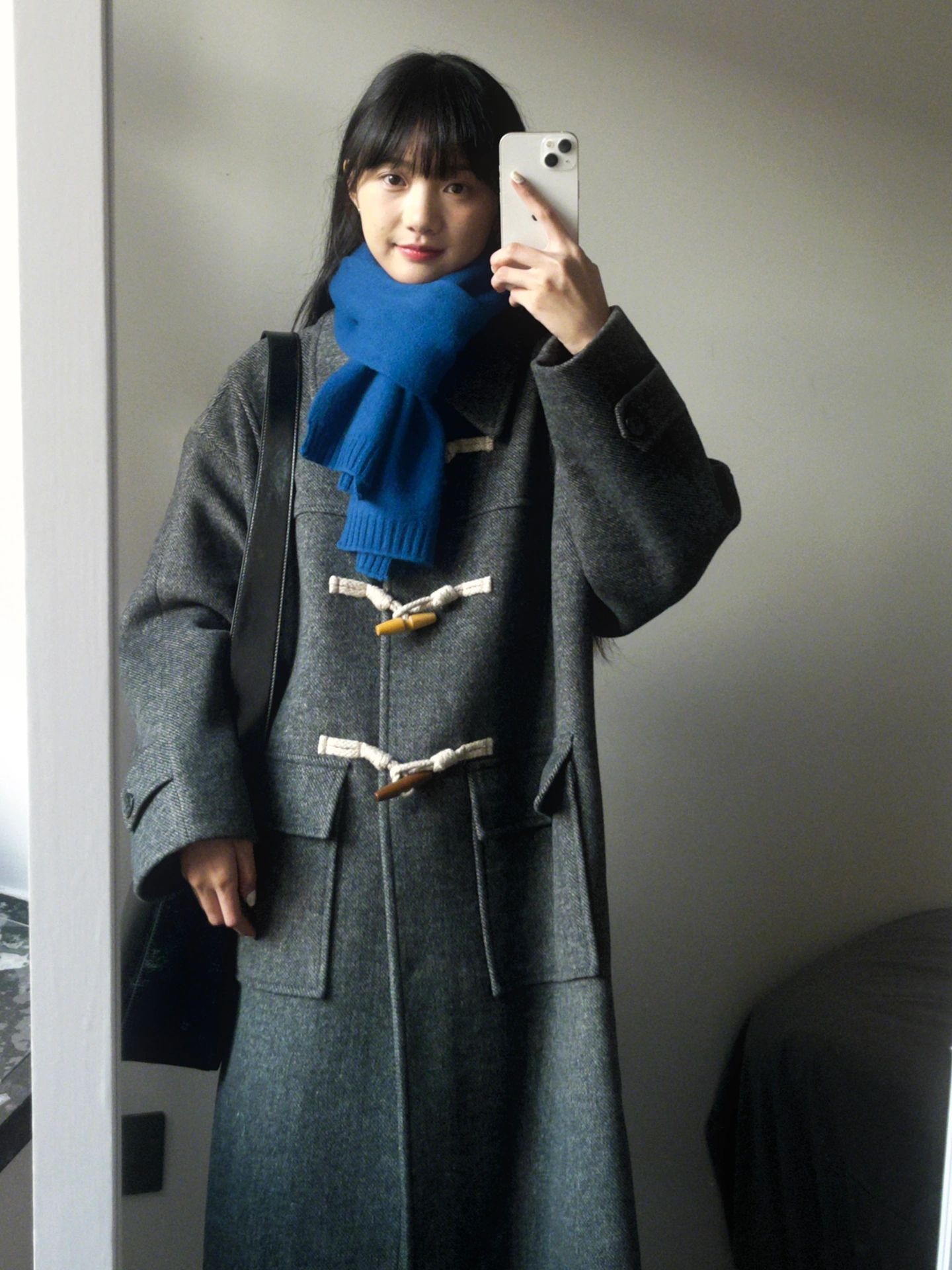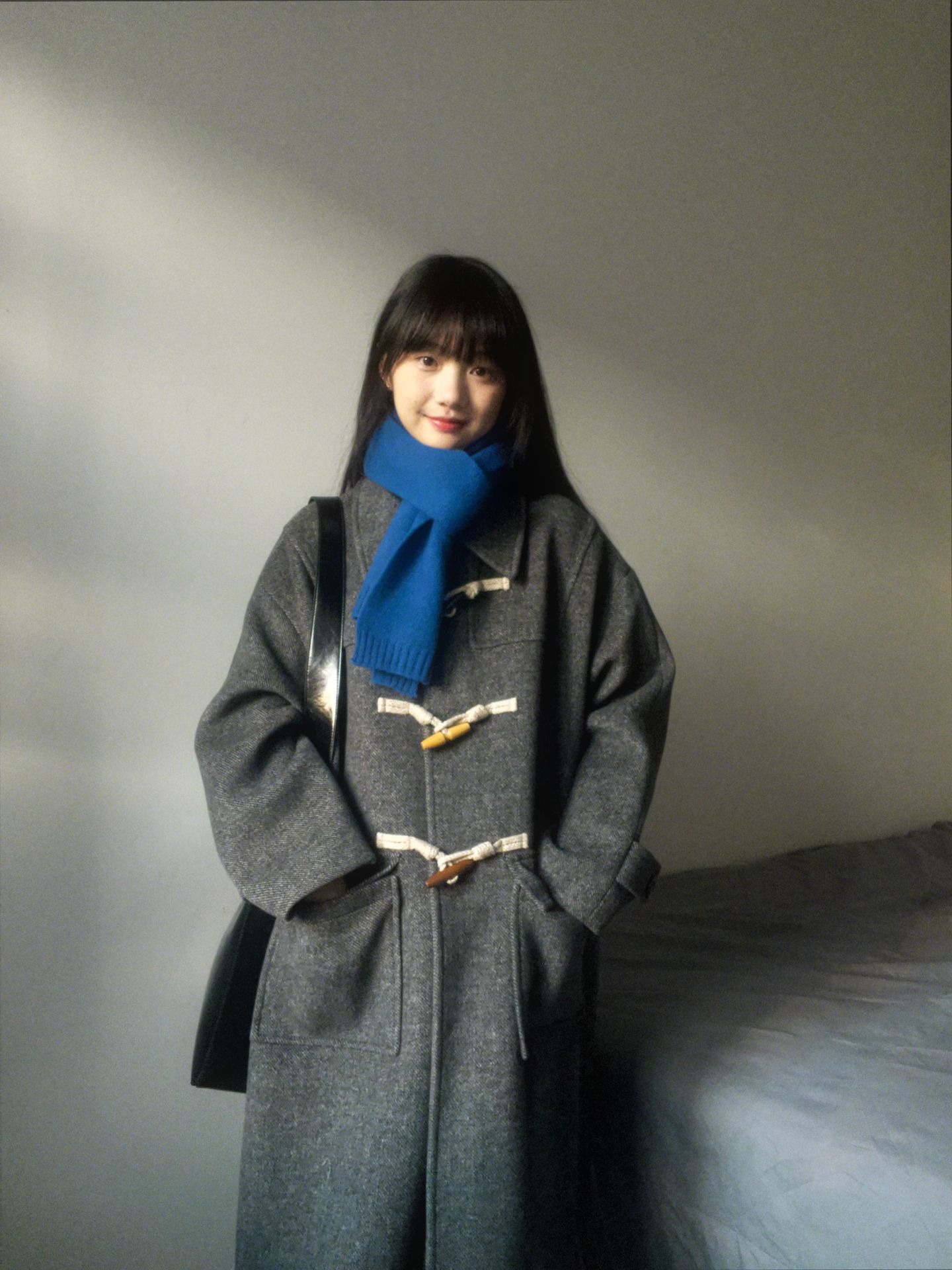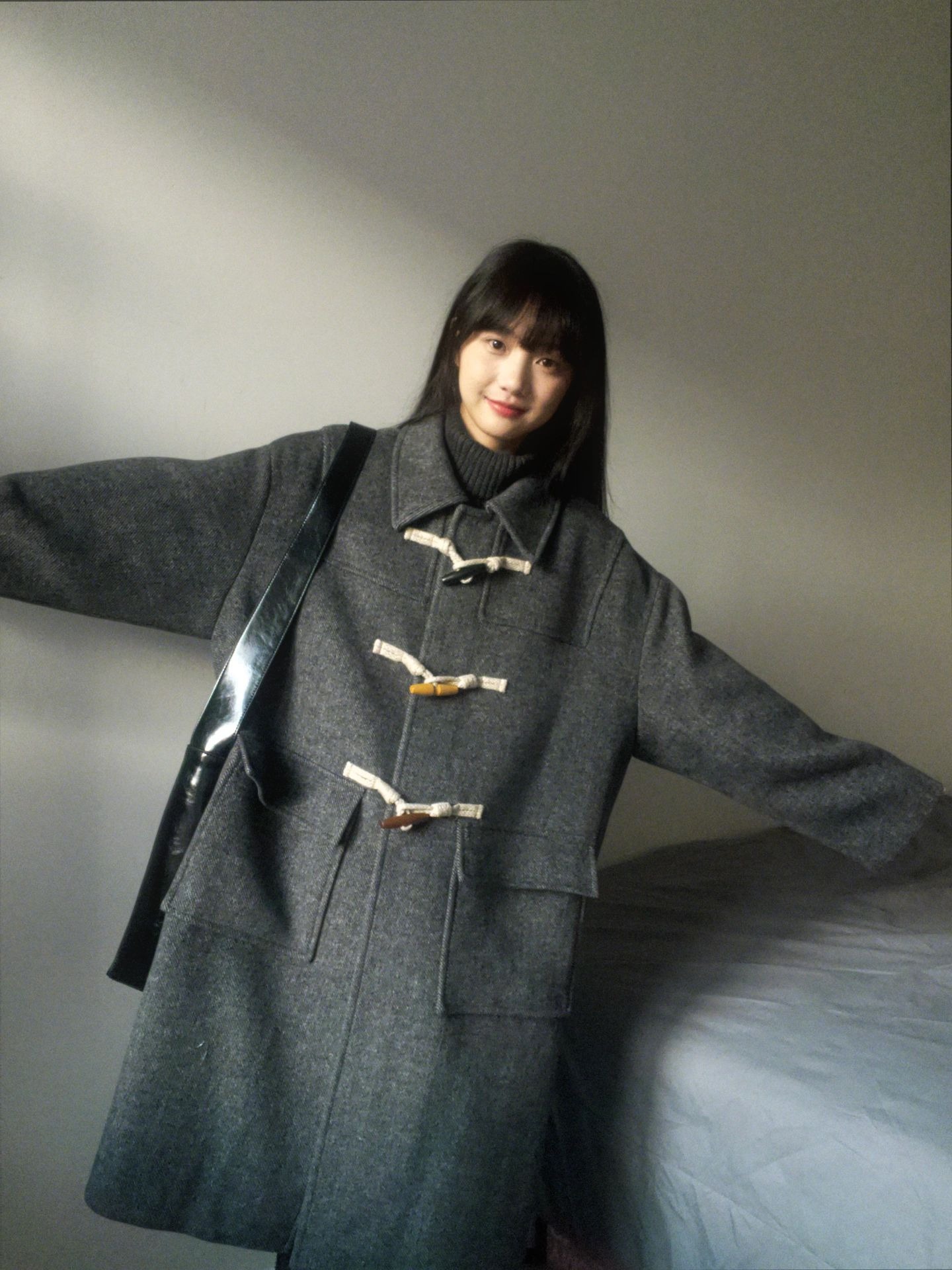 牛角釦羊絨大衣女2025秋冬新款灰色小個子毛呢外套加厚羽絨服內膽