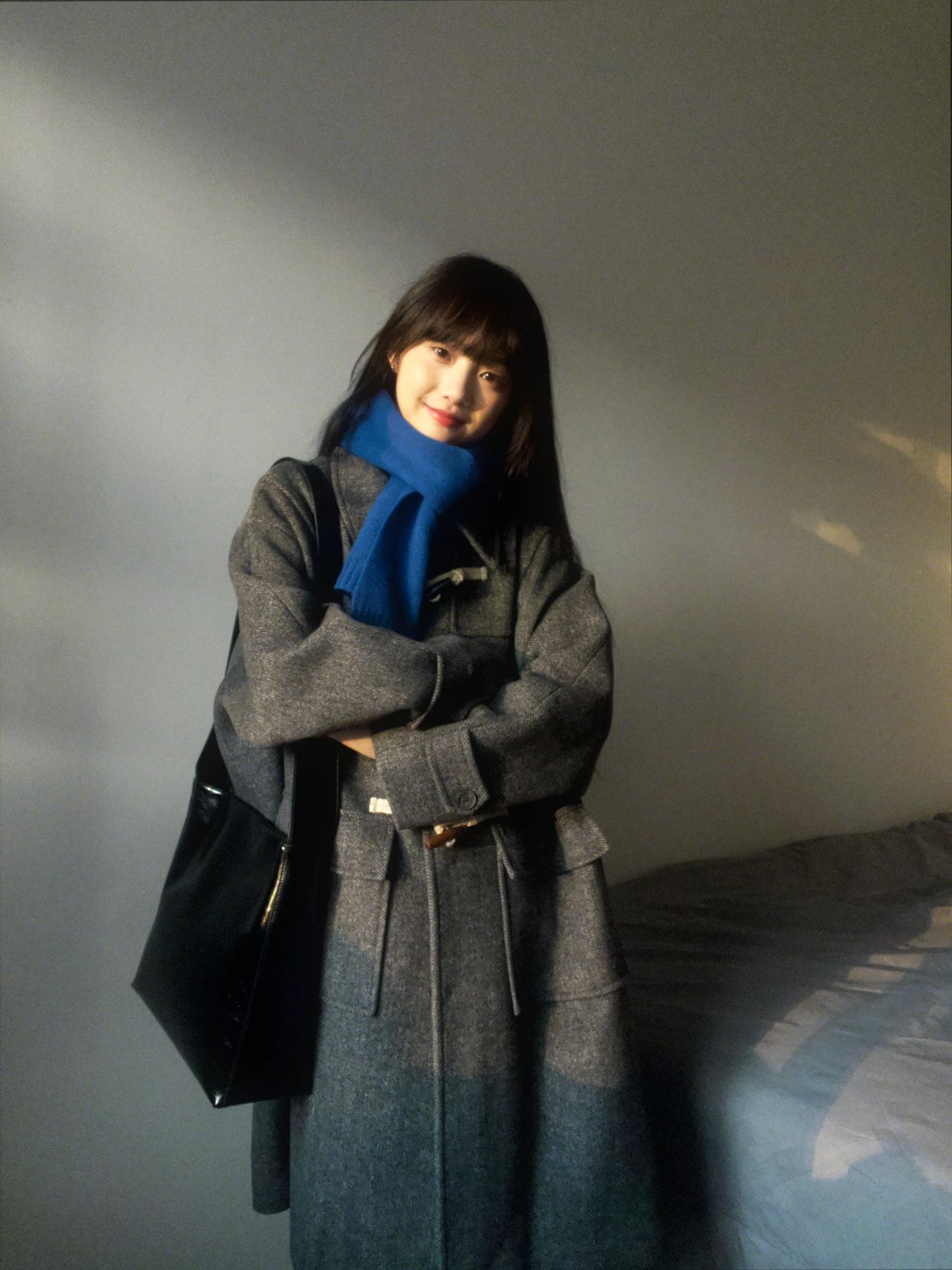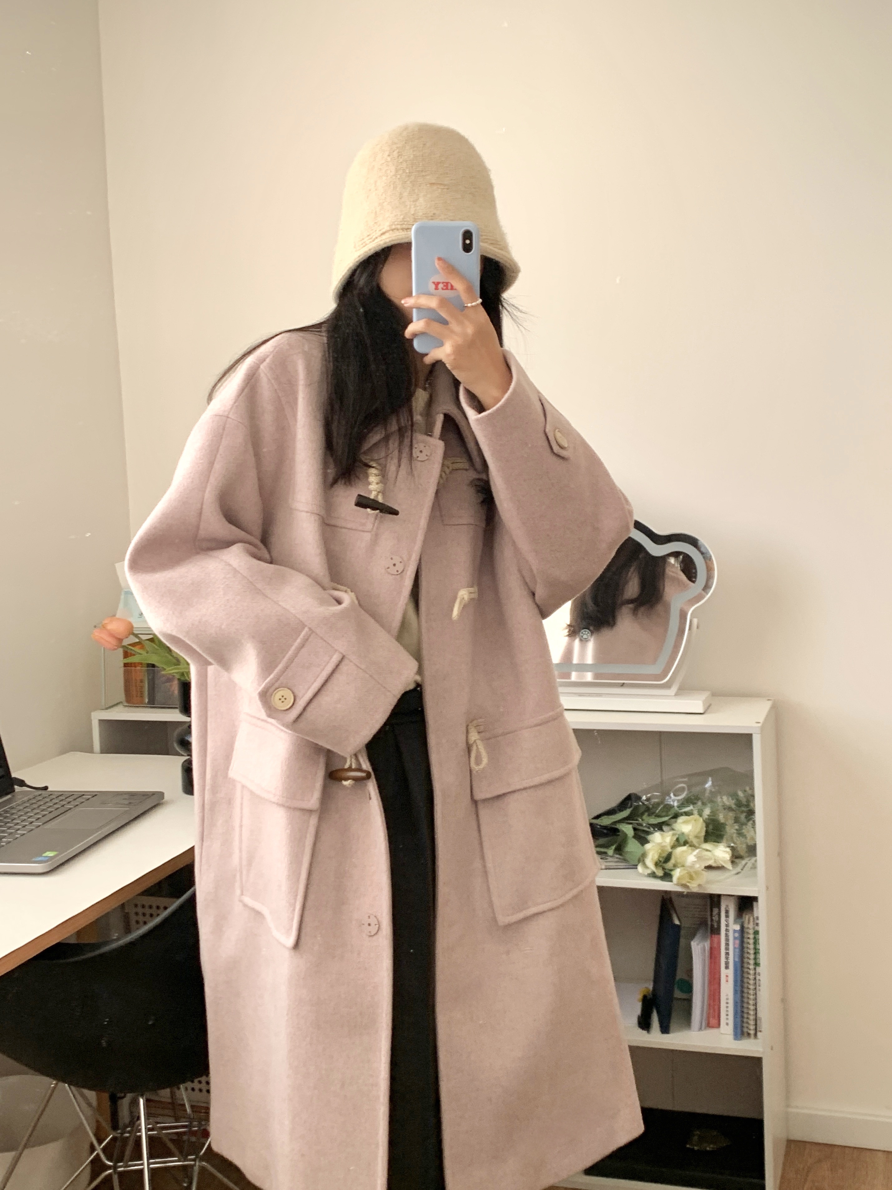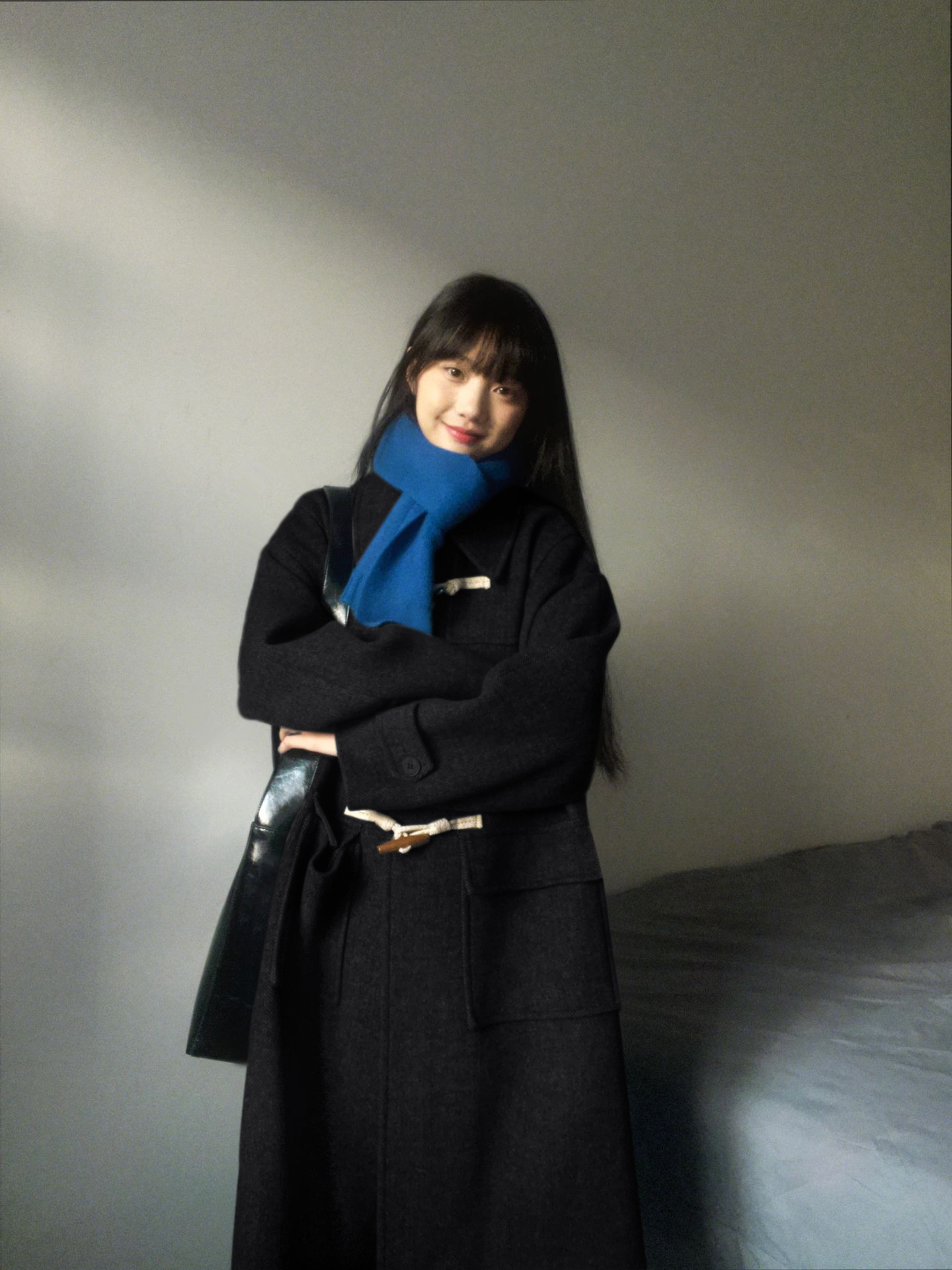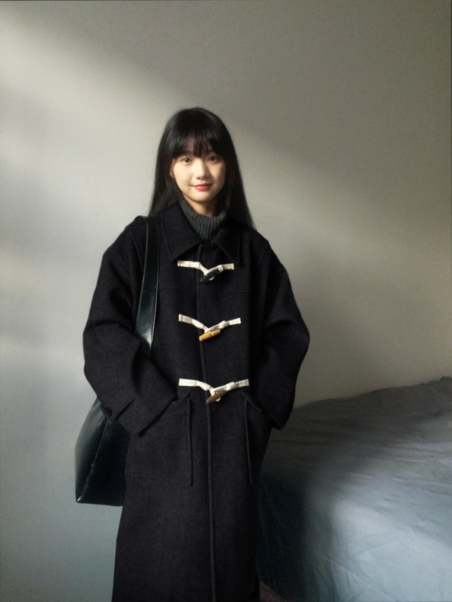 牛角釦羊絨大衣女2025秋冬新款灰色小個子毛呢外套加厚羽絨服內膽