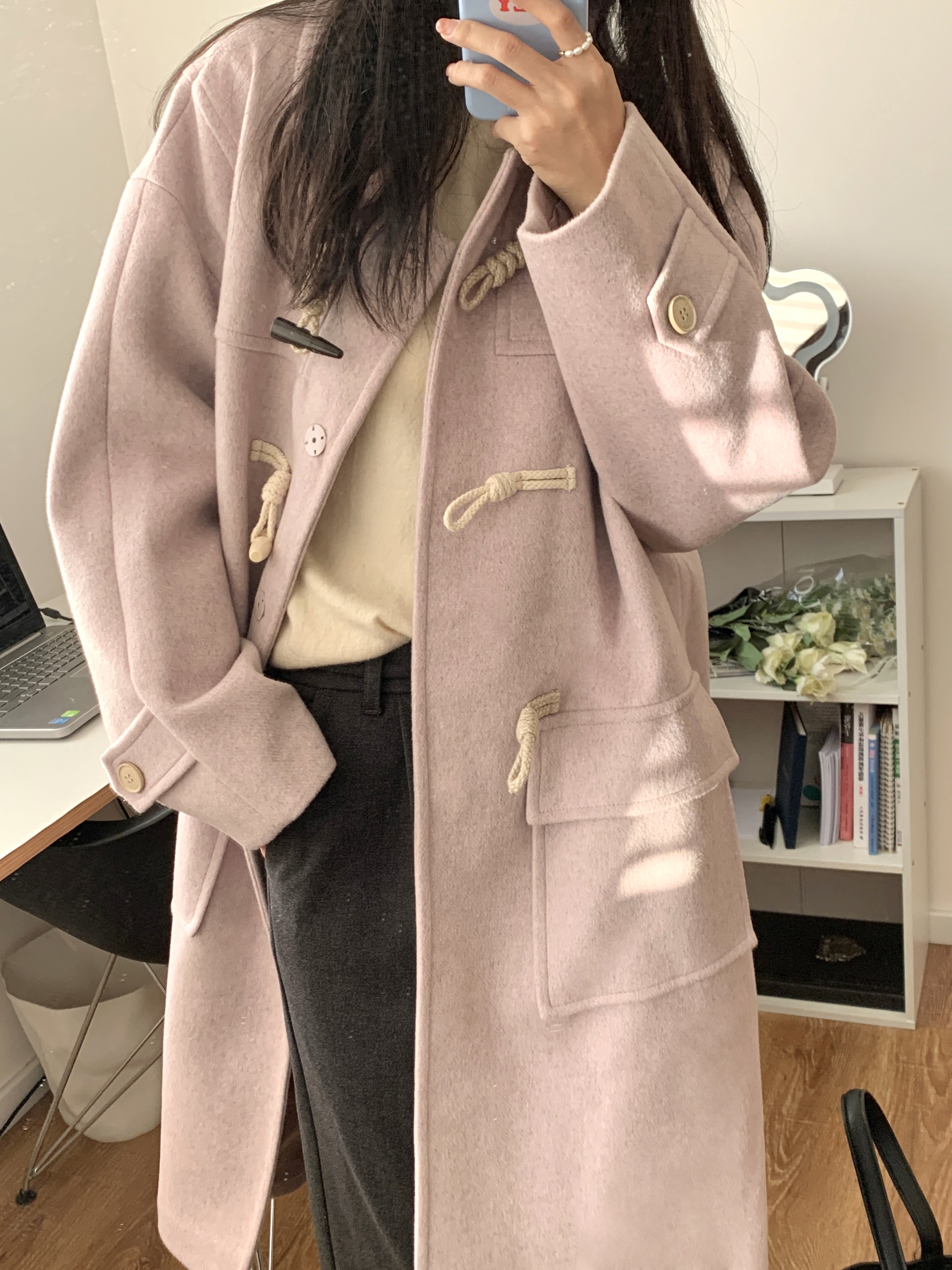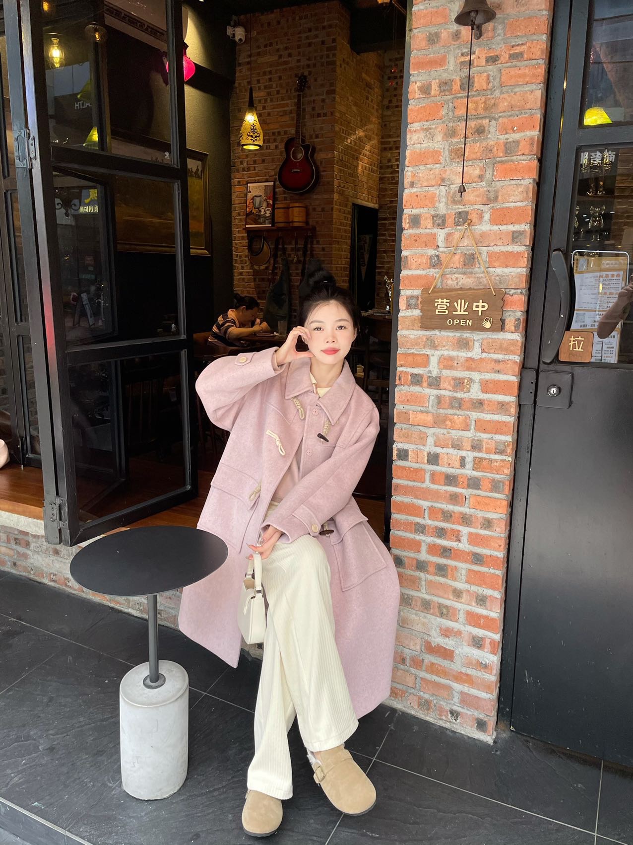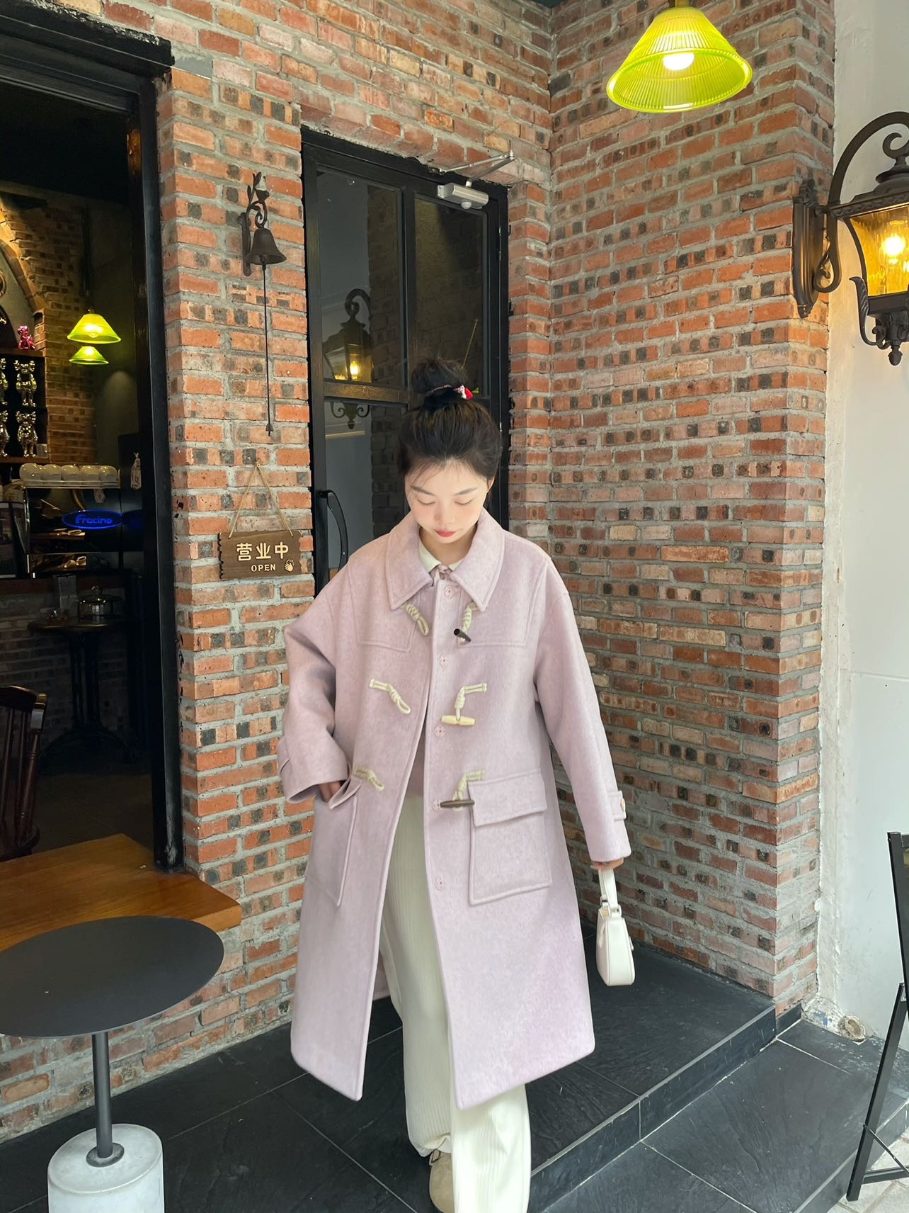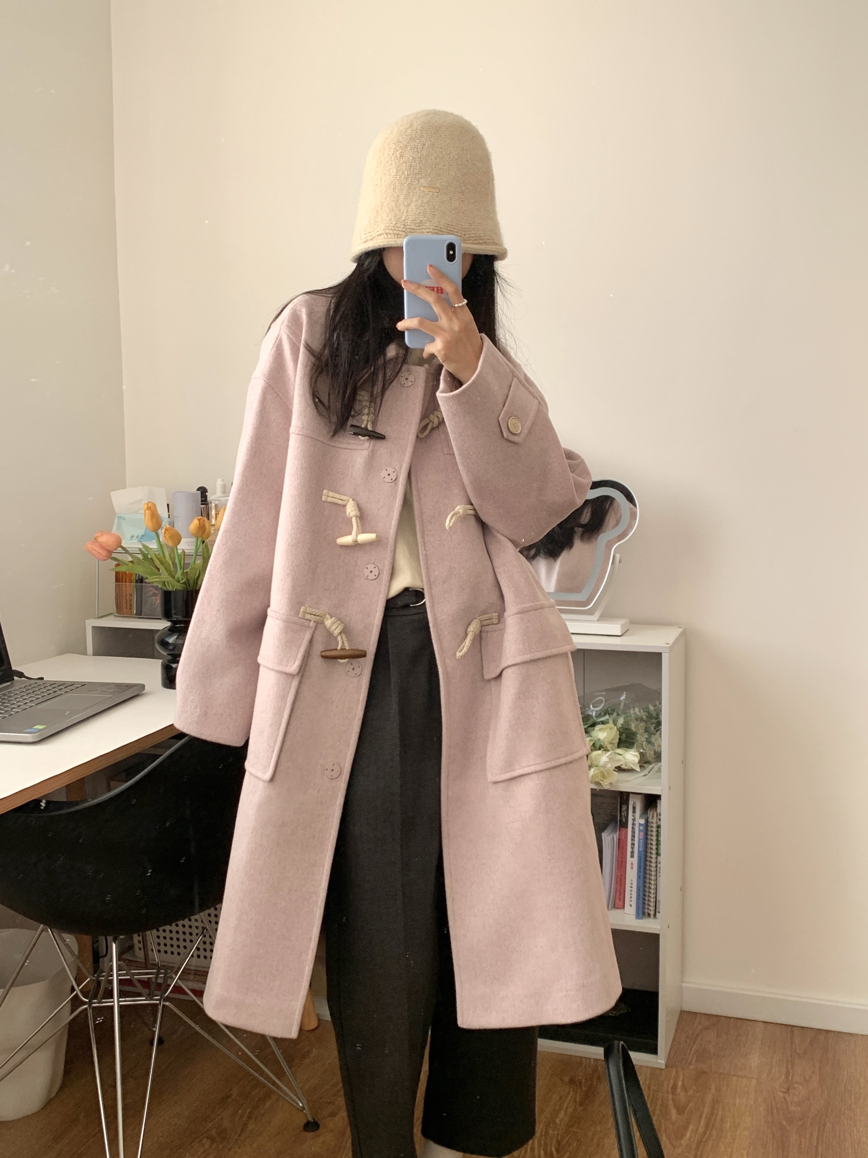 牛角釦羊絨大衣女2025秋冬新款灰色小個子毛呢外套加厚羽絨服內膽