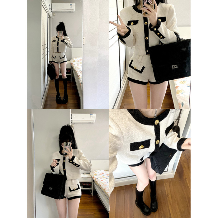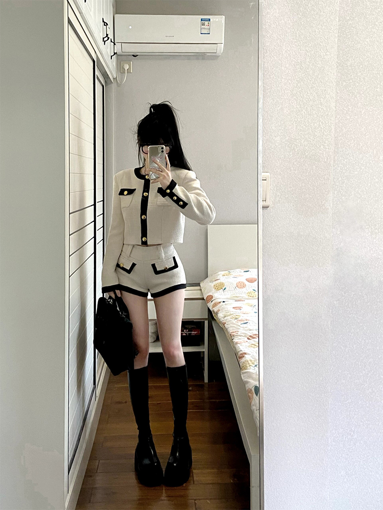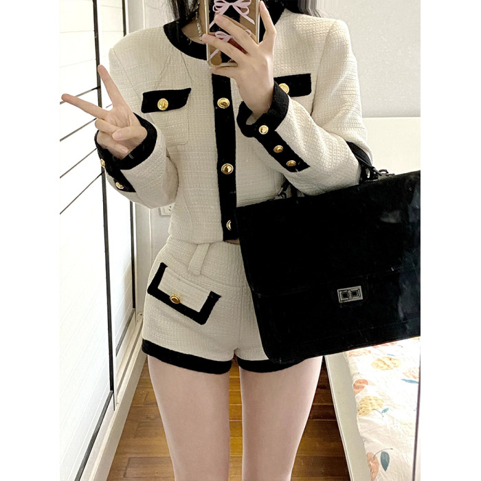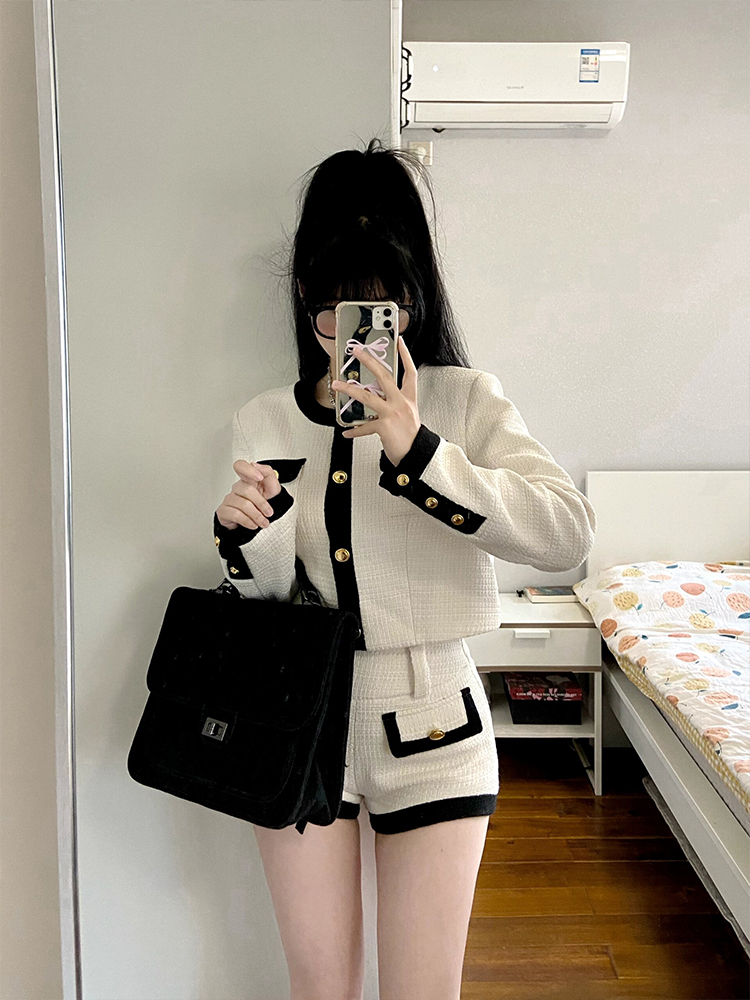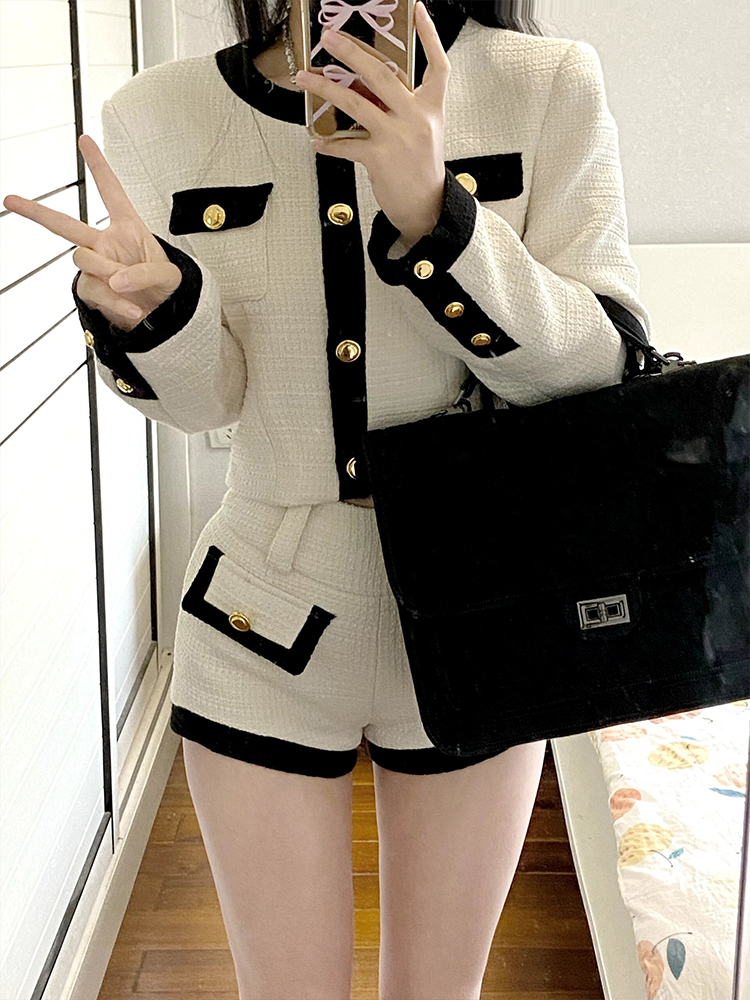 LookYiYi白色粗花呢小香風短外套女春季氣質高級感名媛上衣兩件套