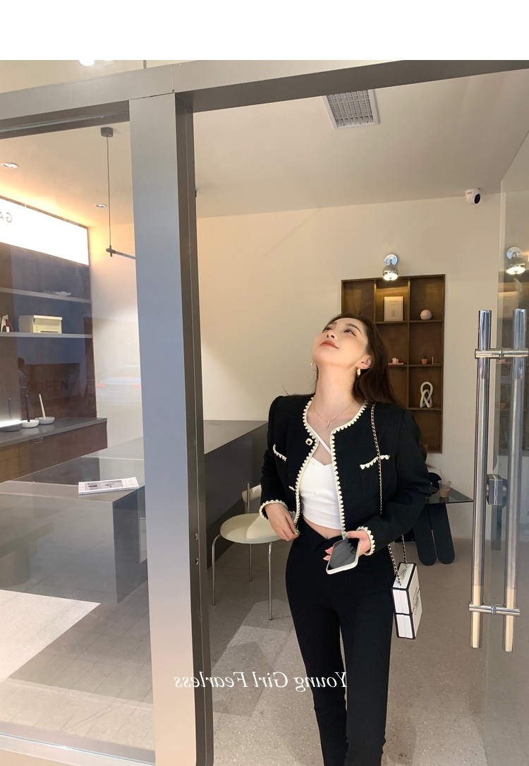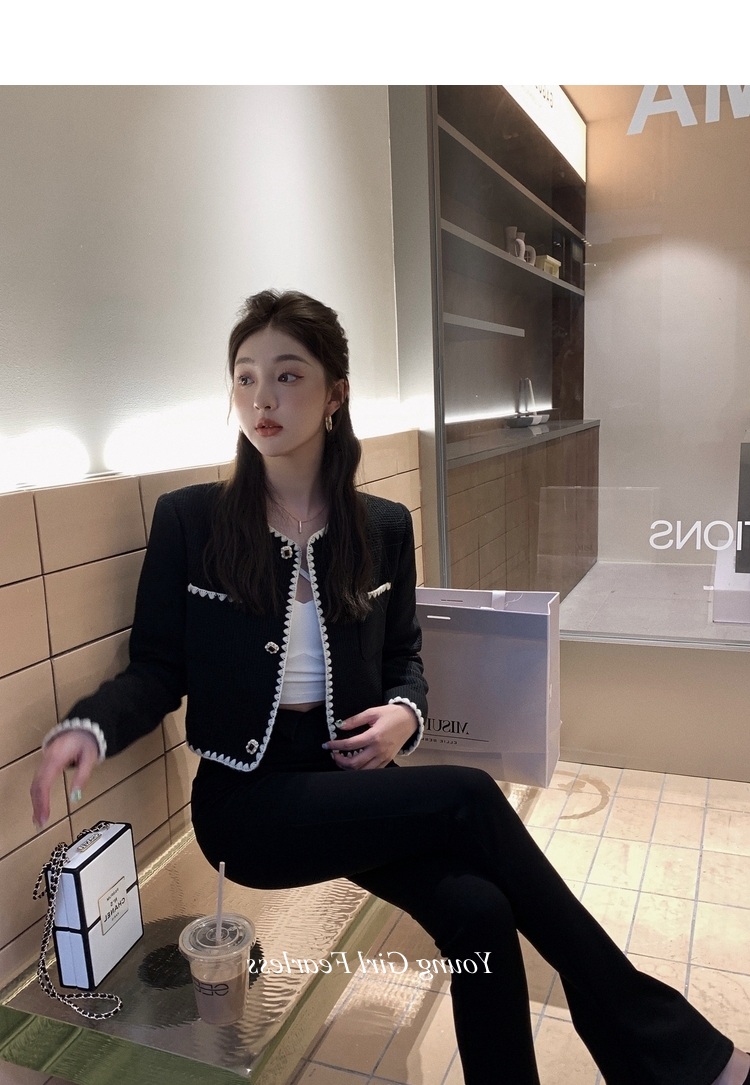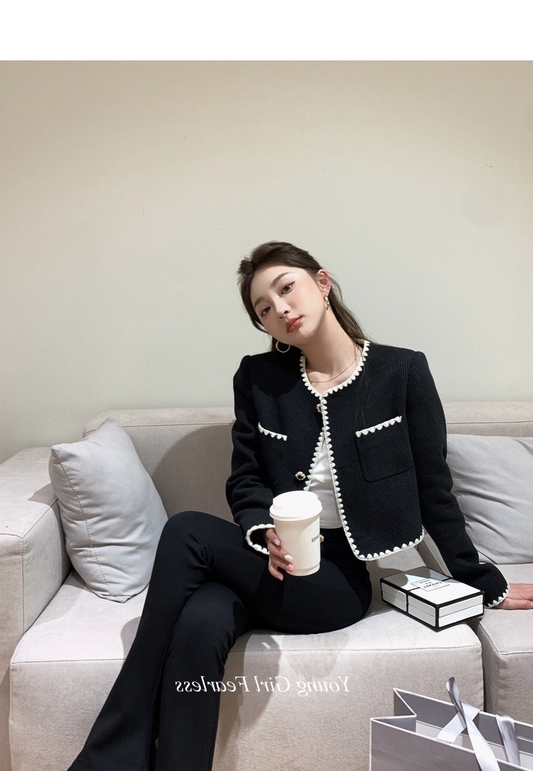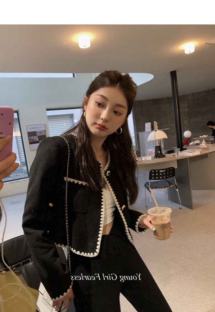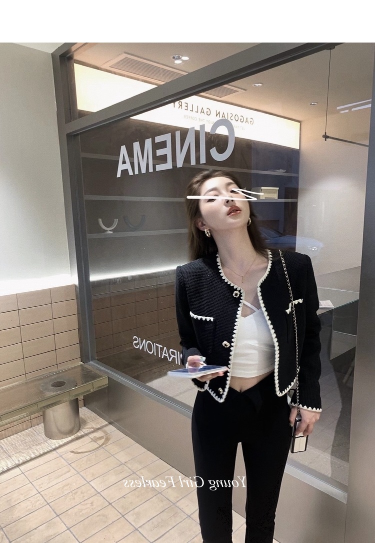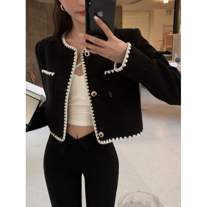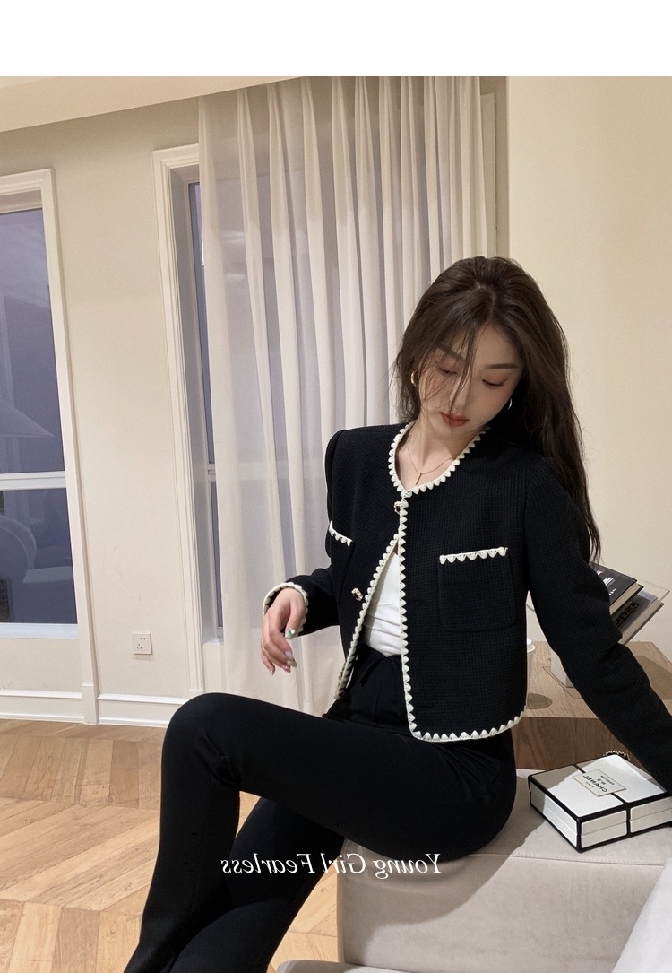 2025春秋新款撞色百搭黑色小香風短外套女名媛高級感小衆簡約上衣