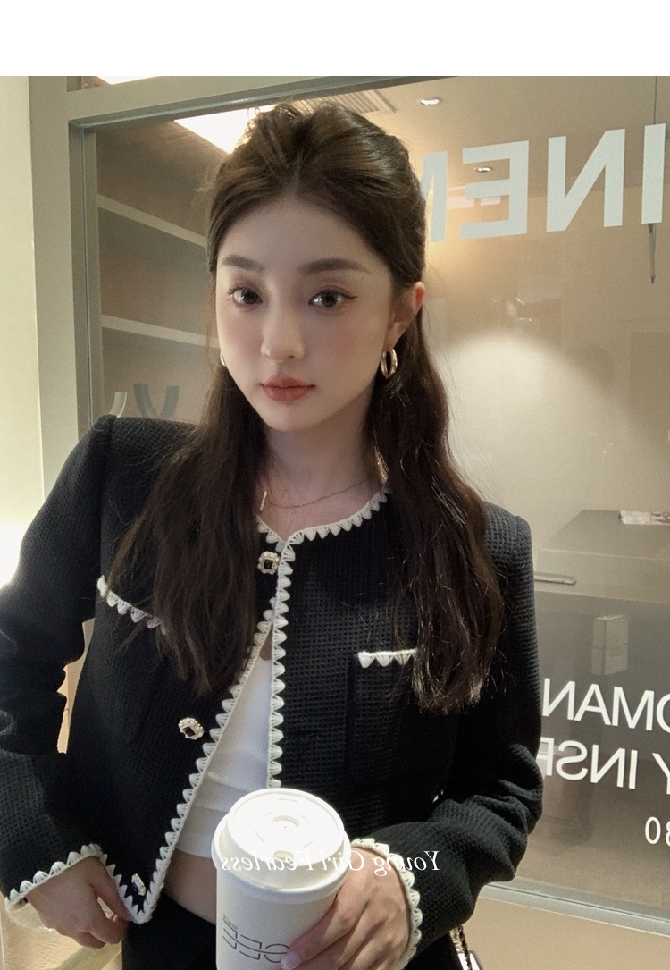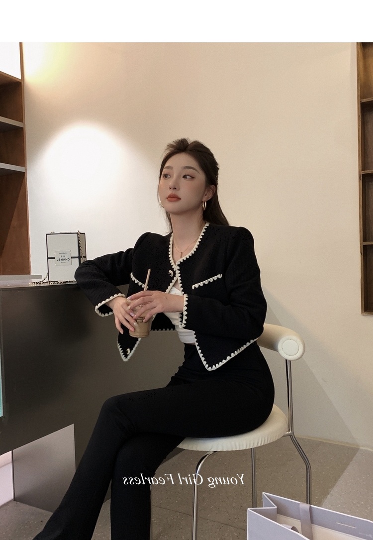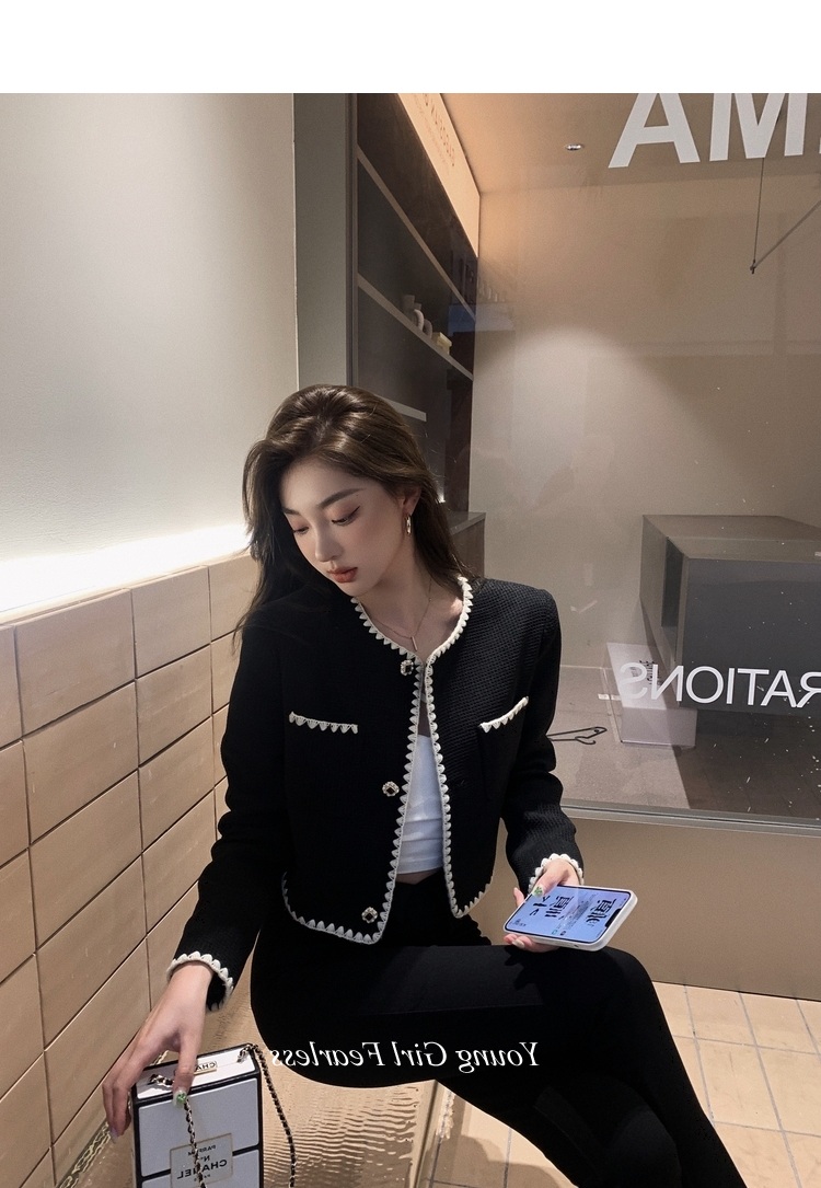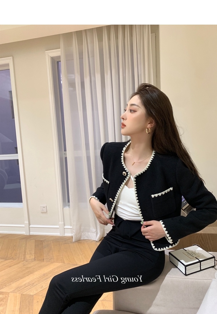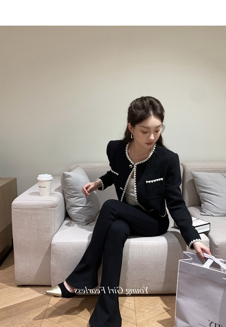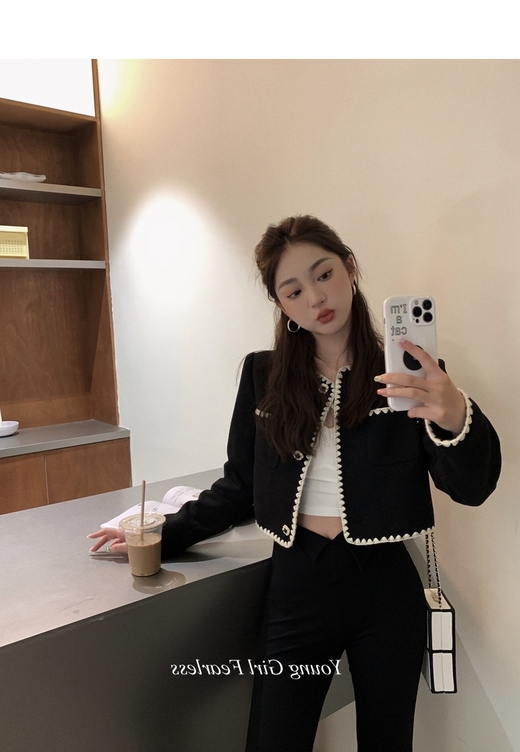 2025春秋新款撞色百搭黑色小香風短外套女名媛高級感小衆簡約上衣