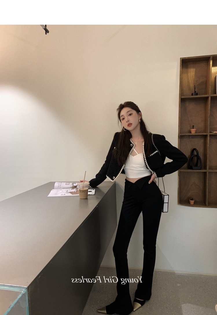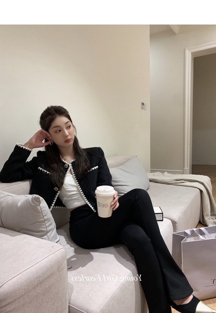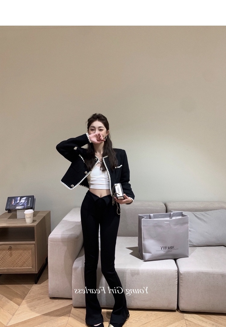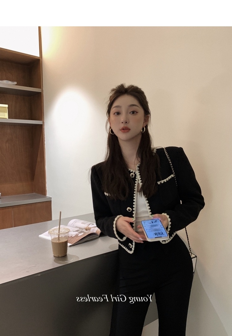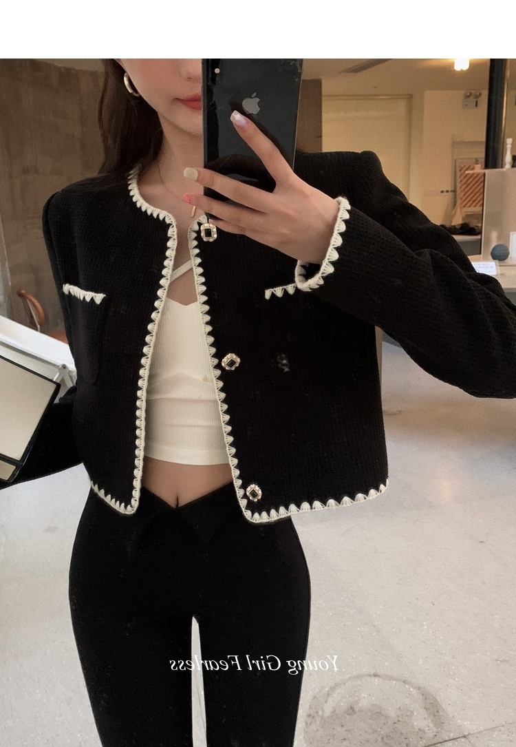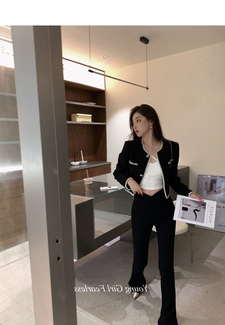 2025春秋新款撞色百搭黑色小香風短外套女名媛高級感小衆簡約上衣