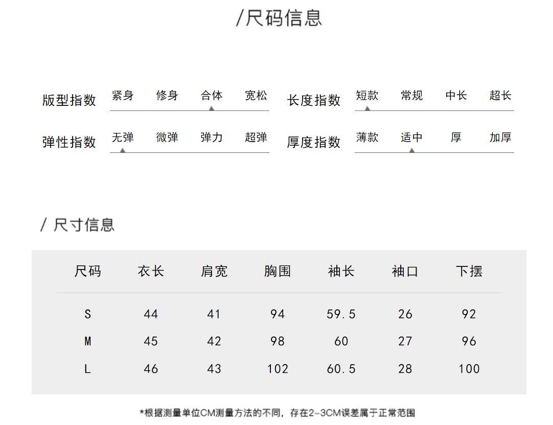 | 衣長 | 短款 |