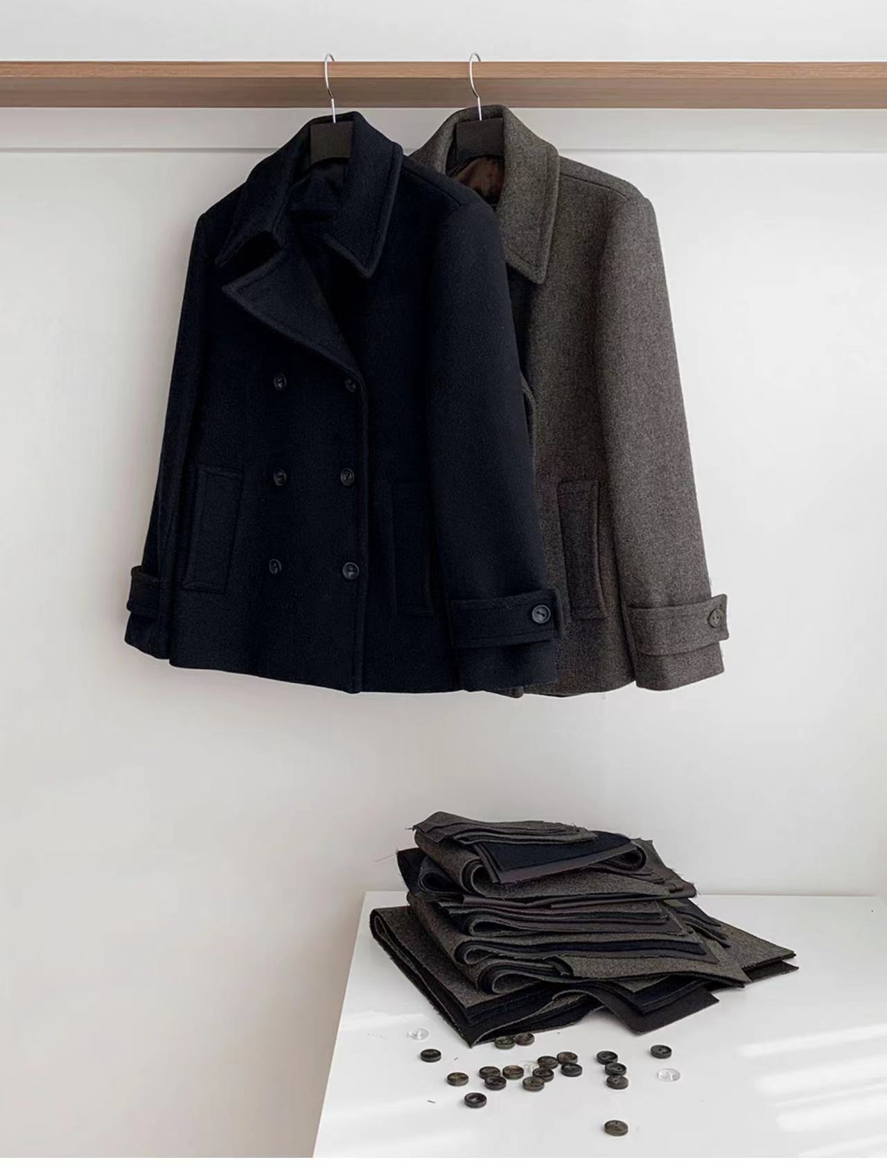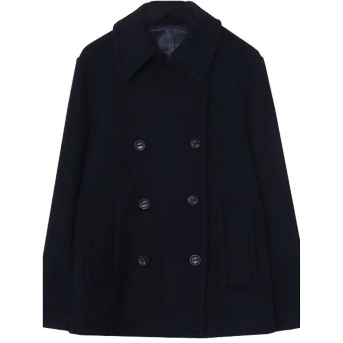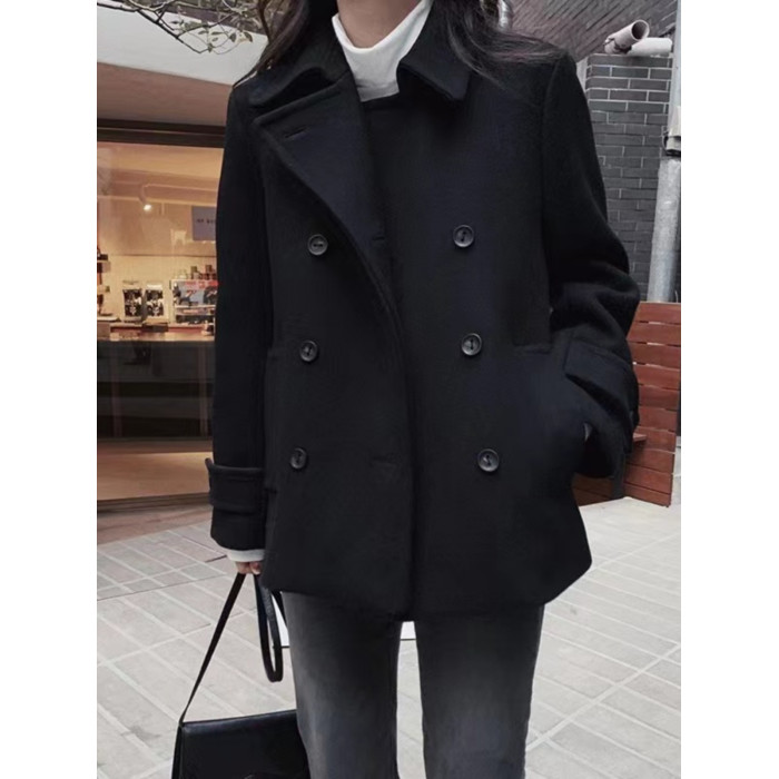 黑色短款小個子加棉毛呢外套女25秋冬學生雙排釦寬松百搭呢子大衣