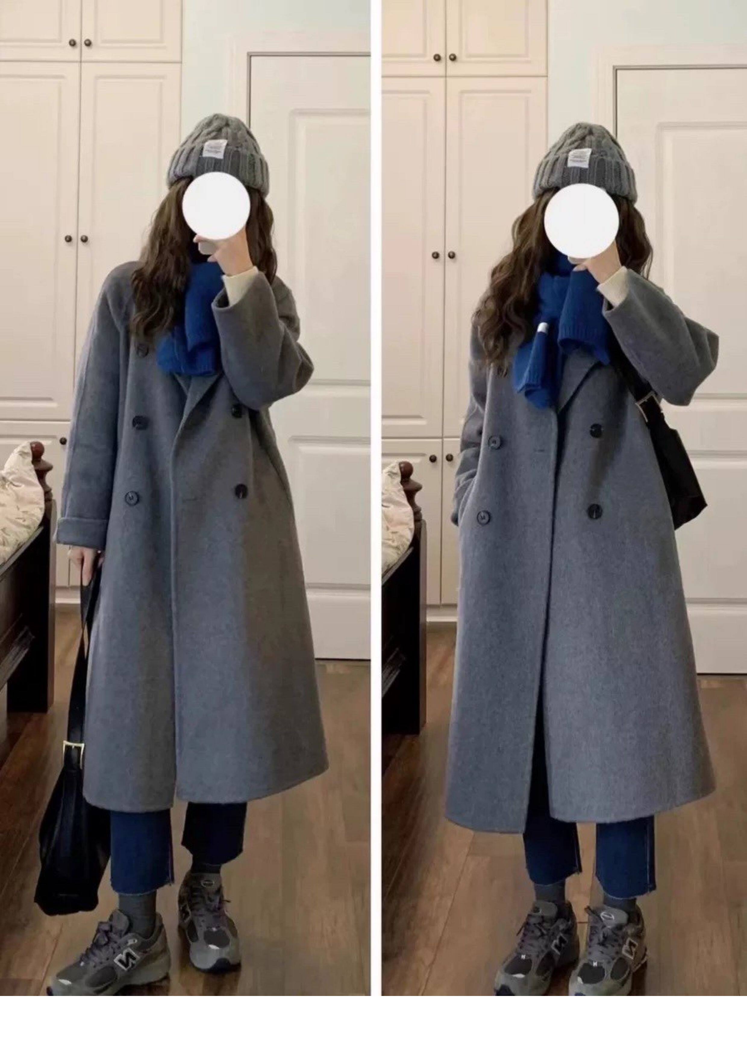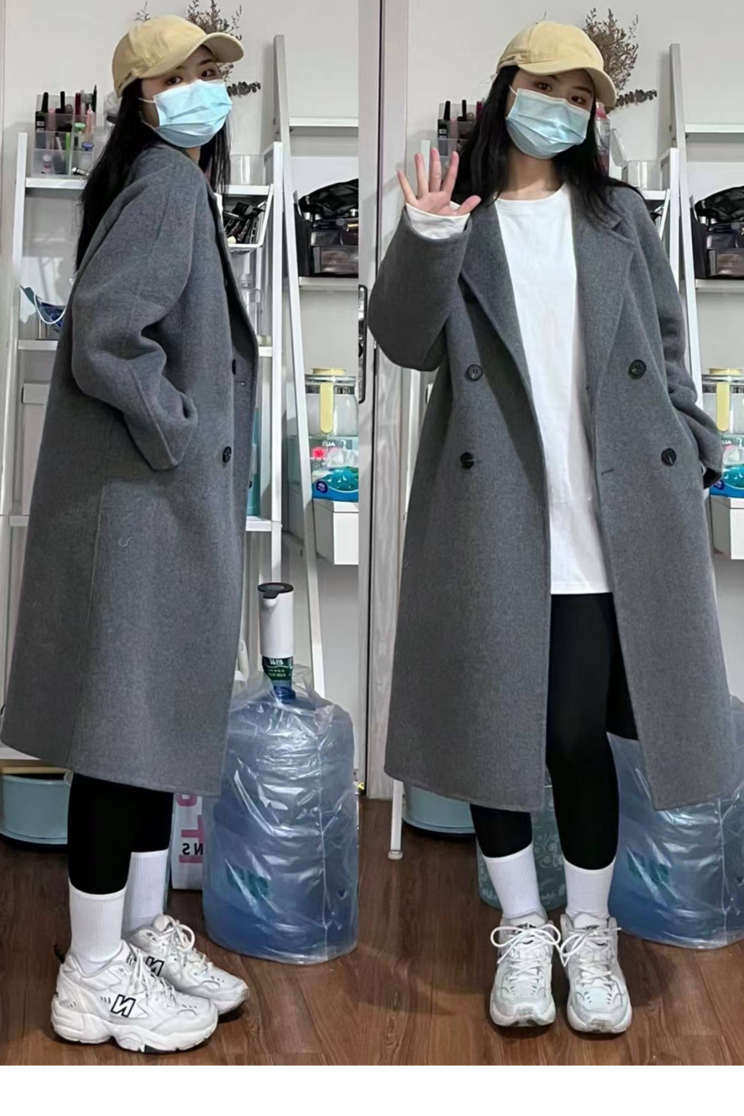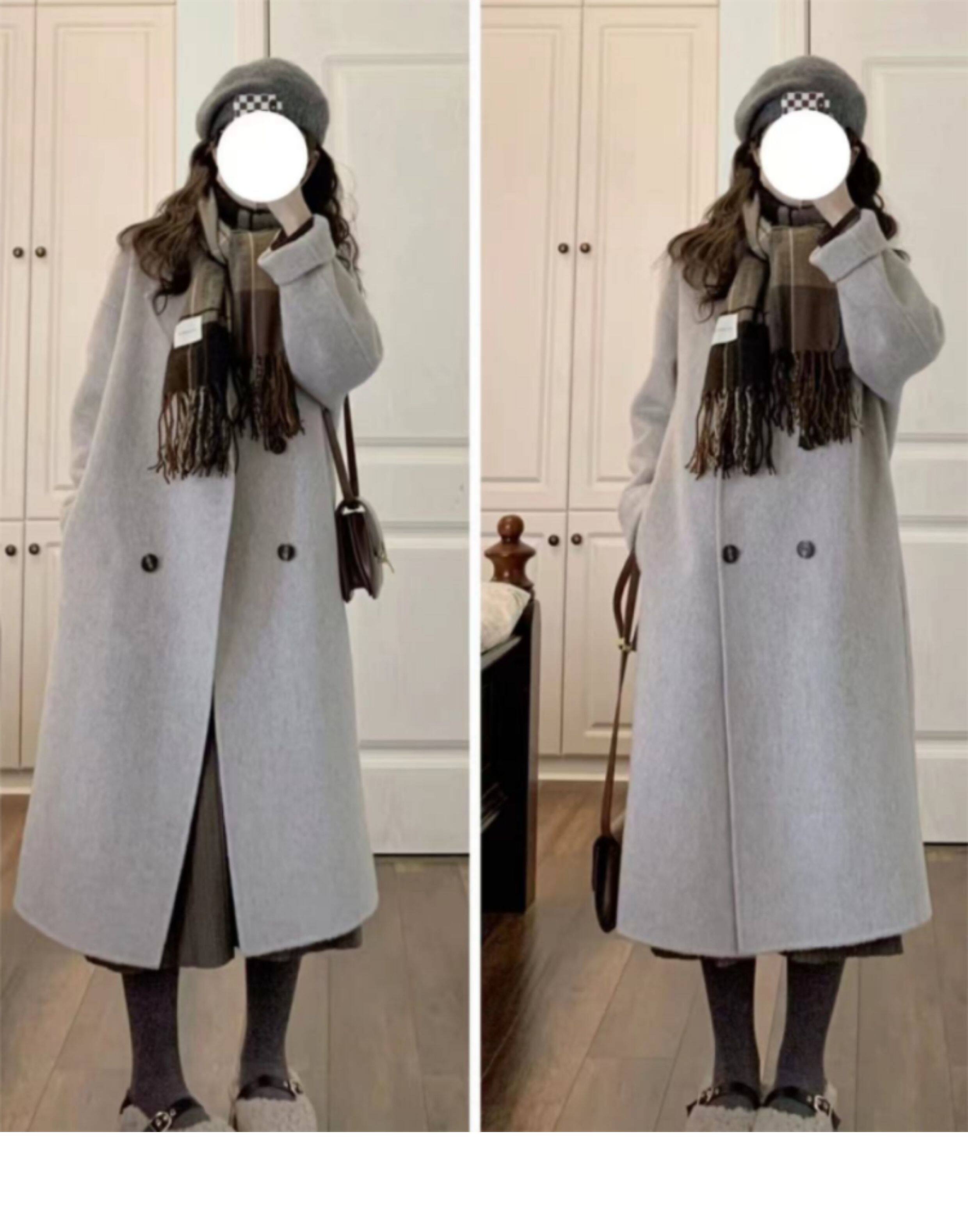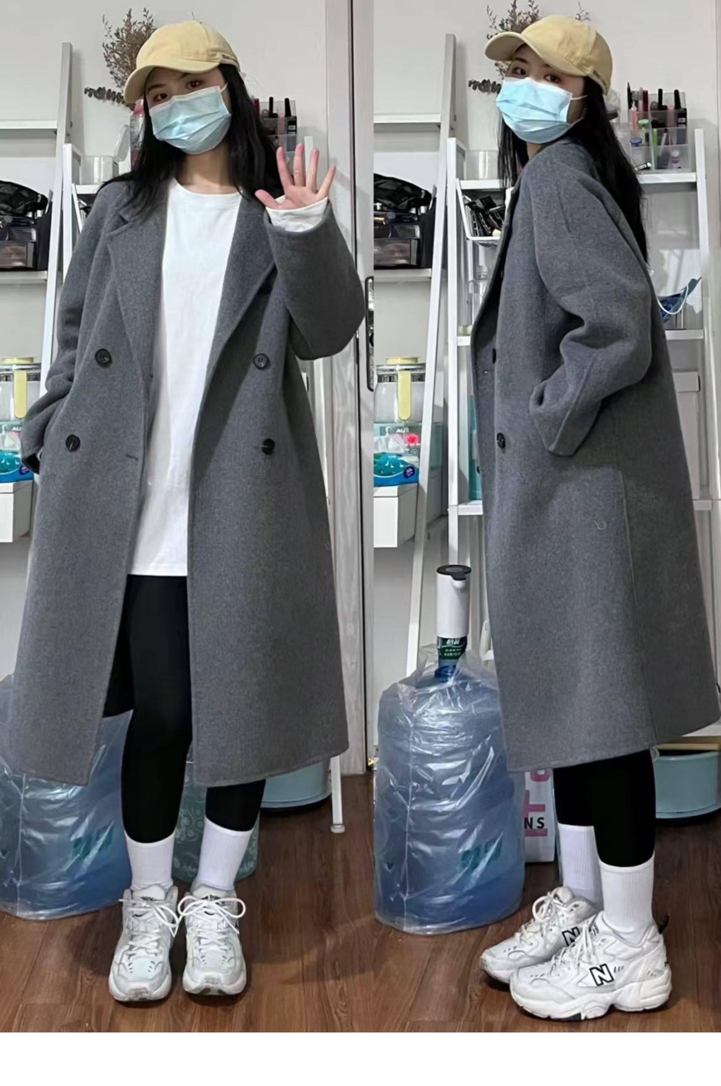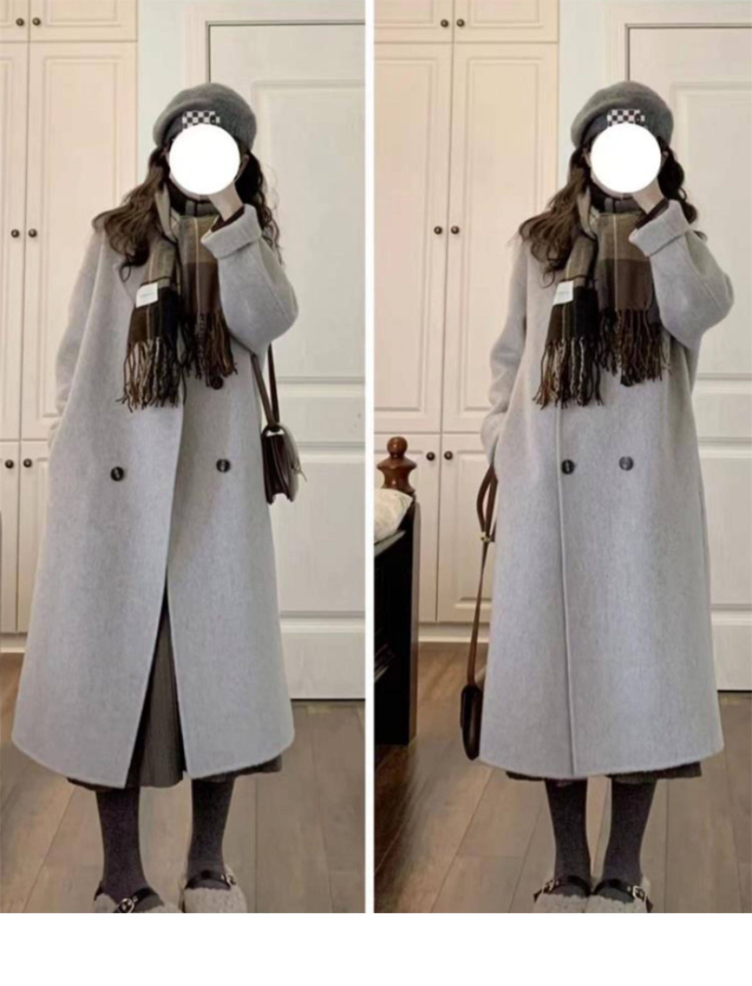 毛呢外套女2025年秋冬韓版加厚雙排釦小個子灰色呢子大衣女中長款