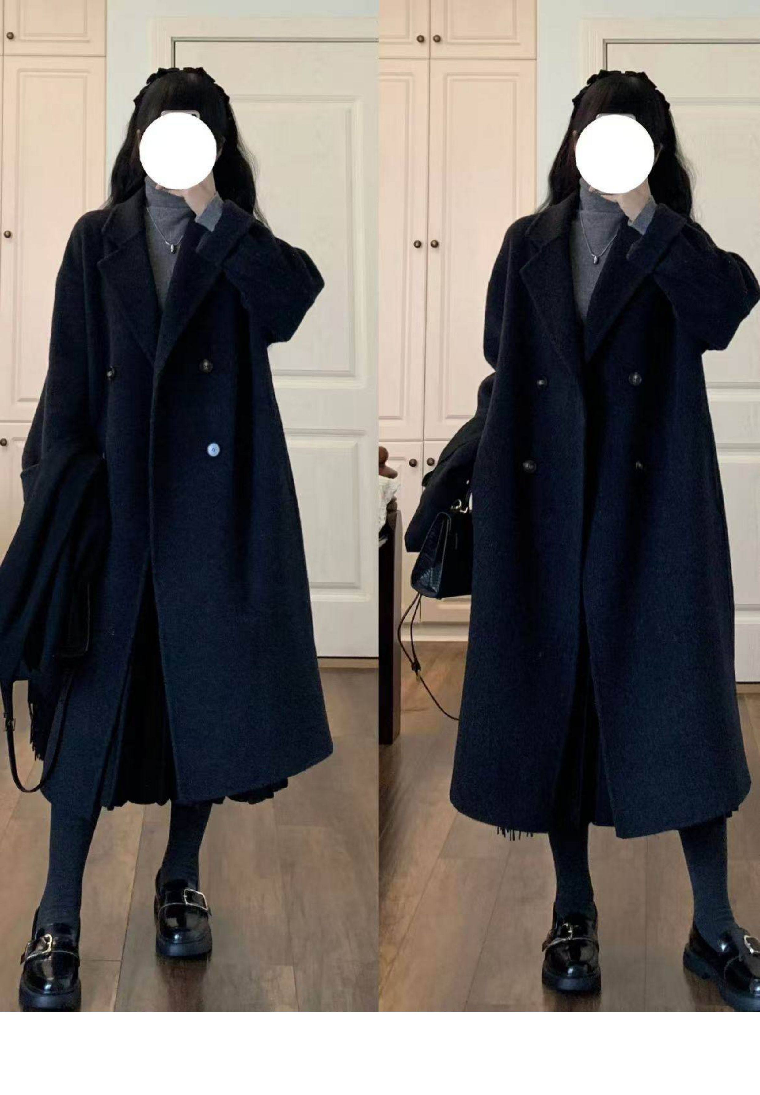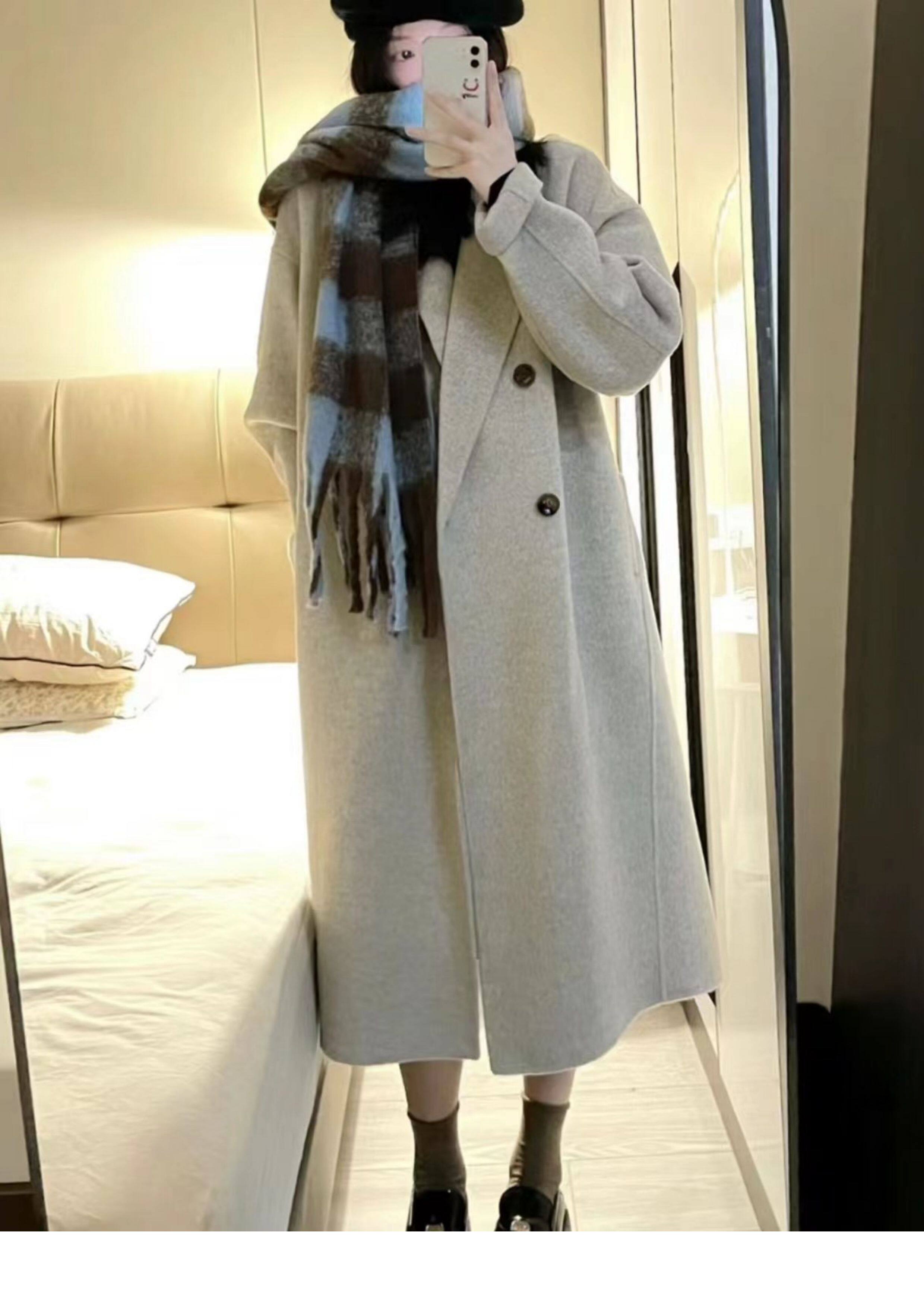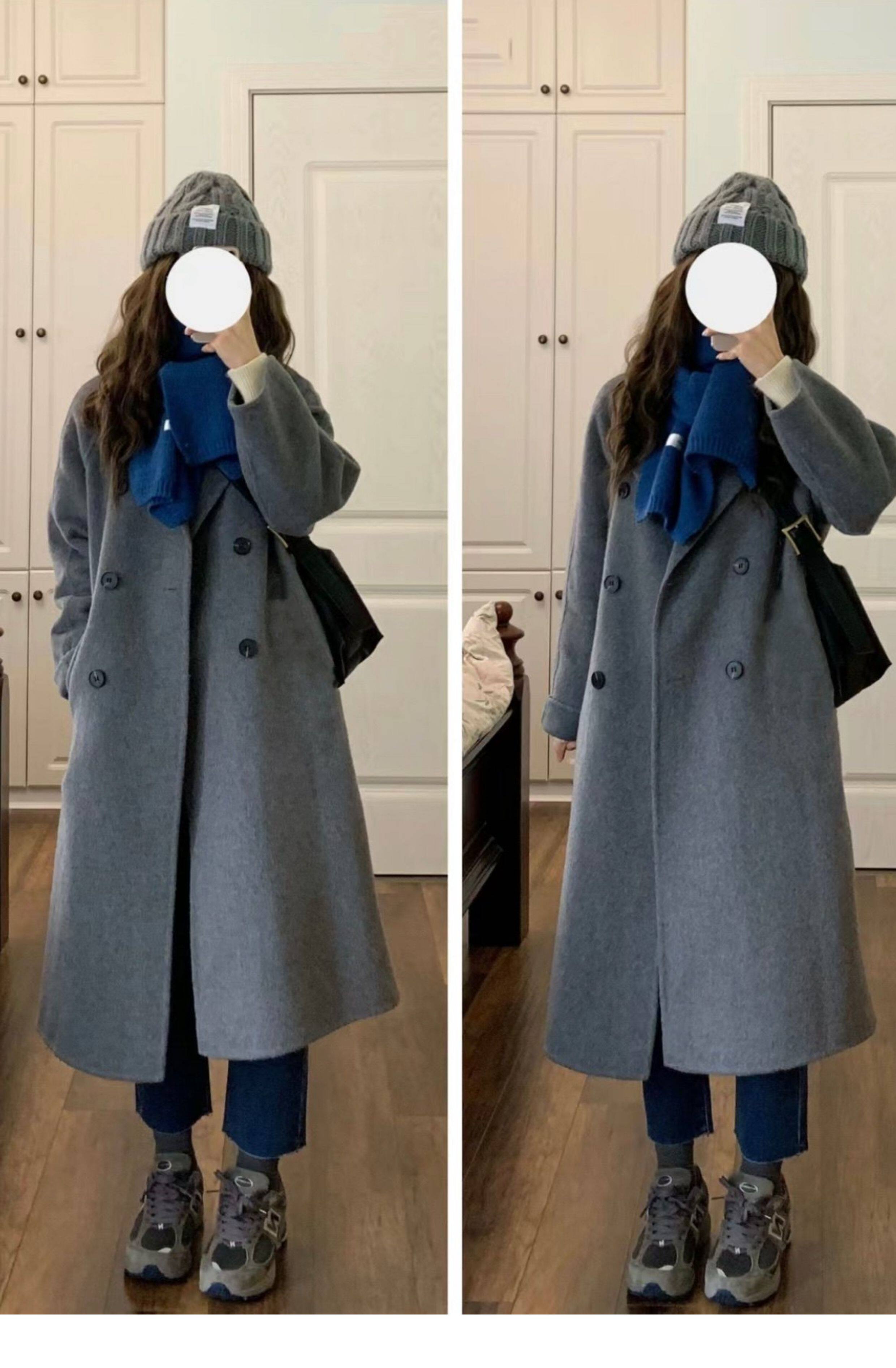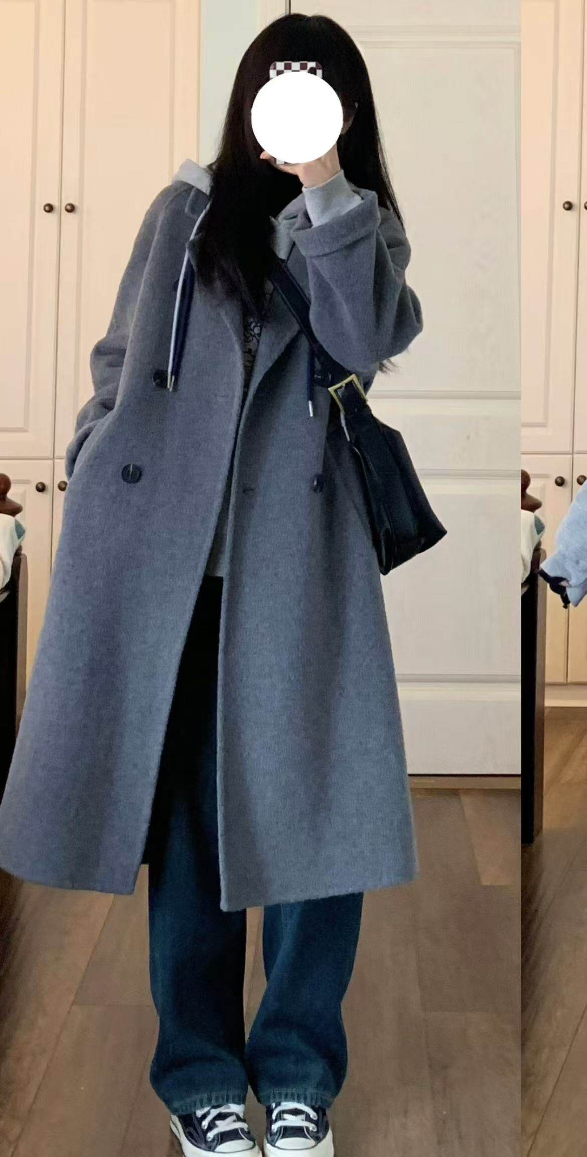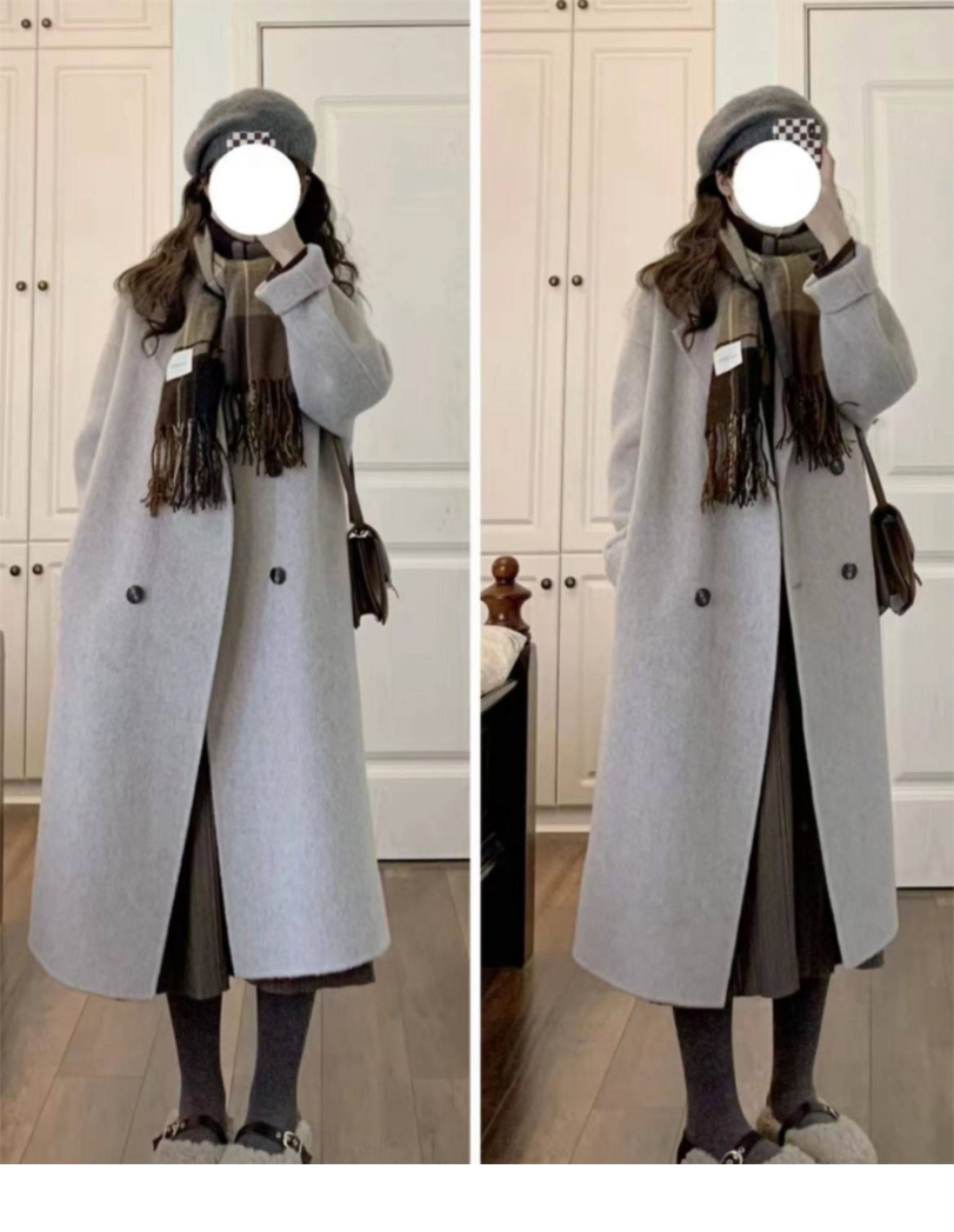 毛呢外套女2025年秋冬韓版加厚雙排釦小個子灰色呢子大衣女中長款