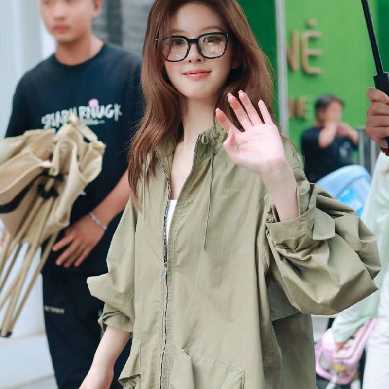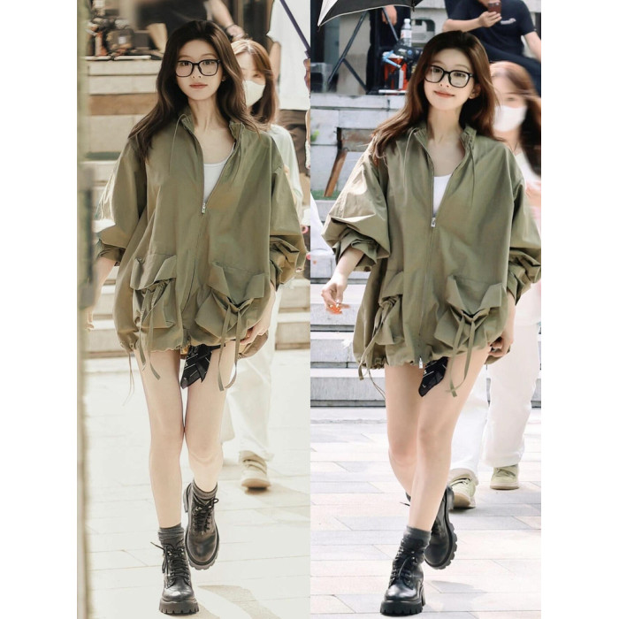 許我耀眼許妍同款軍綠色工裝外套寬松百搭慵懶的春秋開衫夾克女