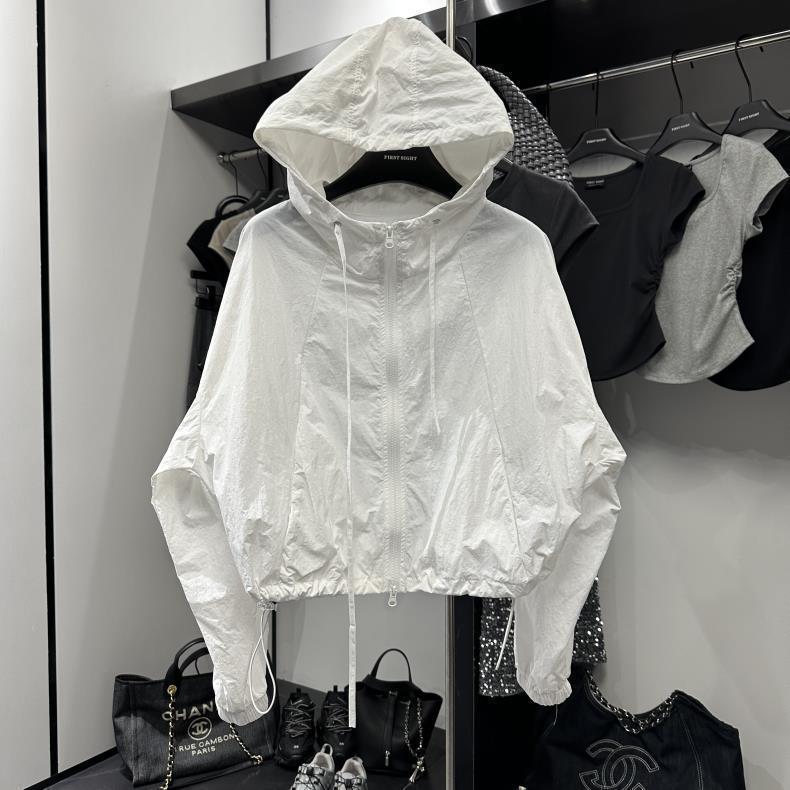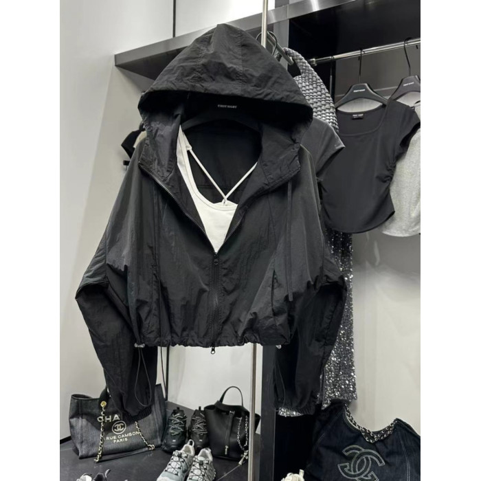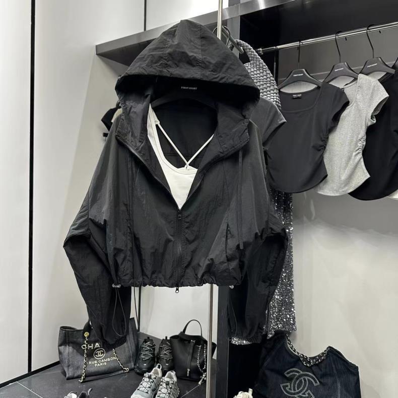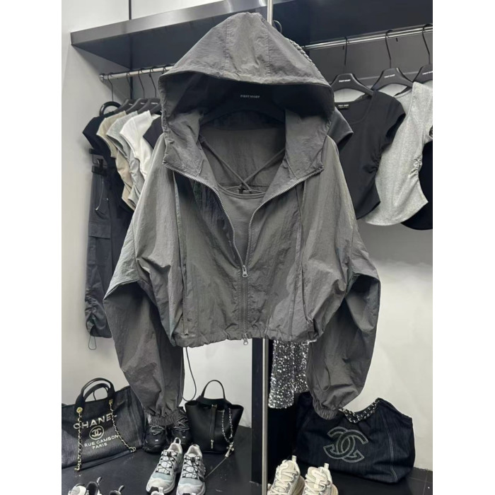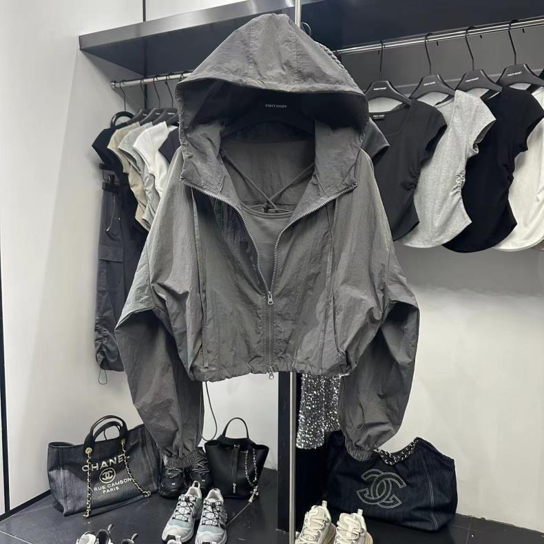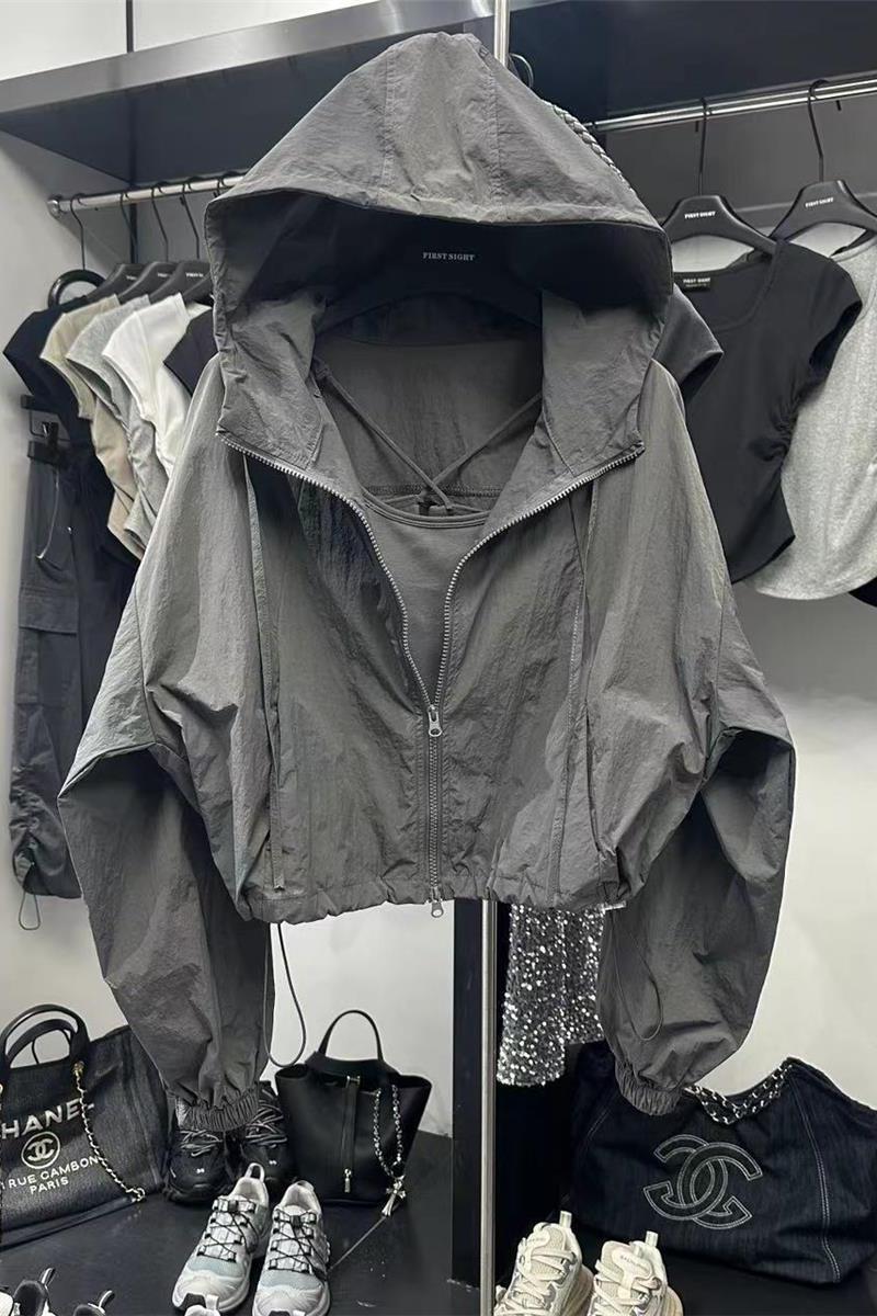 高級感灰色沖鋒衣外套女2024夏季新款寬松休閒百搭短款工裝防曬衣