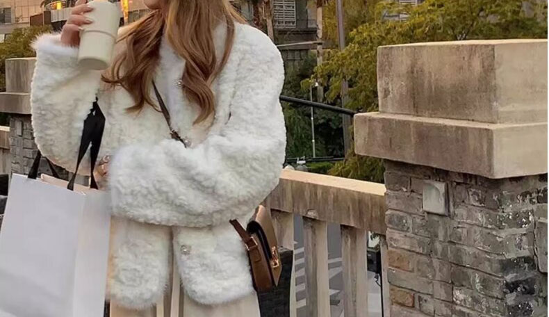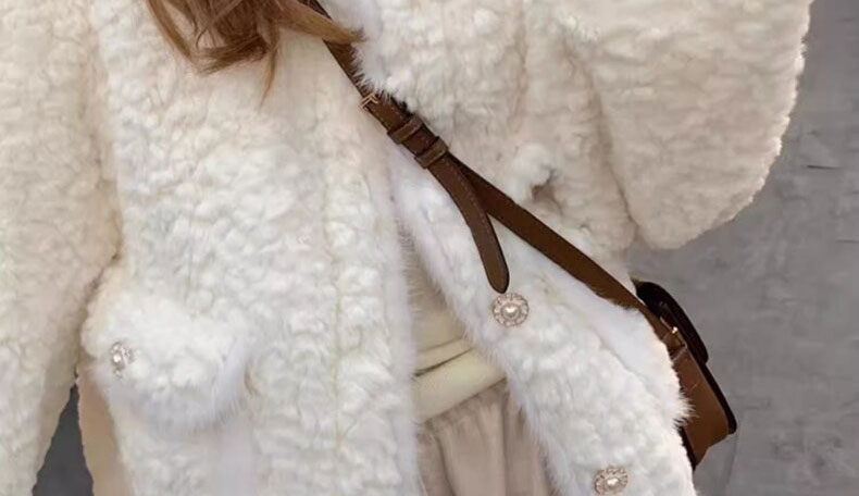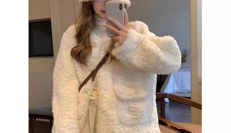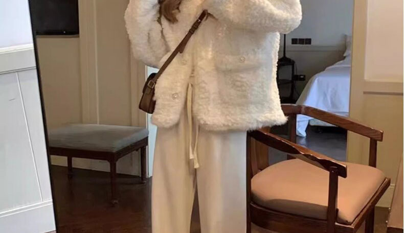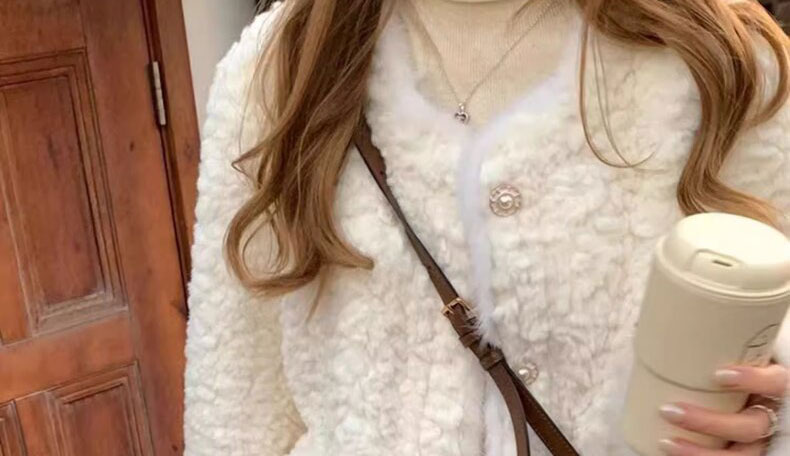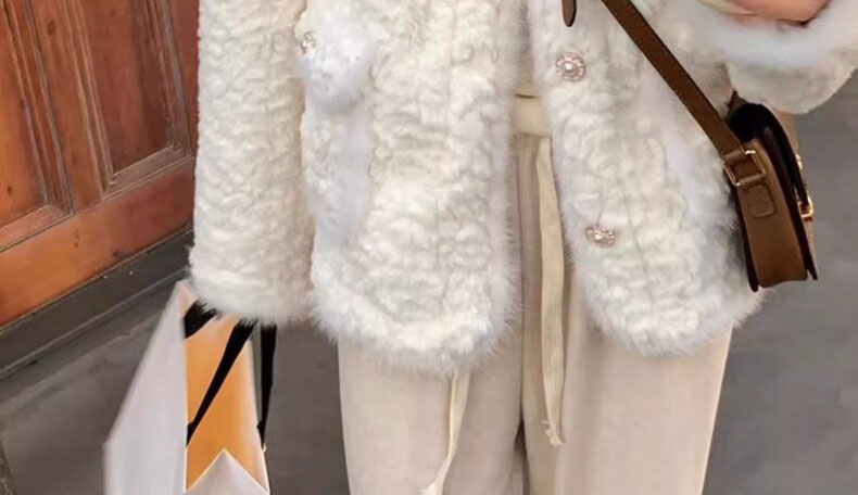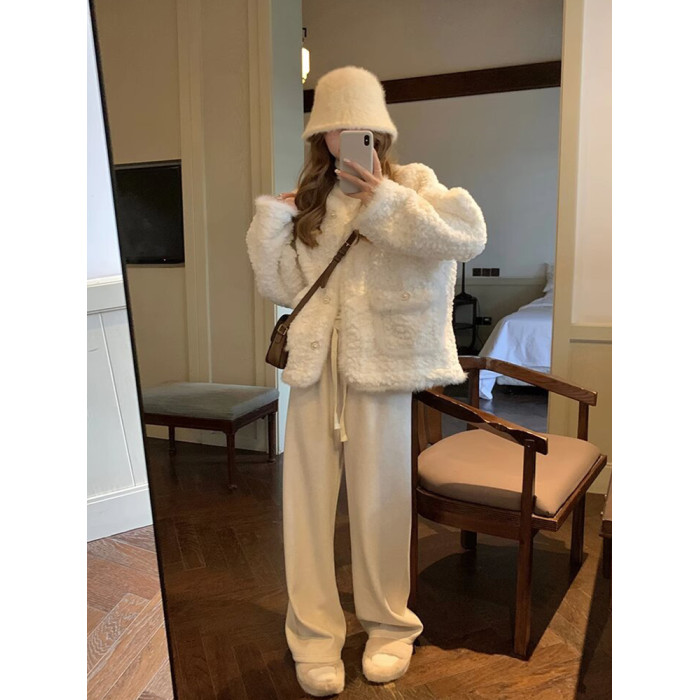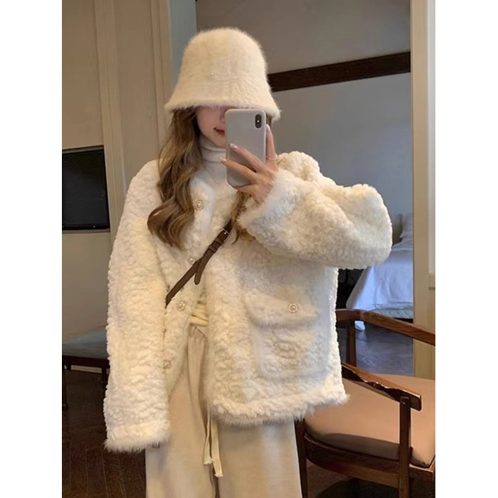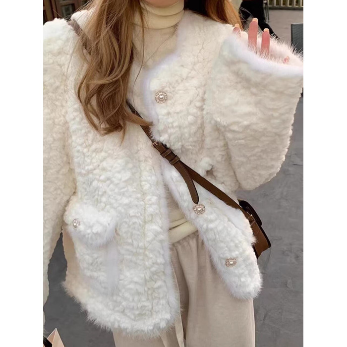 白色小香風毛絨皮毛一體羊羔毛外套女小個子秋冬加厚棉服2024冬季