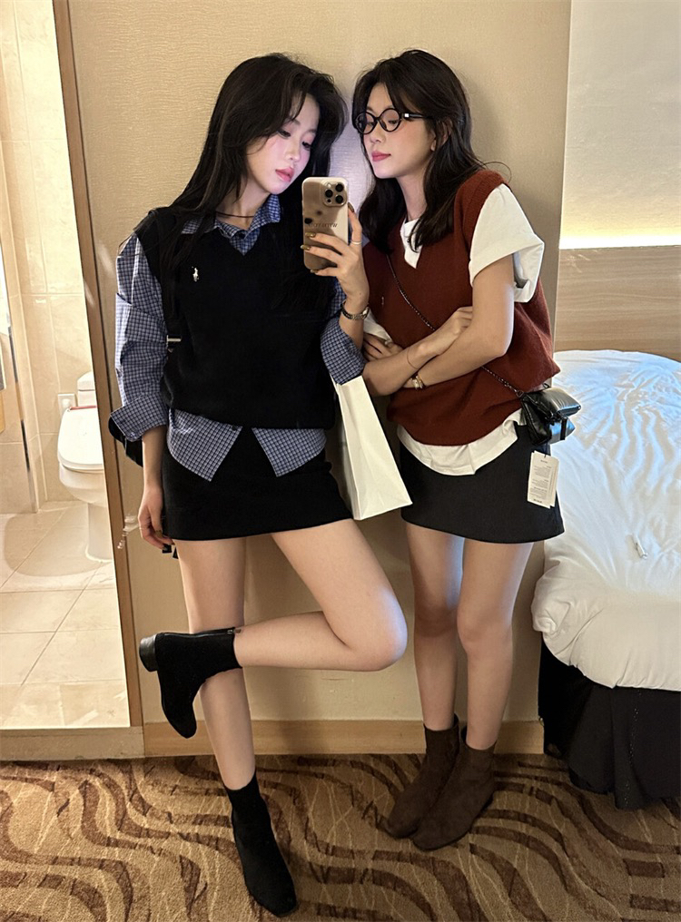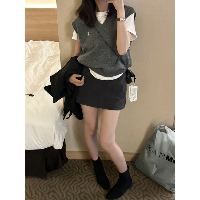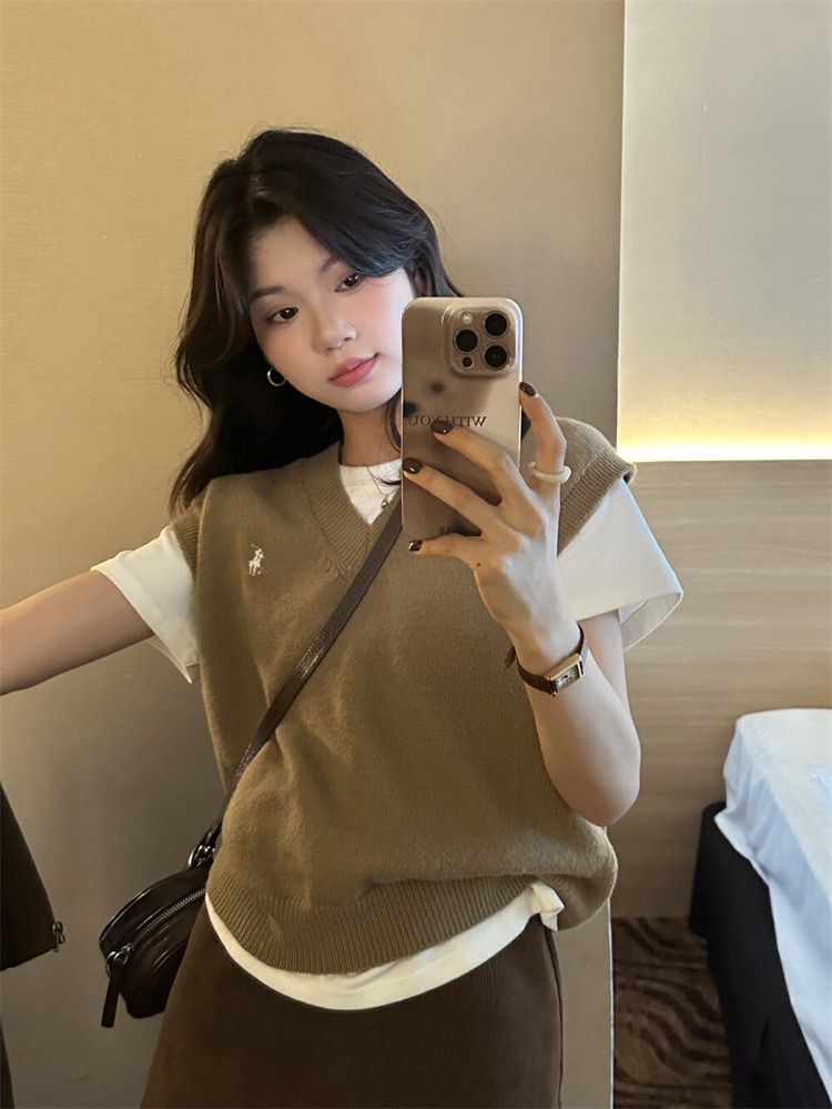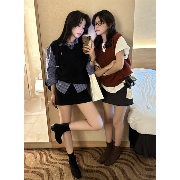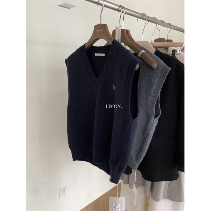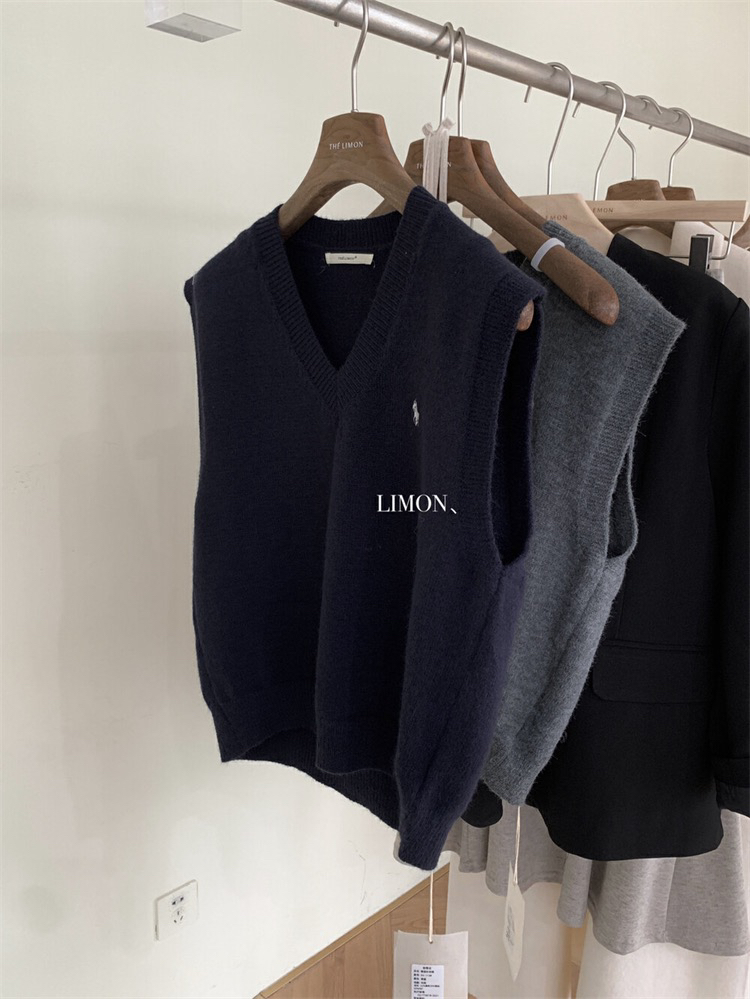 春秋冬季黑色針織馬甲背心女曡穿襯衫v領羊毛坎肩無袖毛衣學院風
