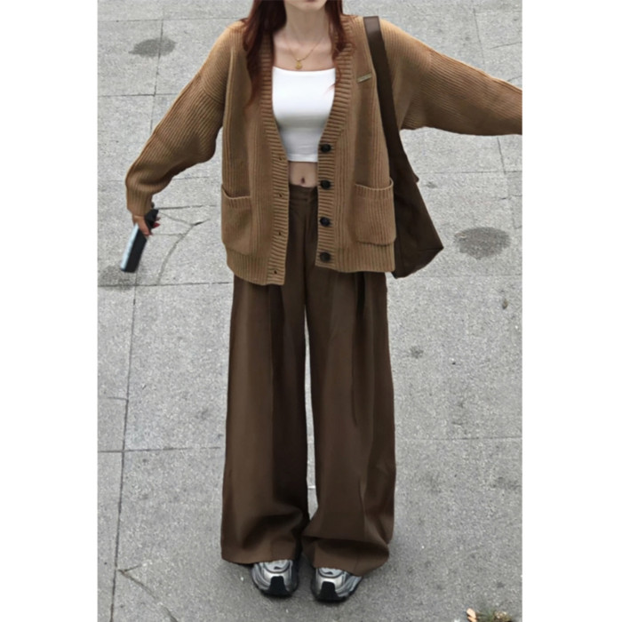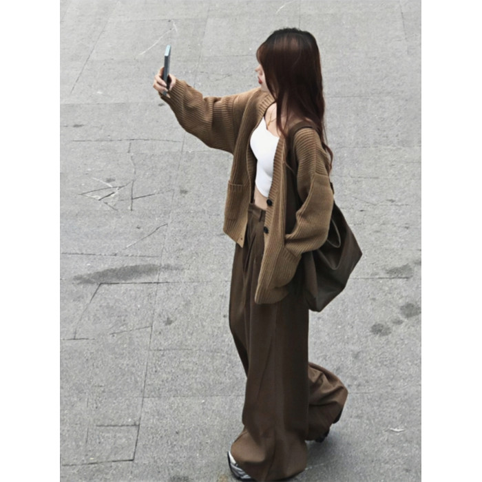 韓系美拉德焦糖苔原風穿搭針織開衫毛衣外套小香風女2025新款秋季