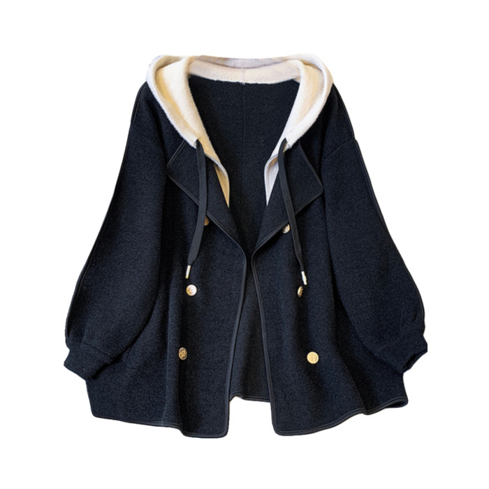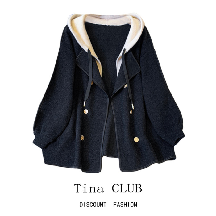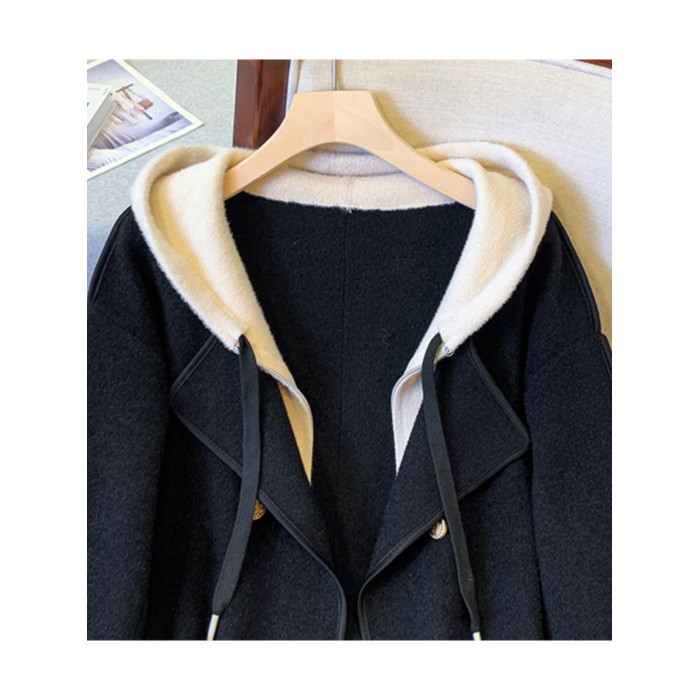 Tina CLUB大碼女裝胖mm秋冬季高級感雙面羊絨大衣假兩件毛呢外套