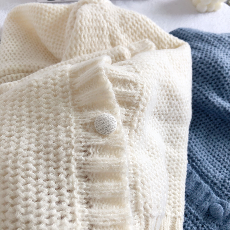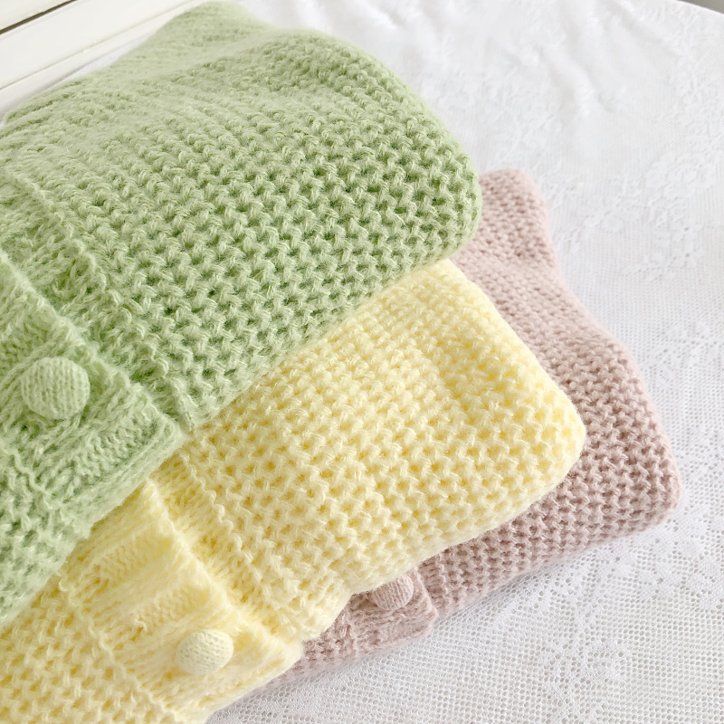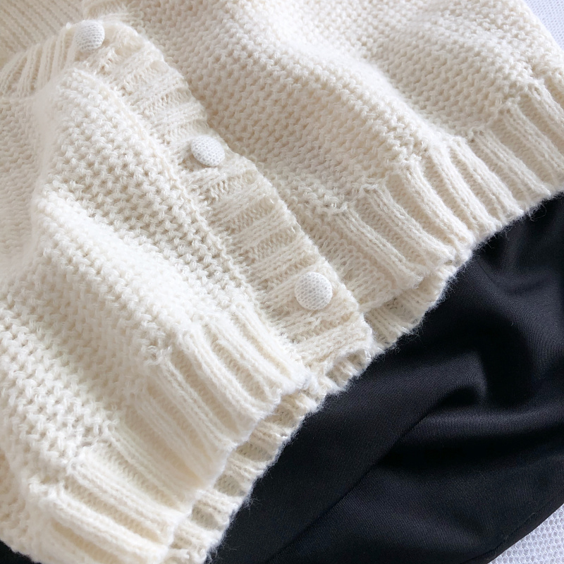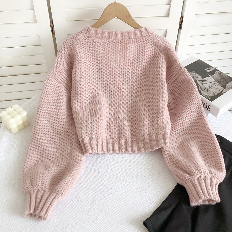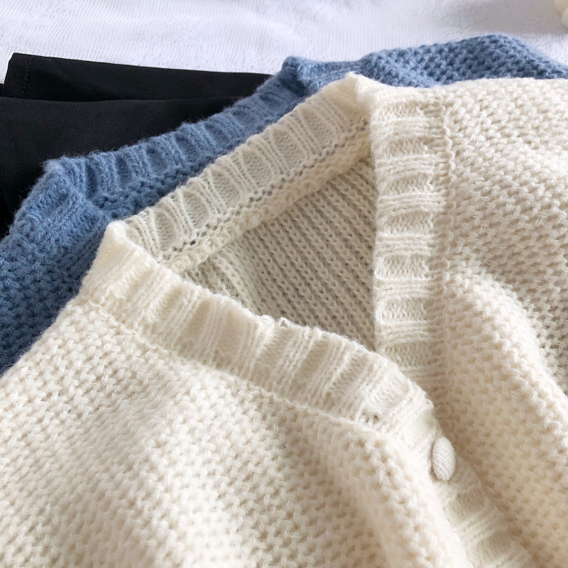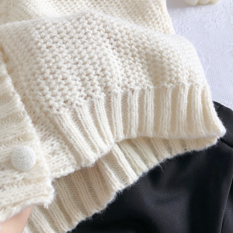 甜美溫柔慵懶風V領長袖排釦針織秋冬開衫小外套純色短款毛衣女