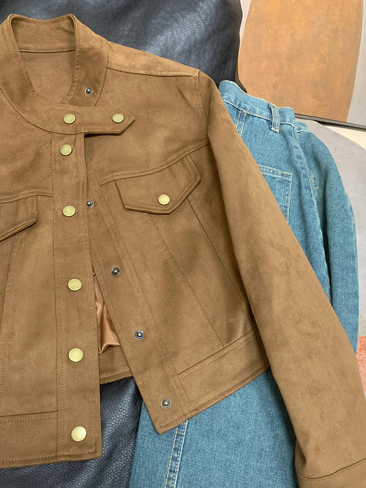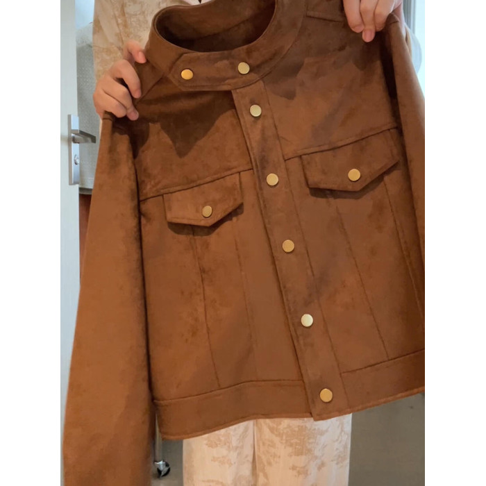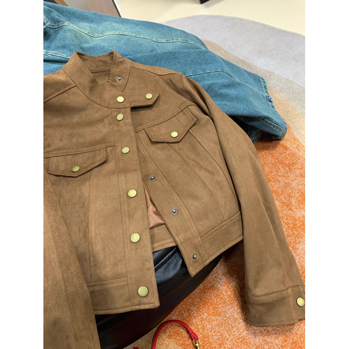 短款麂皮絨外套女春秋新款2025爆款洋氣流行小個子高級感夾克上衣