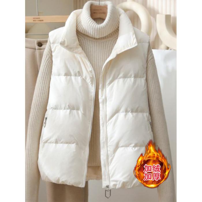 秋冬季加絨加厚坎肩馬甲女款2025洋氣百搭馬夾小個子羽絨背心外套