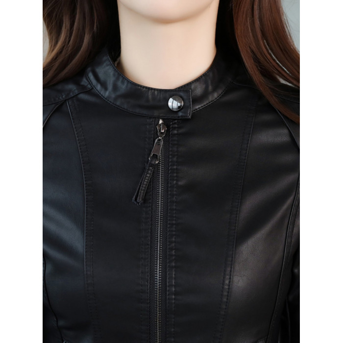 小皮衣外套女2025年春秋加厚冬修身加棉休閒立領收腰海甯pu皮夾克