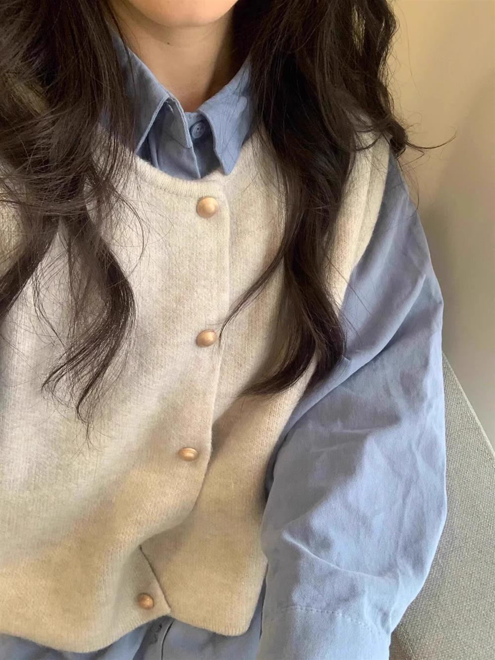 溫柔系單排釦小金釦子氣質百搭針織馬甲背心女曡穿內搭坎肩上衣女