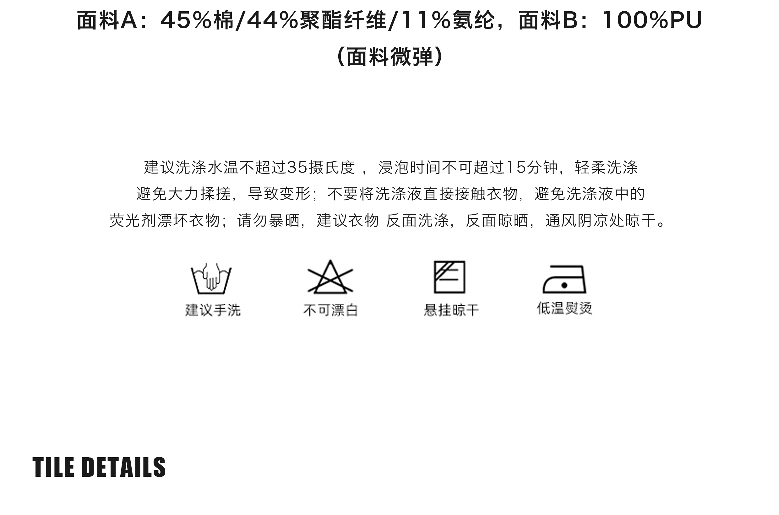 材質成分 棉45% 新型聚酯纖維44% 聚氨酯彈性纖維(氨綸)11%