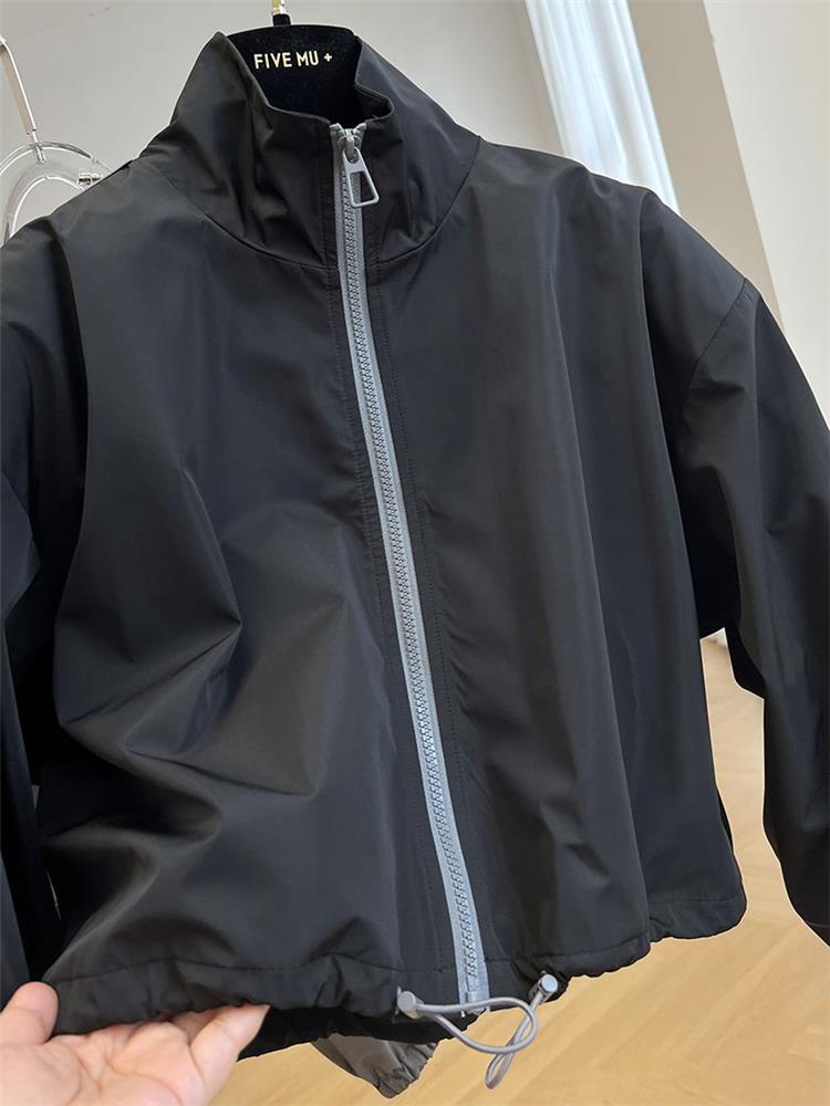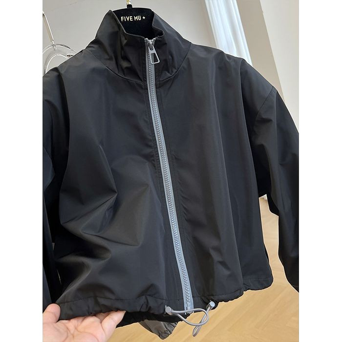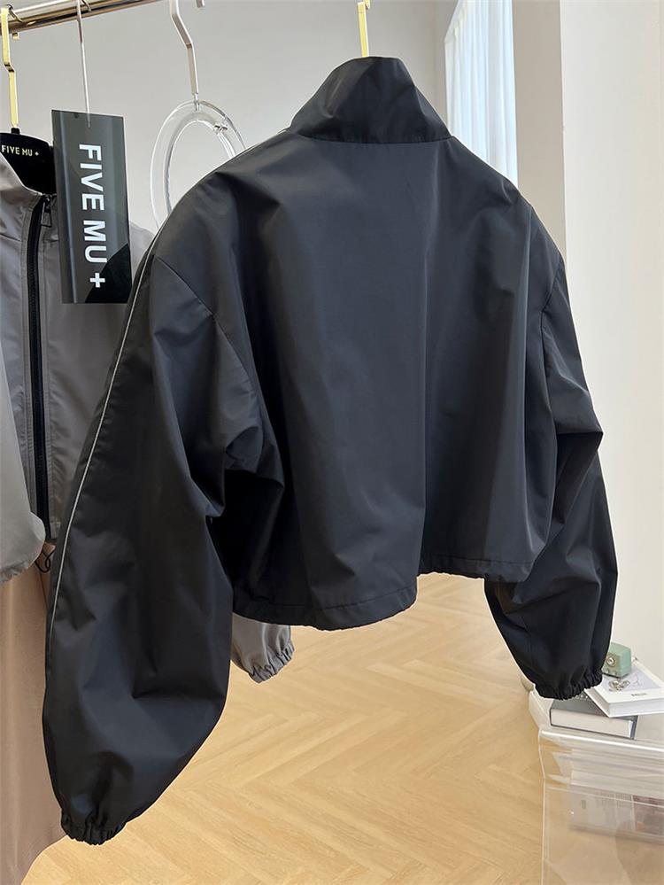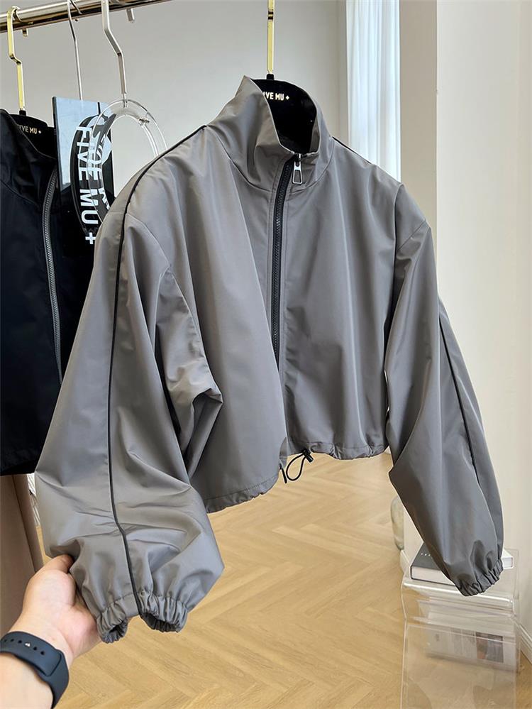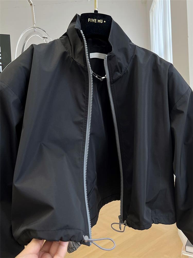 歐貨剪標高級設計感立領短款薄外套女春小個子洋氣沖鋒衣休閒夾克