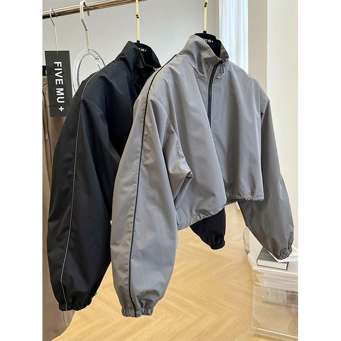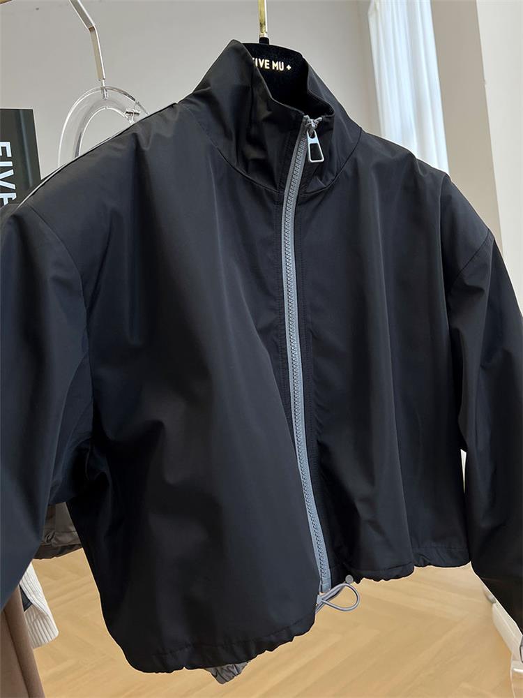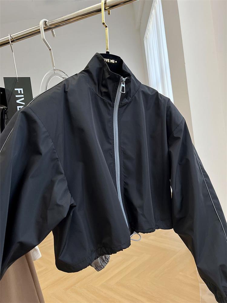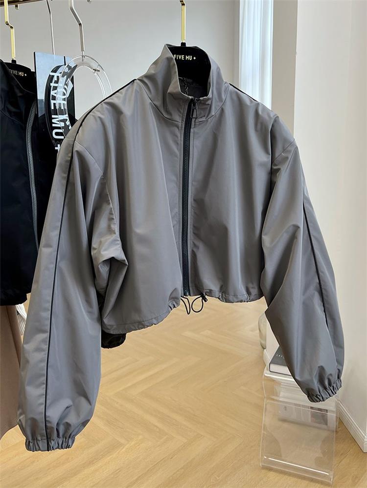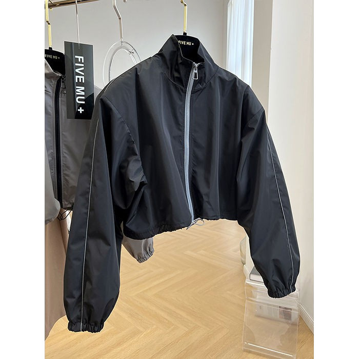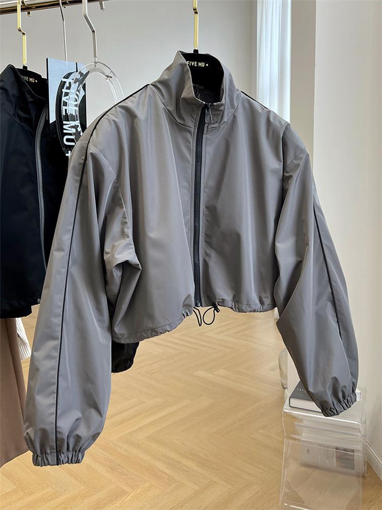 歐貨剪標高級設計感立領短款薄外套女春小個子洋氣沖鋒衣休閒夾克