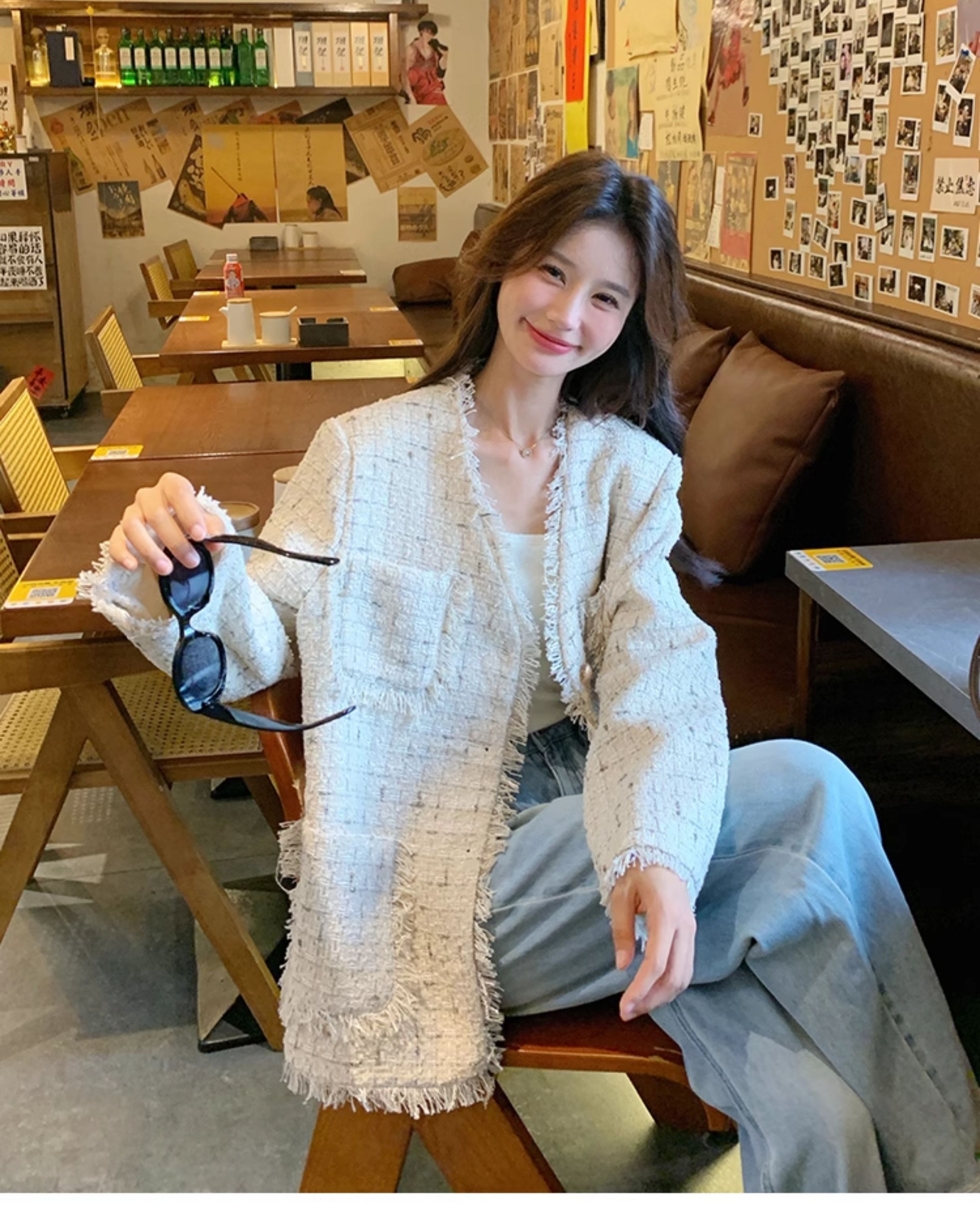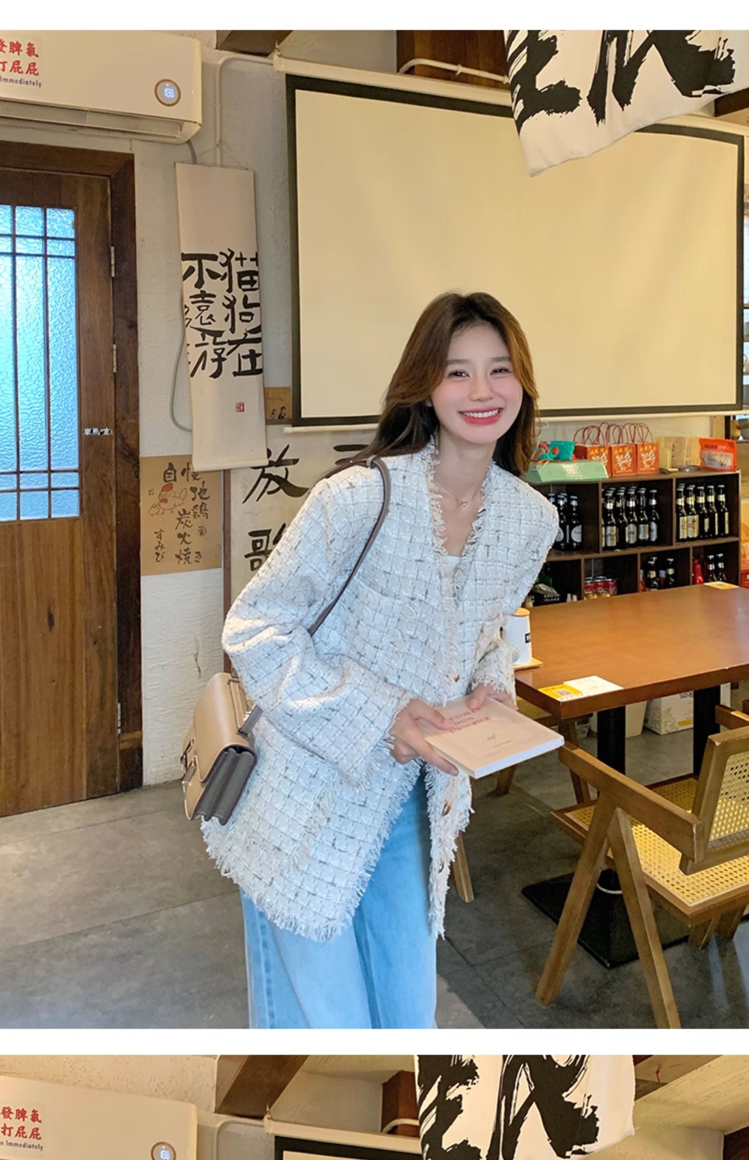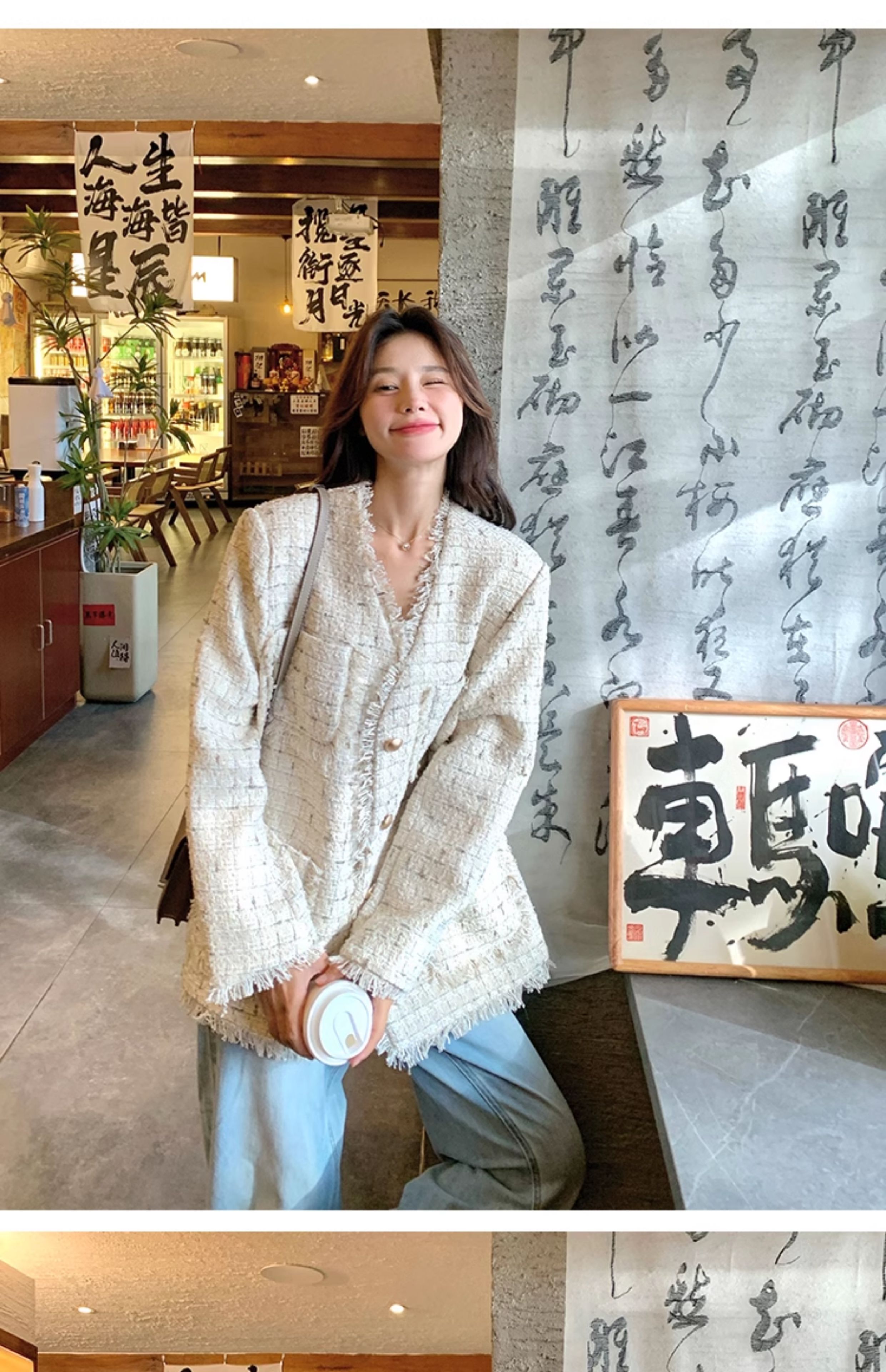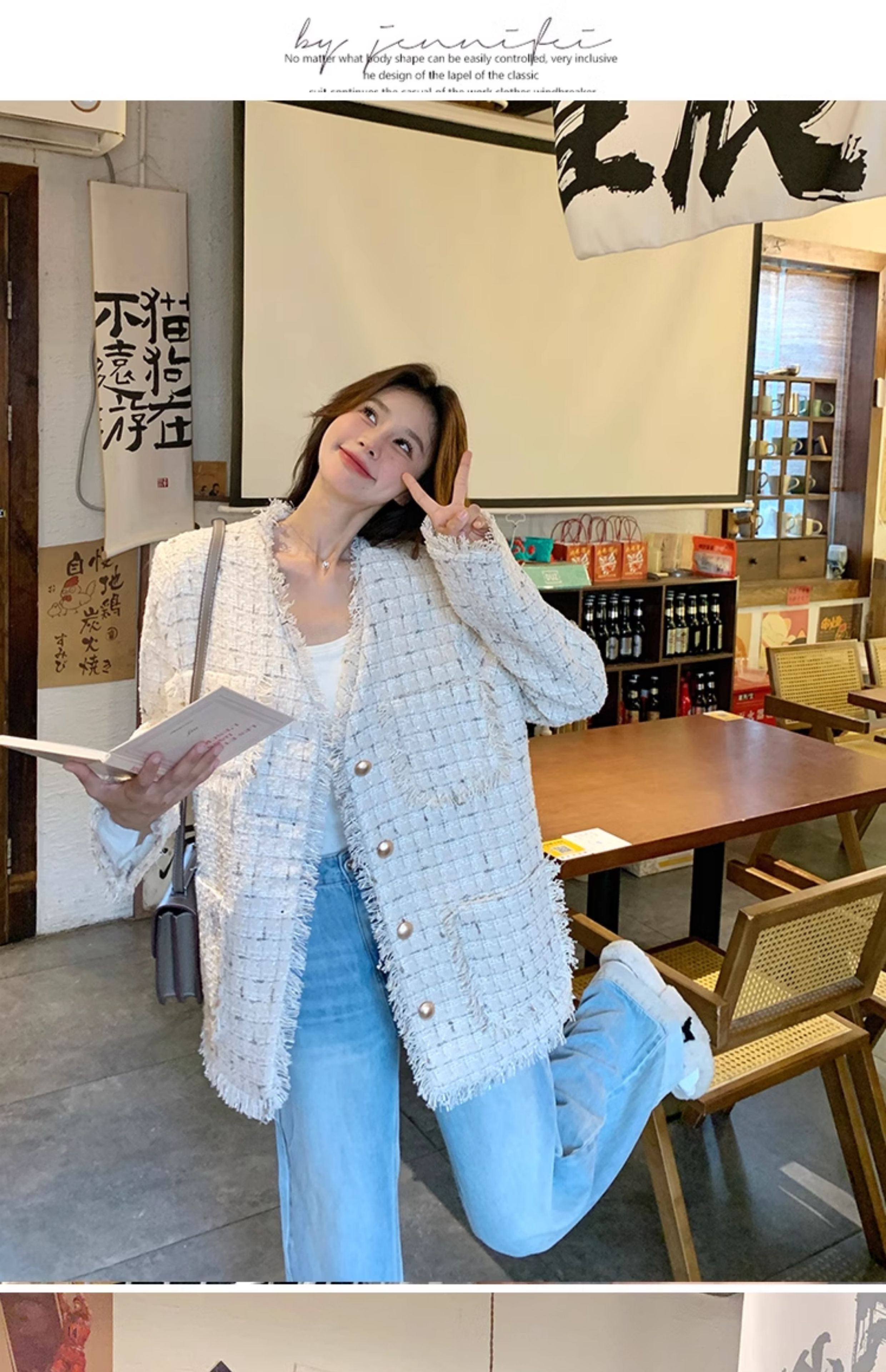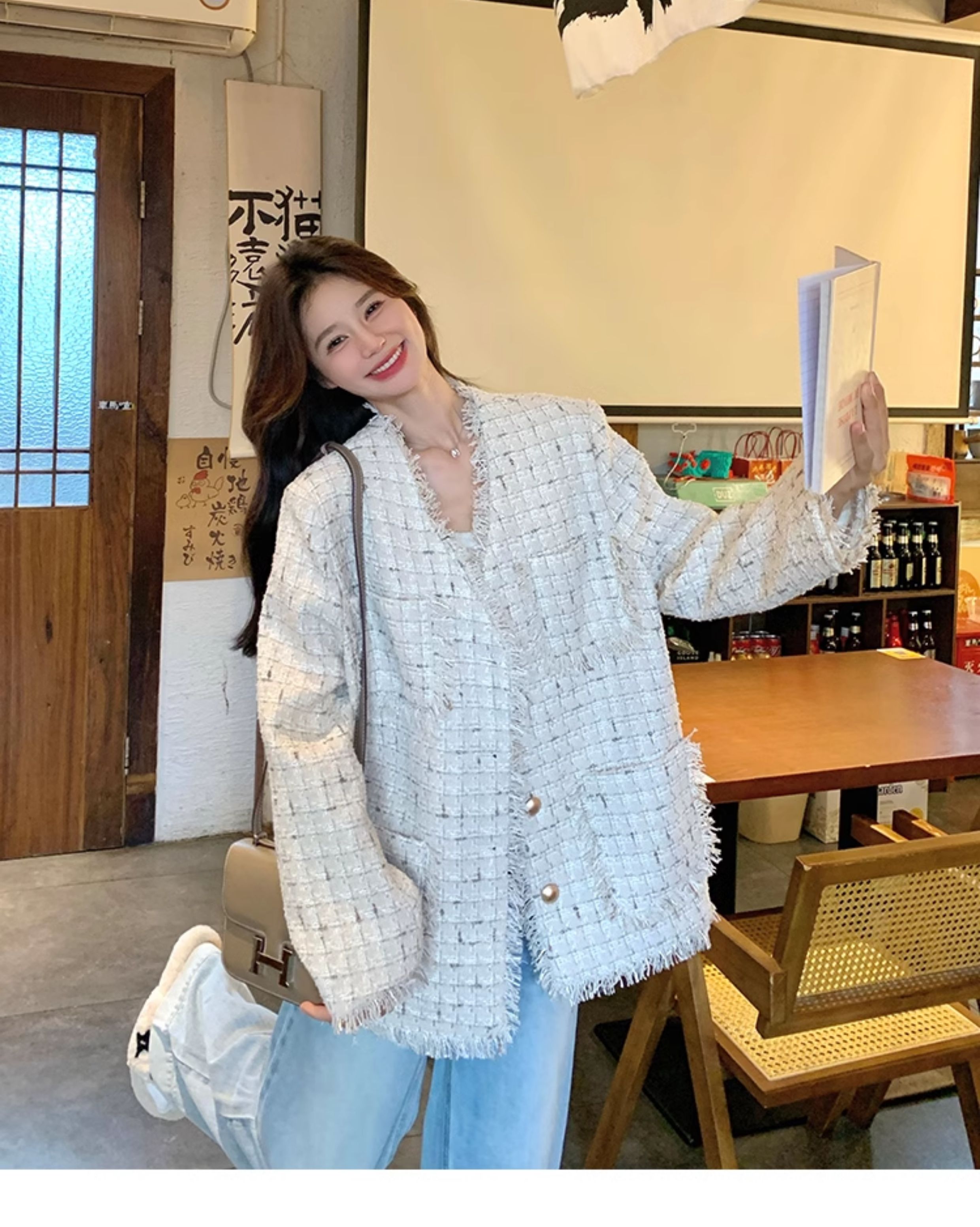 小香風米白色V領外套女2025年秋季新款高級感名媛氣質粗花呢上衣