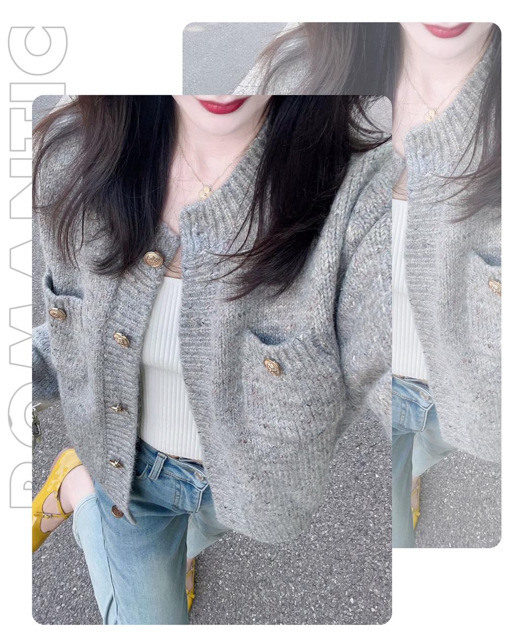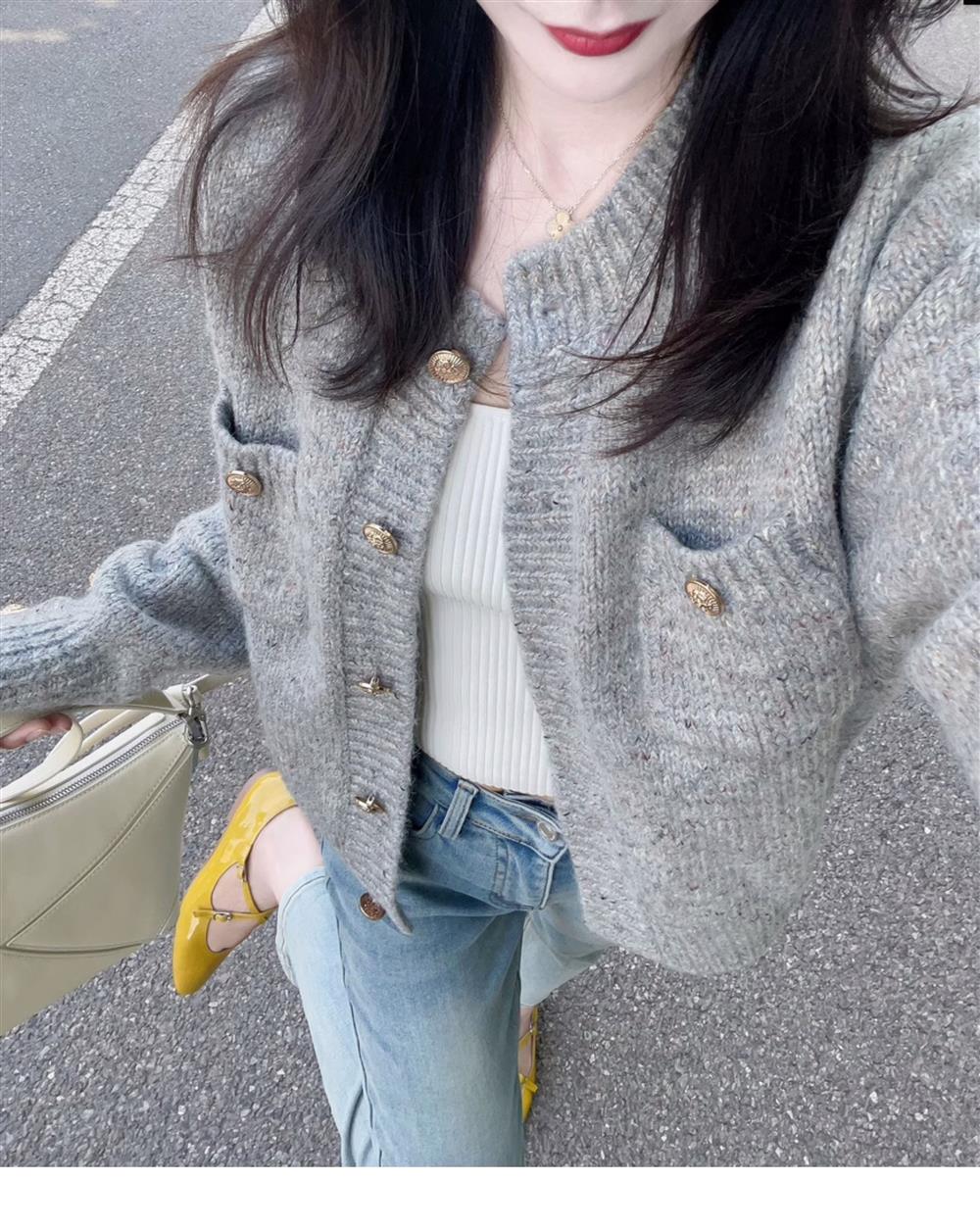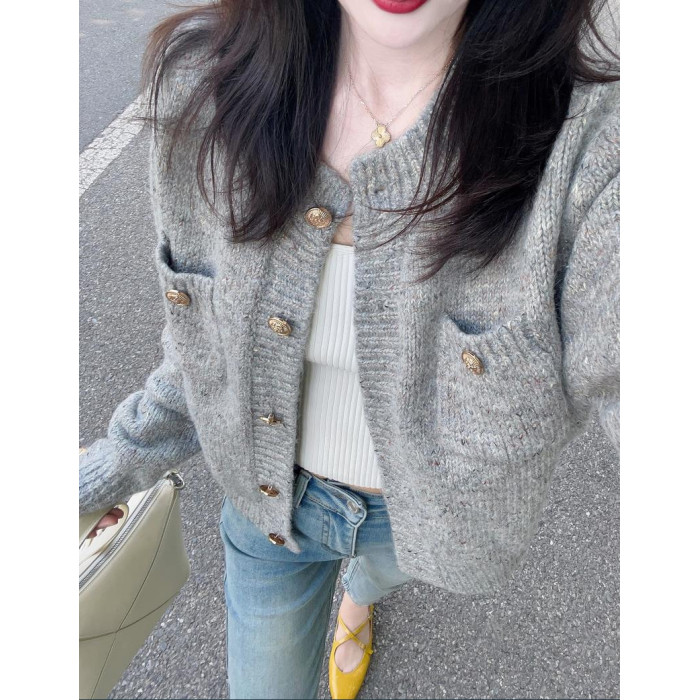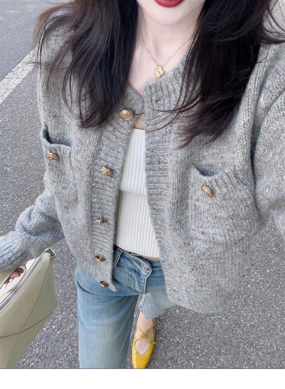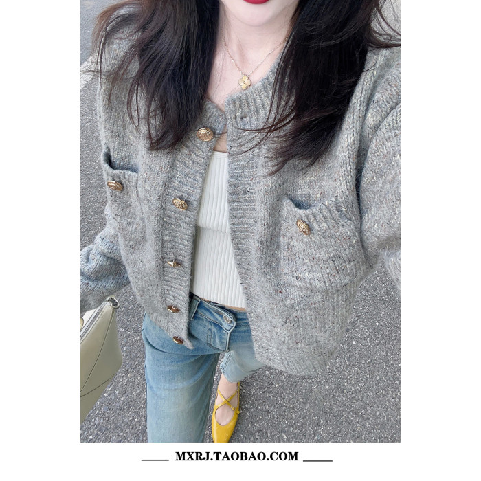 MXRJ秋季2023新款小香風針織外套女毛衣慵懶風高級感軟糯氣質上衣