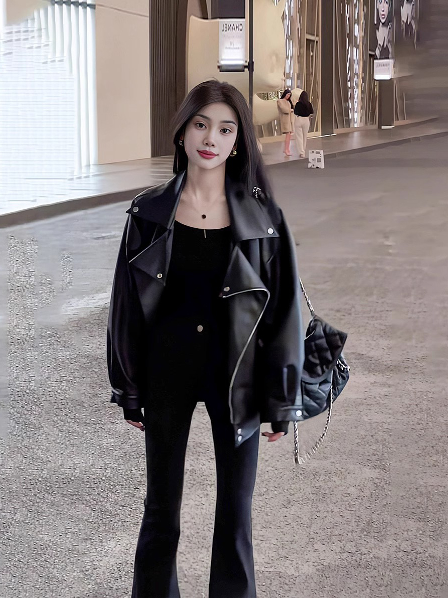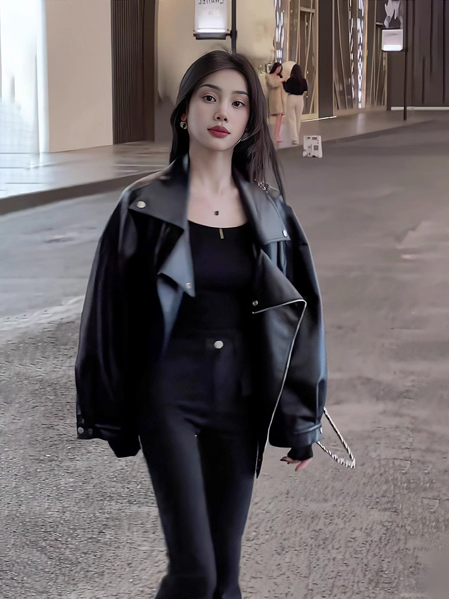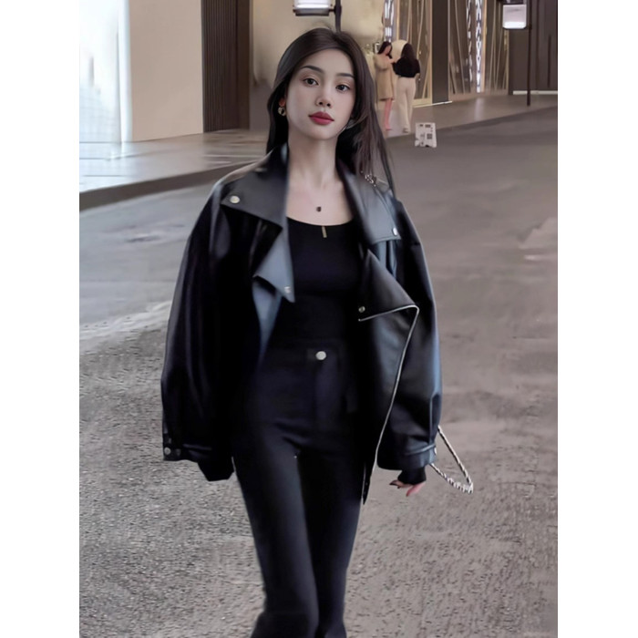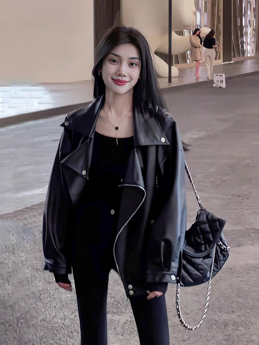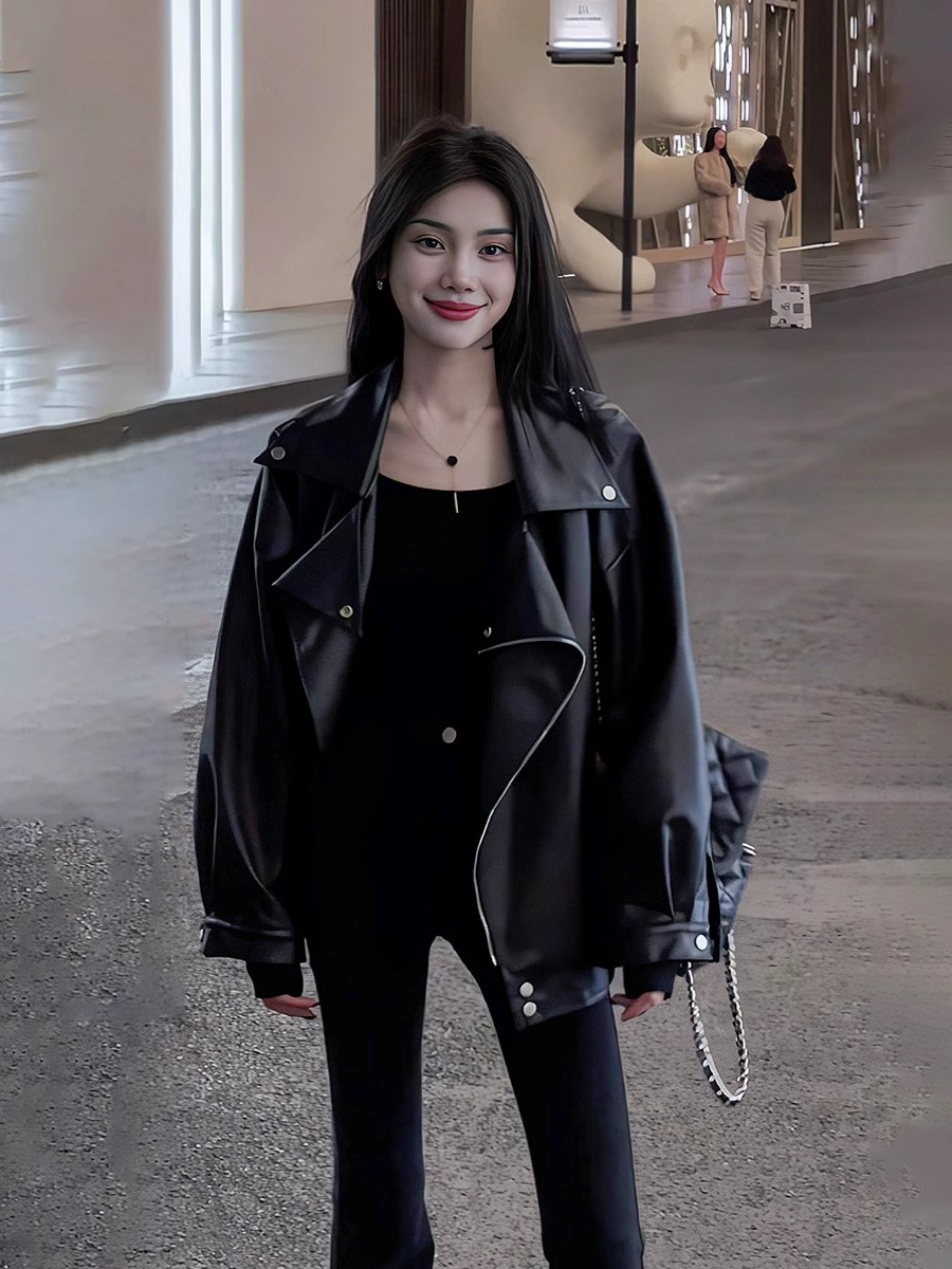 秋冬ins街頭酷辣皮衣外套女寬松oversize夾克大碼PU皮氣質機車服
