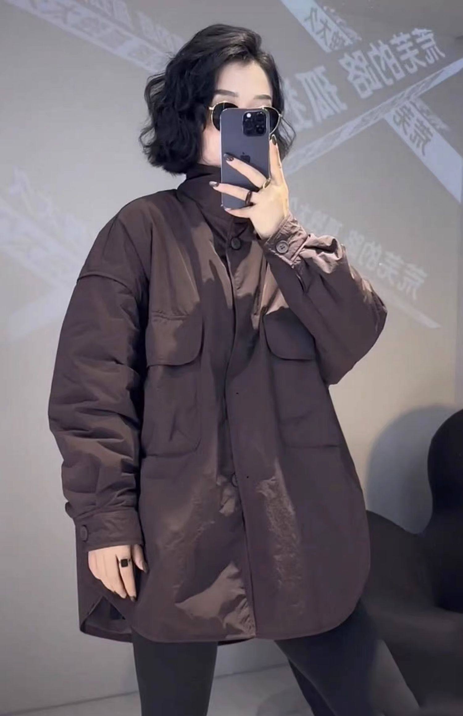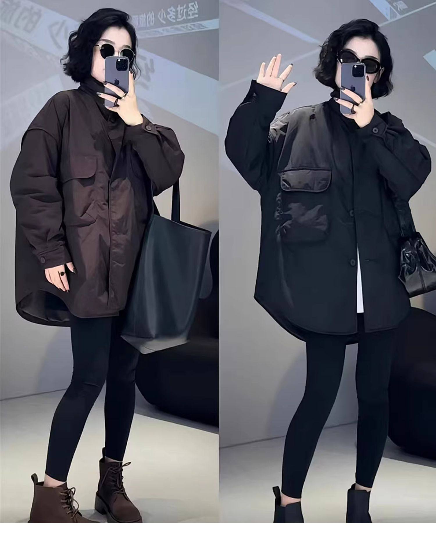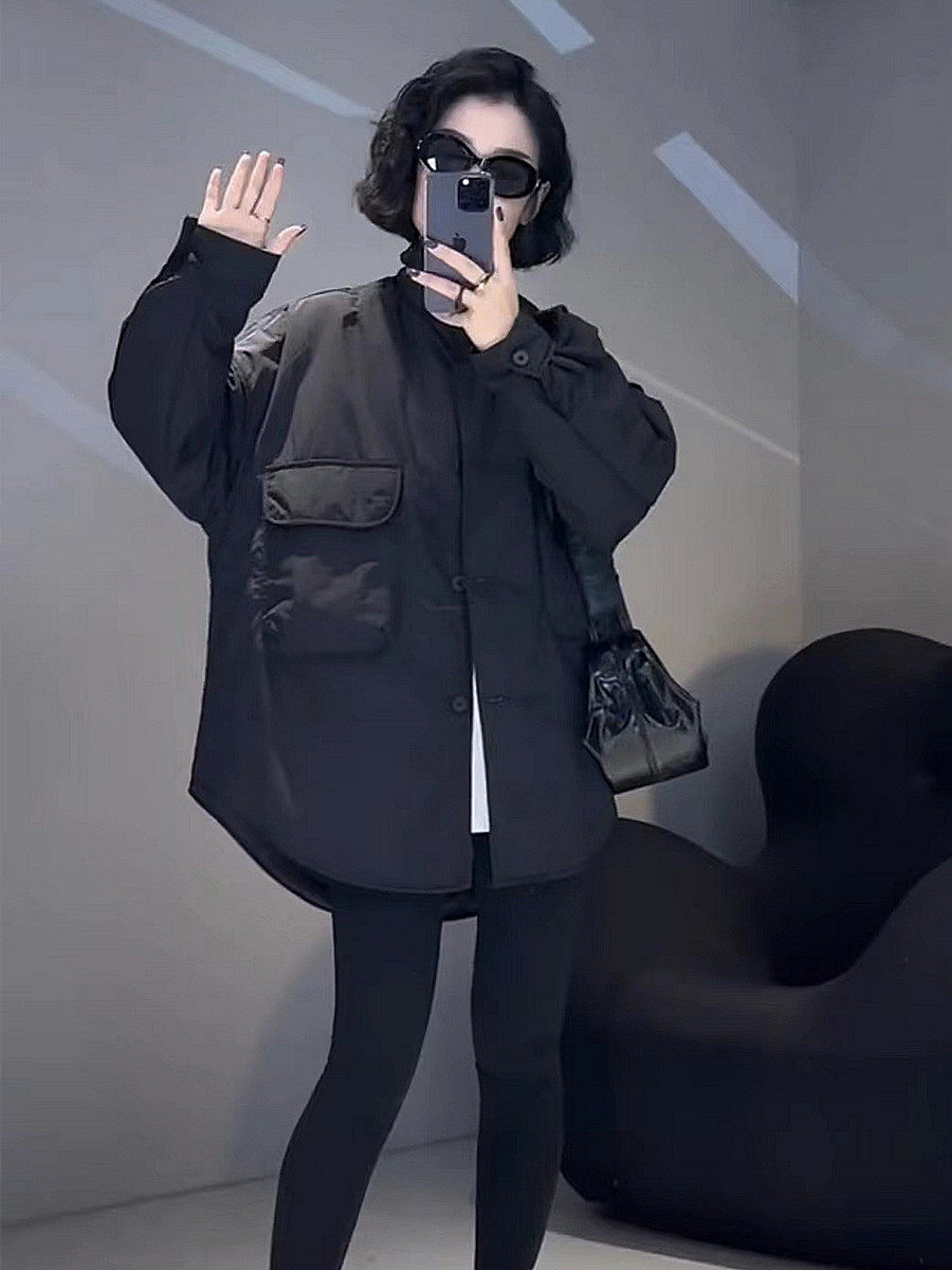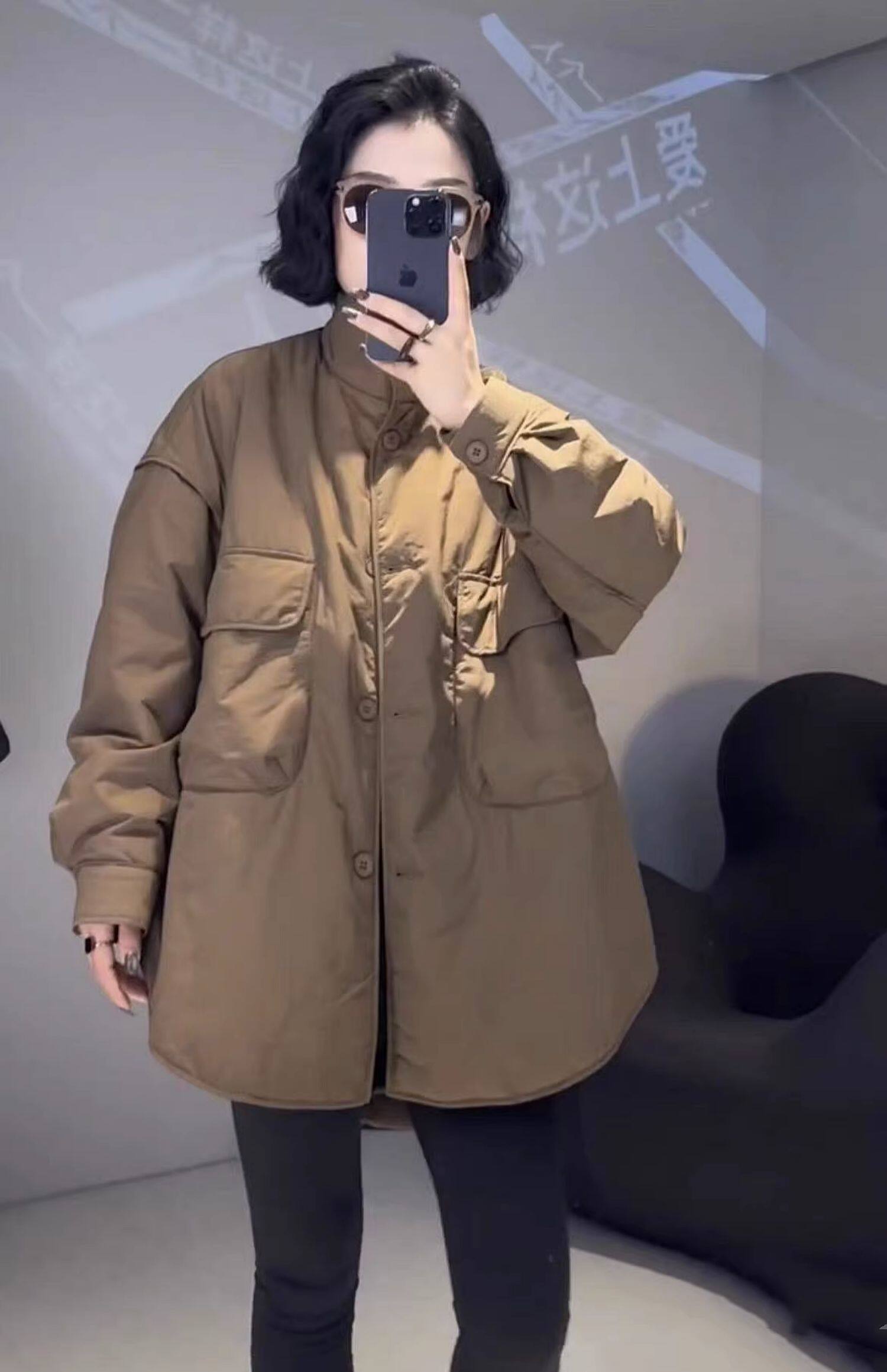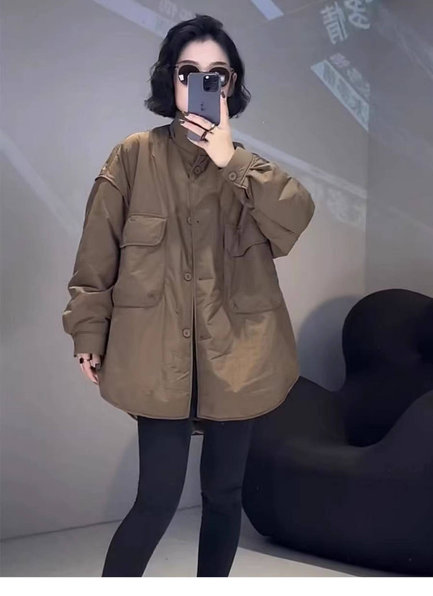 韓版時尚大口袋棉服外套女2025秋冬新款休閒百搭開衫輕薄棉衣上衣