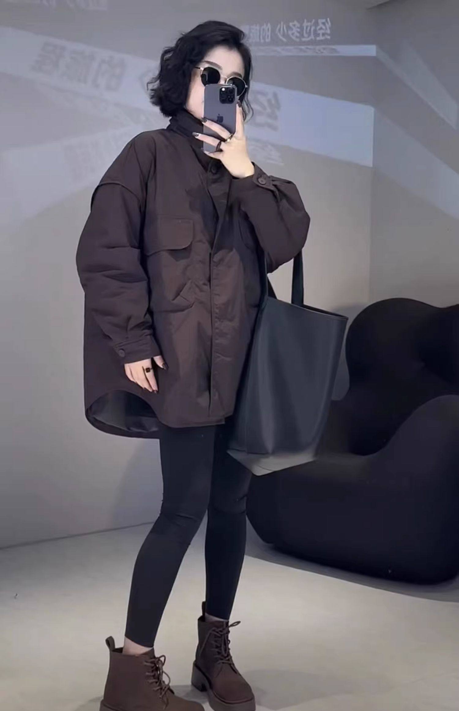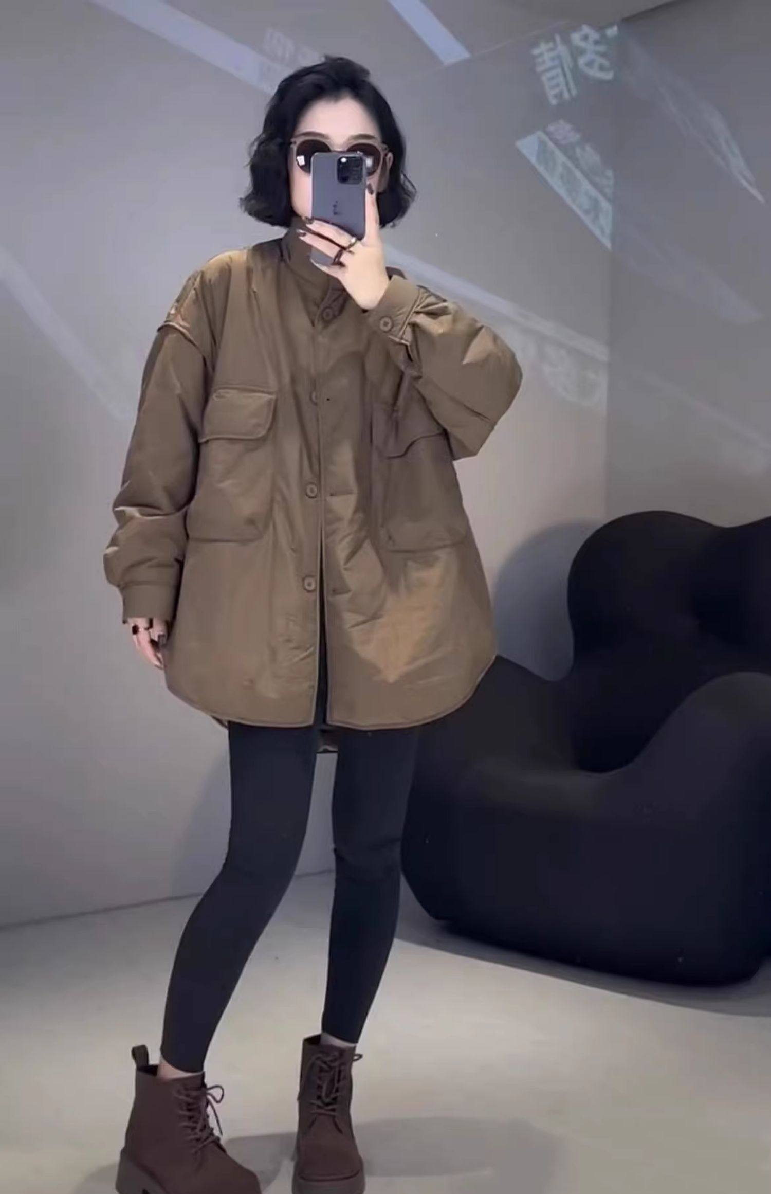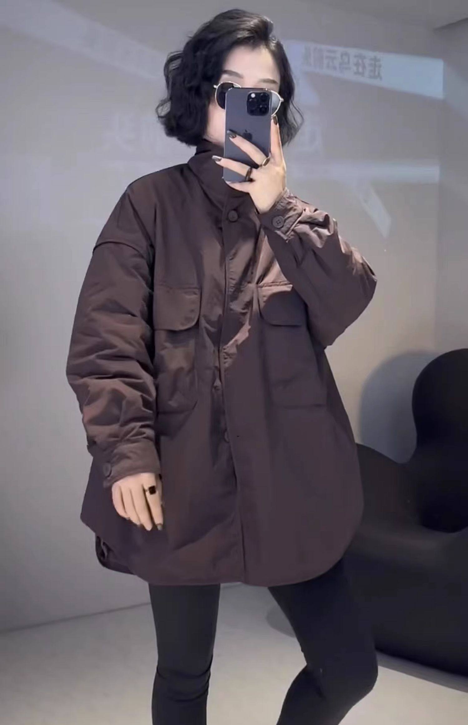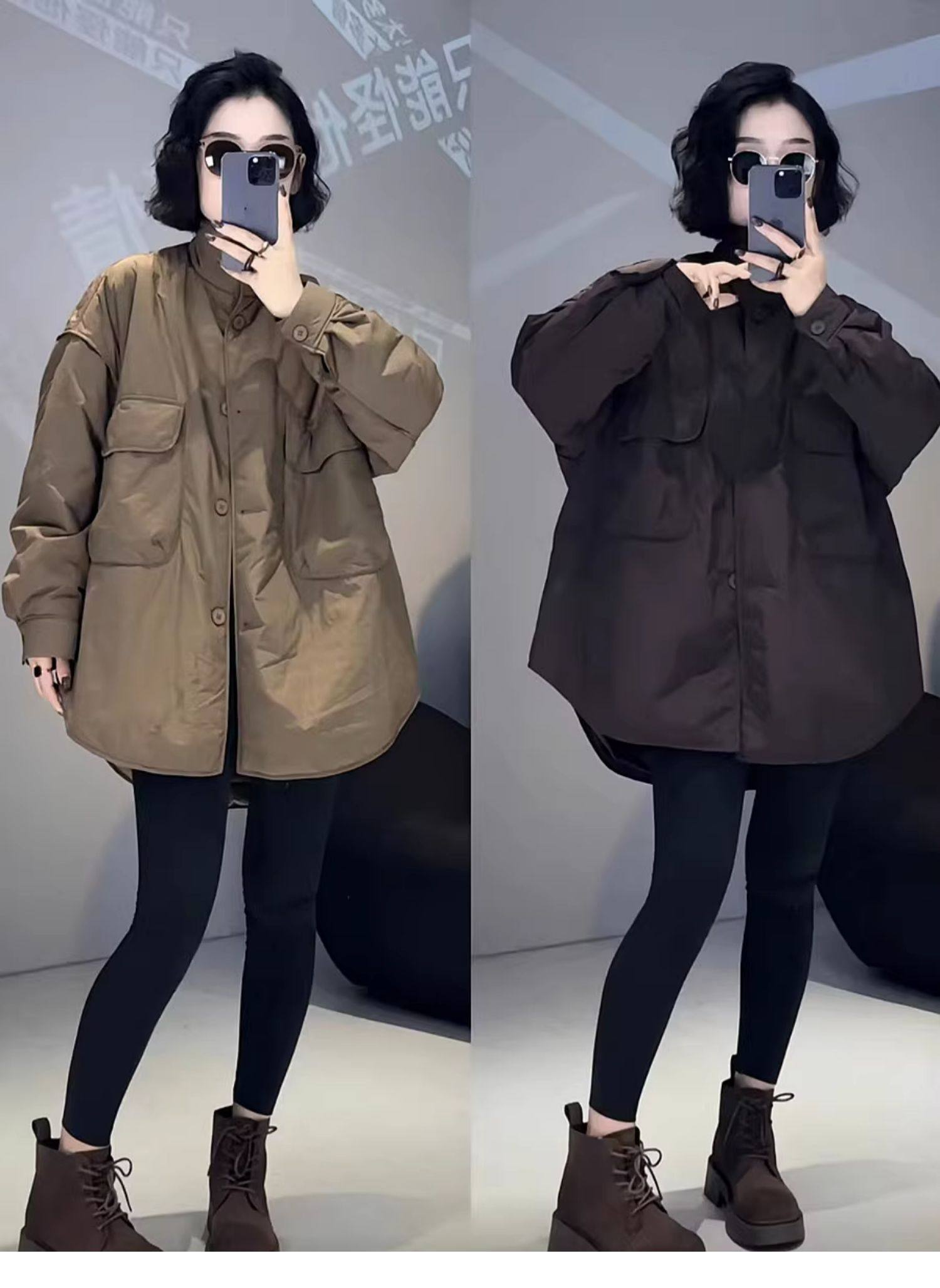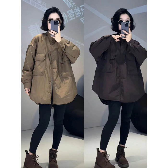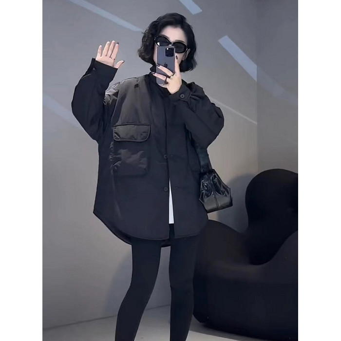 韓版時尚大口袋棉服外套女2025秋冬新款休閒百搭開衫輕薄棉衣上衣