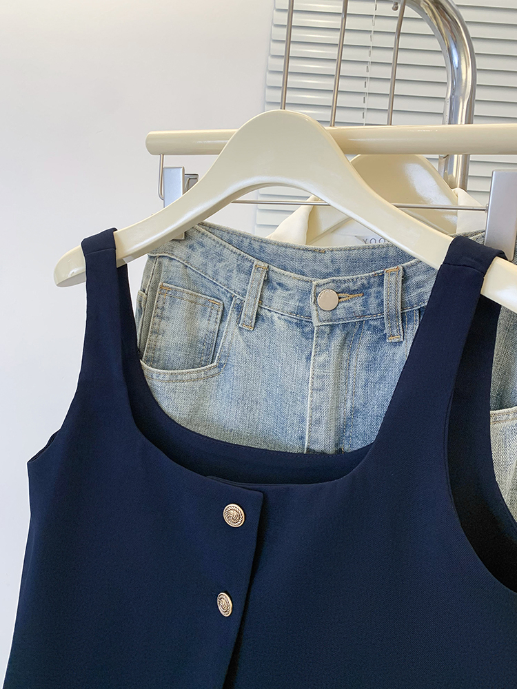 設計感曡穿外搭短款西裝馬甲女夏季新款高級感方領抹胸吊帶背心潮